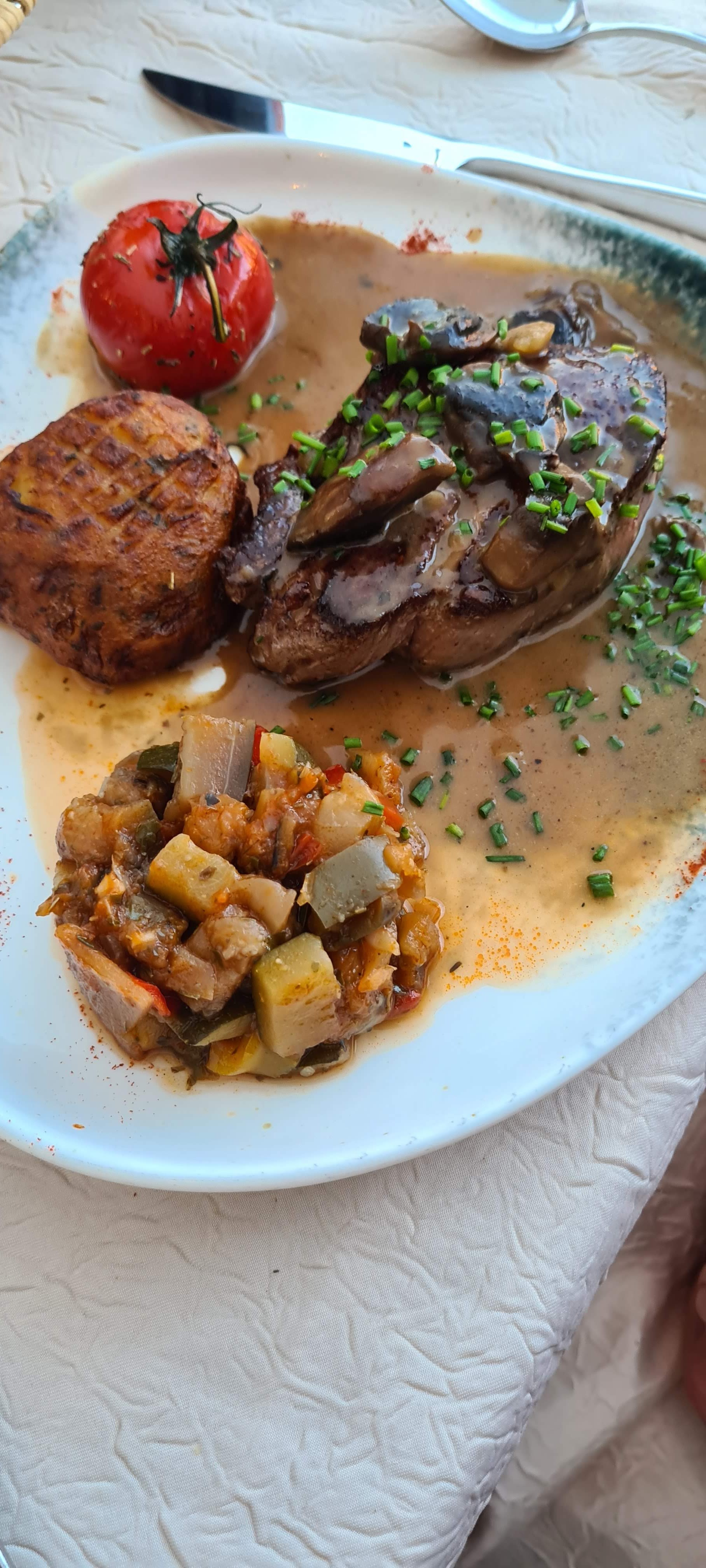 Très belle découverte : un personnel accueillant et professionnel, plats et desserts délicieux avons passés une très bonne soirée, à refaire.