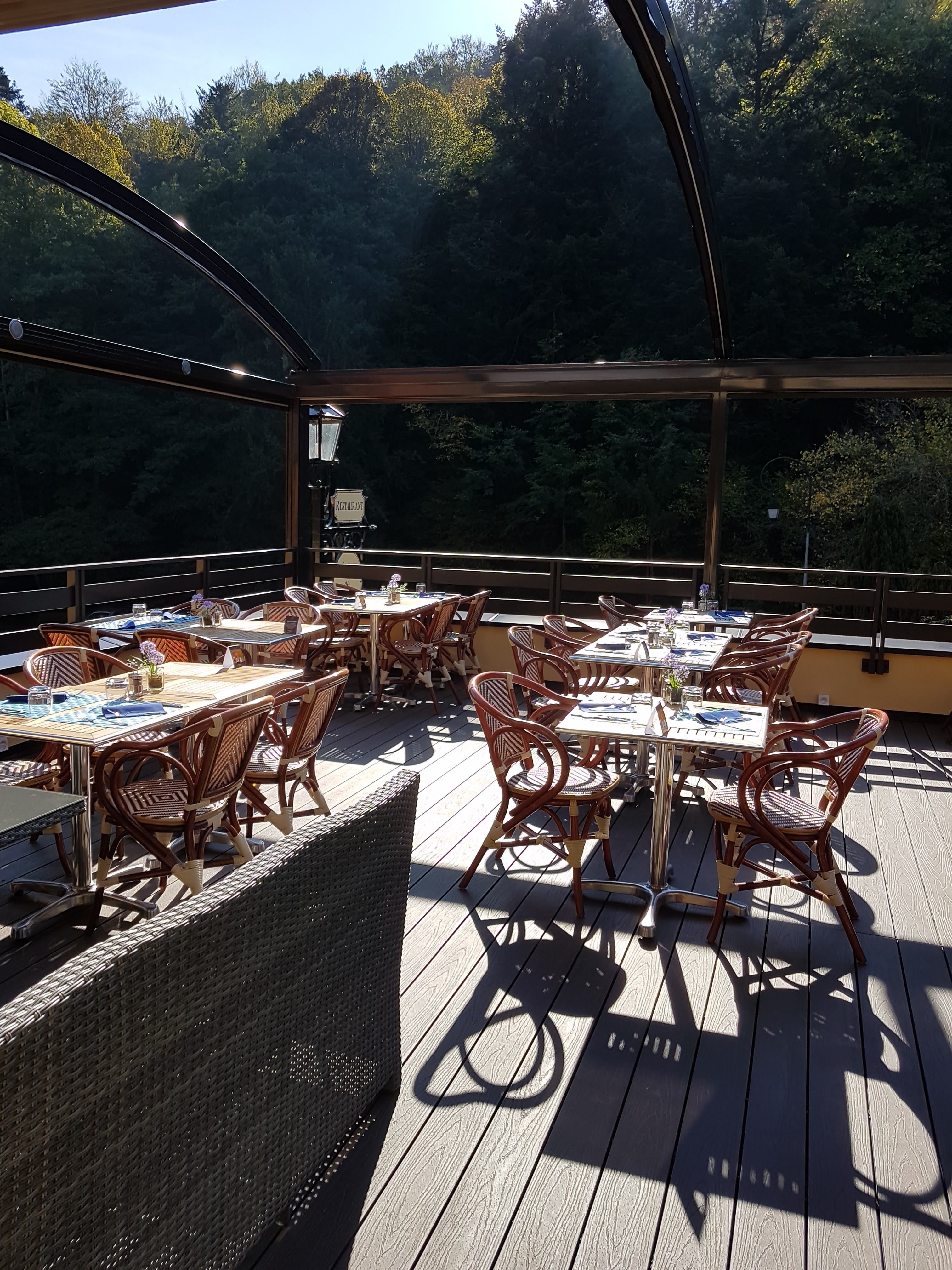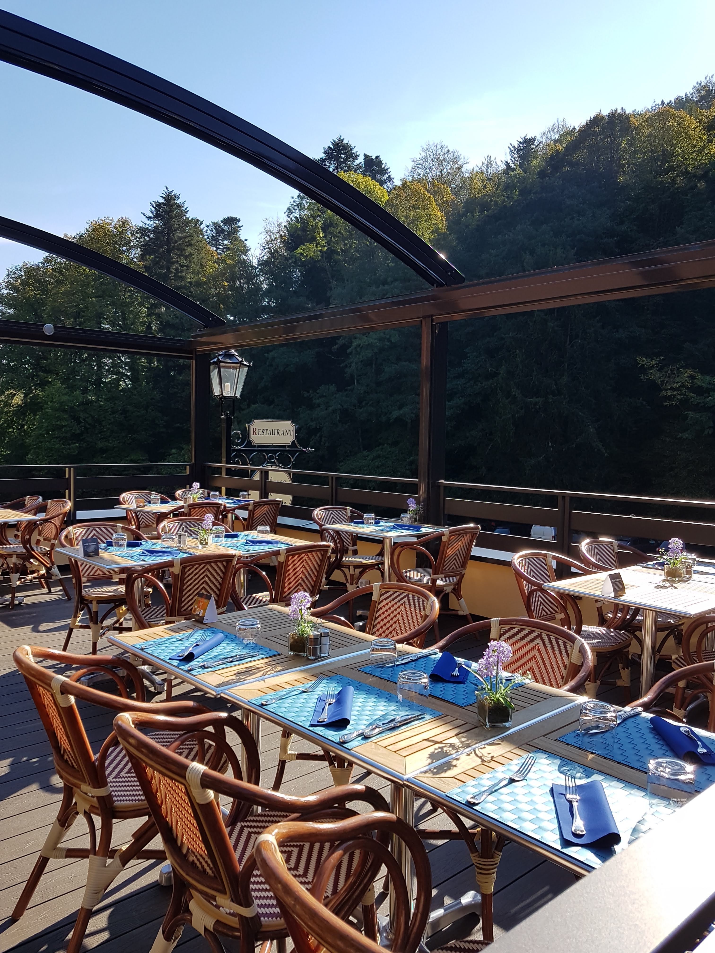 Très belle rénovation ( à mon avis ). Terrasse très très agréable avec vue sur l'abbatiale et la foret. Bel équipement et belle vaisselle. Menus de 22 à 62 €. Tarifs carte un peu élevés. Seulement trois vins au verre. Plats excellents bien présentés et copieux. Les tartes seraient à revoir. Lieu magique qui mérite de réussir.