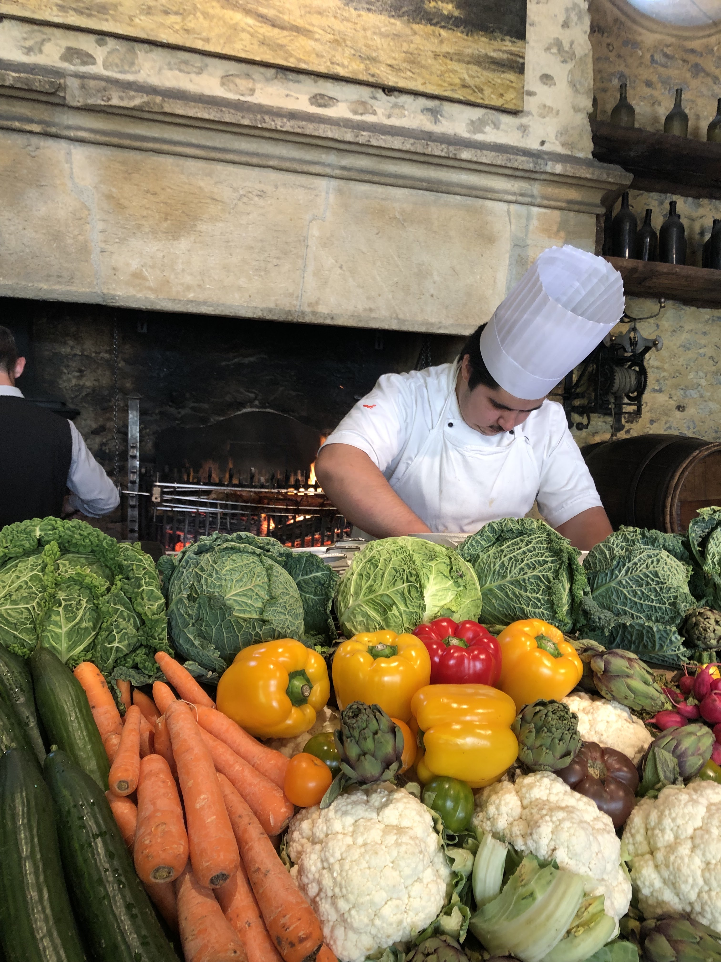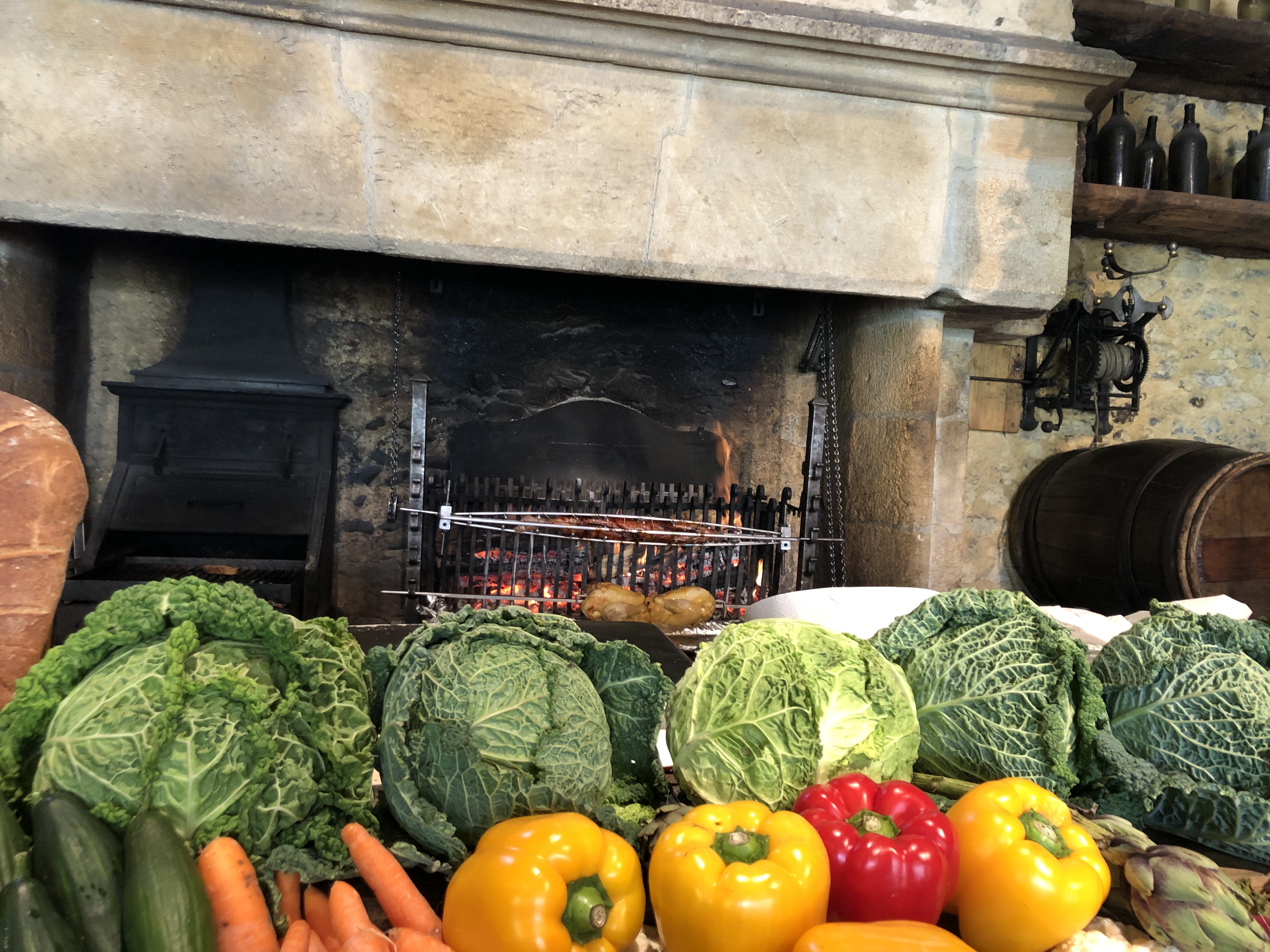 Dans l'ambiance d'une ancienne et jolie ferme landaise, avec son immense cheminée où le cochon de lait cuit à la broche derrière un gigantesque étal couvert de légumes multicolores, ce fut un régal de déguster, de l'amuse-bouche au café en passant par l'excellente soupe fraîche de tomates puis le cochon de lait fondant et moelleux et la Pavlova au goût délicat, des plats à la cuisson parfaite, copieux, succulents et savoureux. Chapeau pour le service sympathique et aux petits soins. Un vrai bonheur...