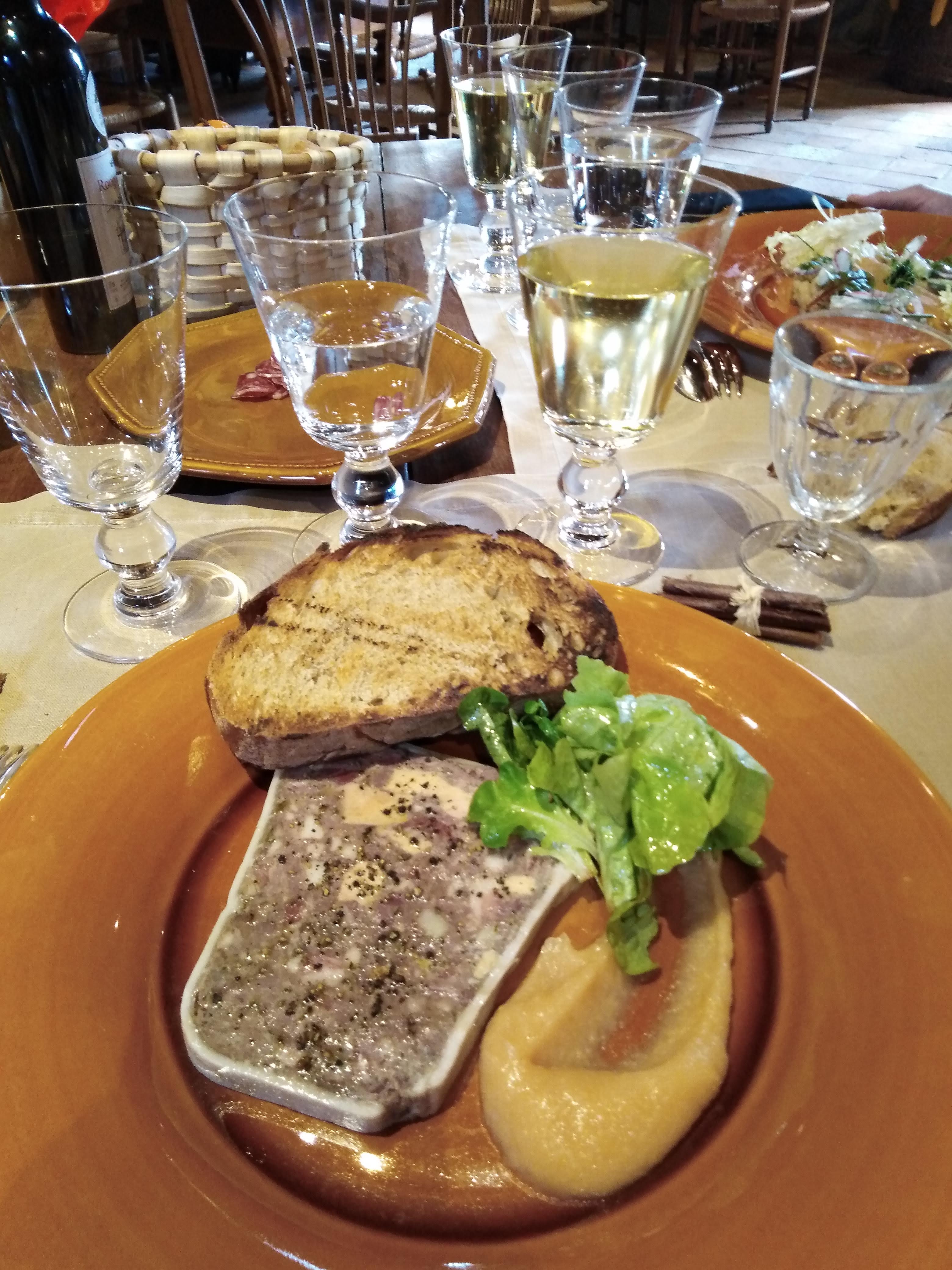 On y mange très bien mais terroir. Pas de nouvelles saveurs ni de cuisine novatrice. Cadre magnifique en revanche la vaisselle laisse à désirer. Sur 4 verres 3 ébréchés. Le café à 3 euros avec un vulgaire carré de chocolat n'est pas justifié. Ils se gavent clairement. Et dernière déception le vin. Celui que nous voulions n'était pas disponible ils nous ont conseillé mais rien de terrible.
