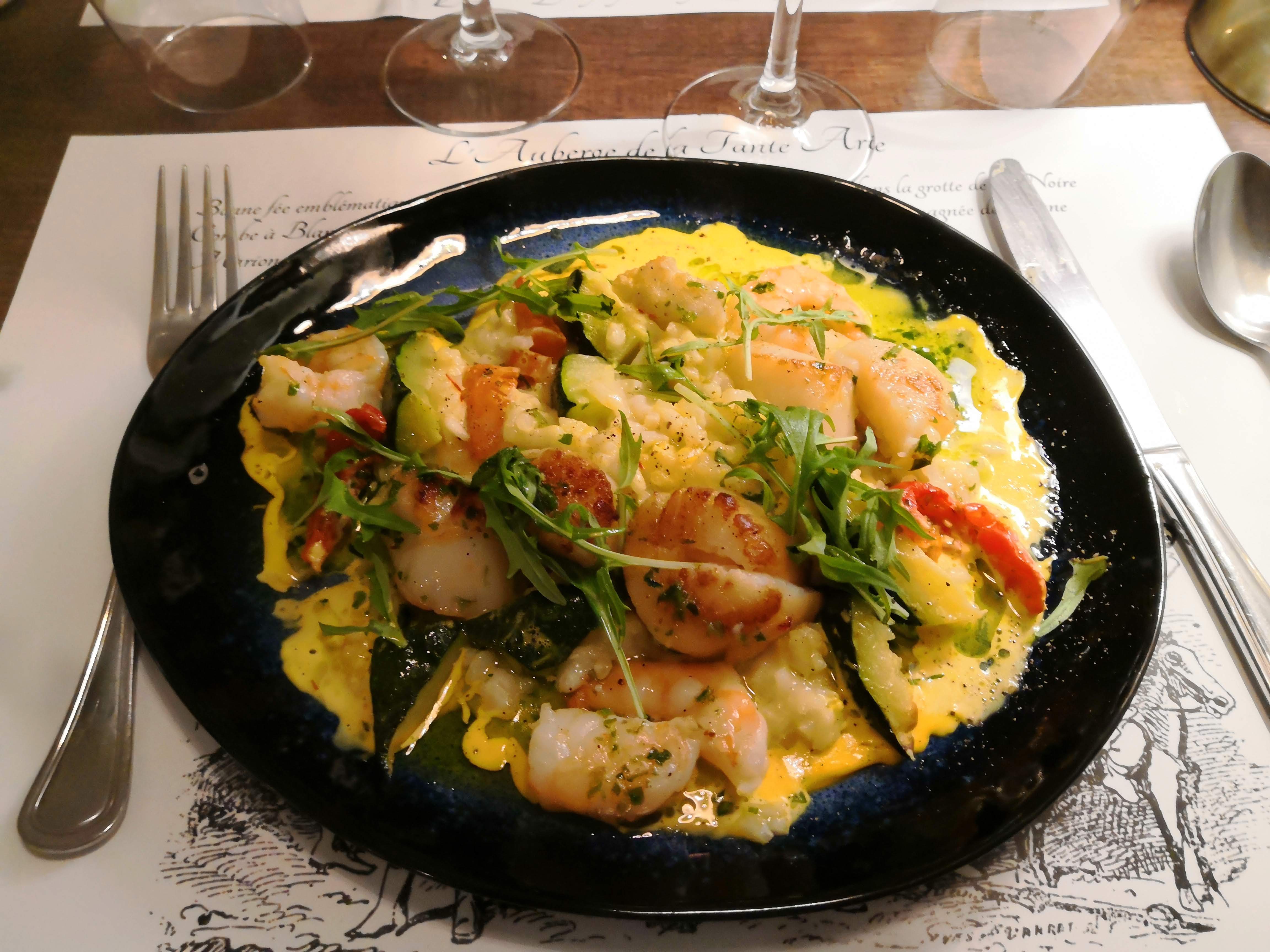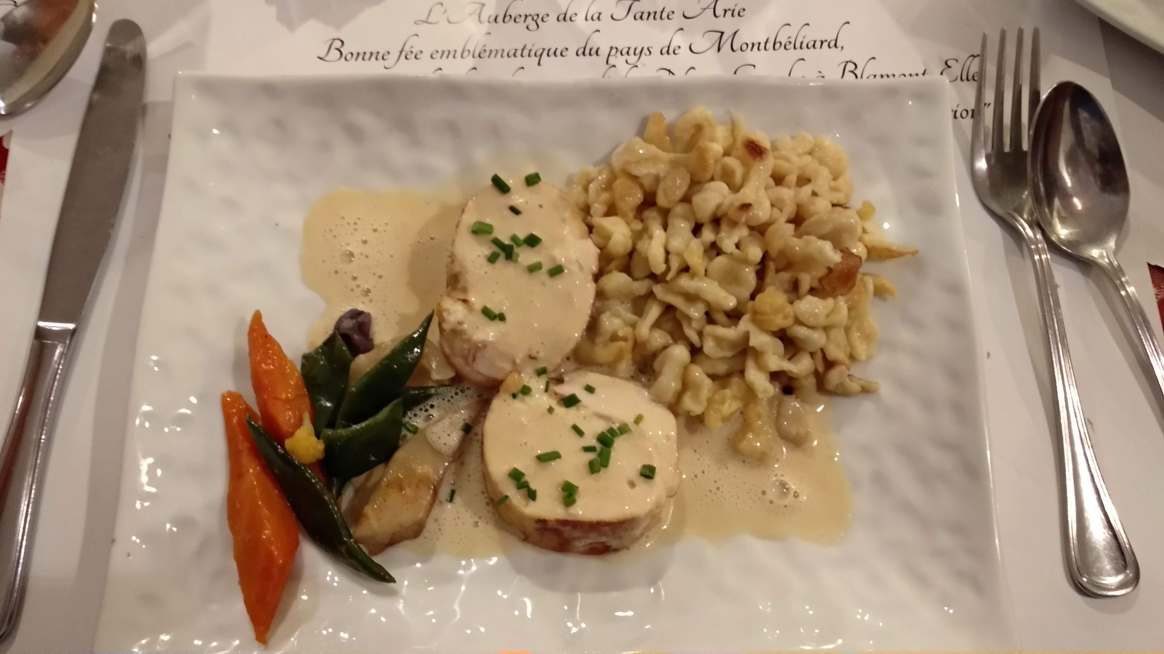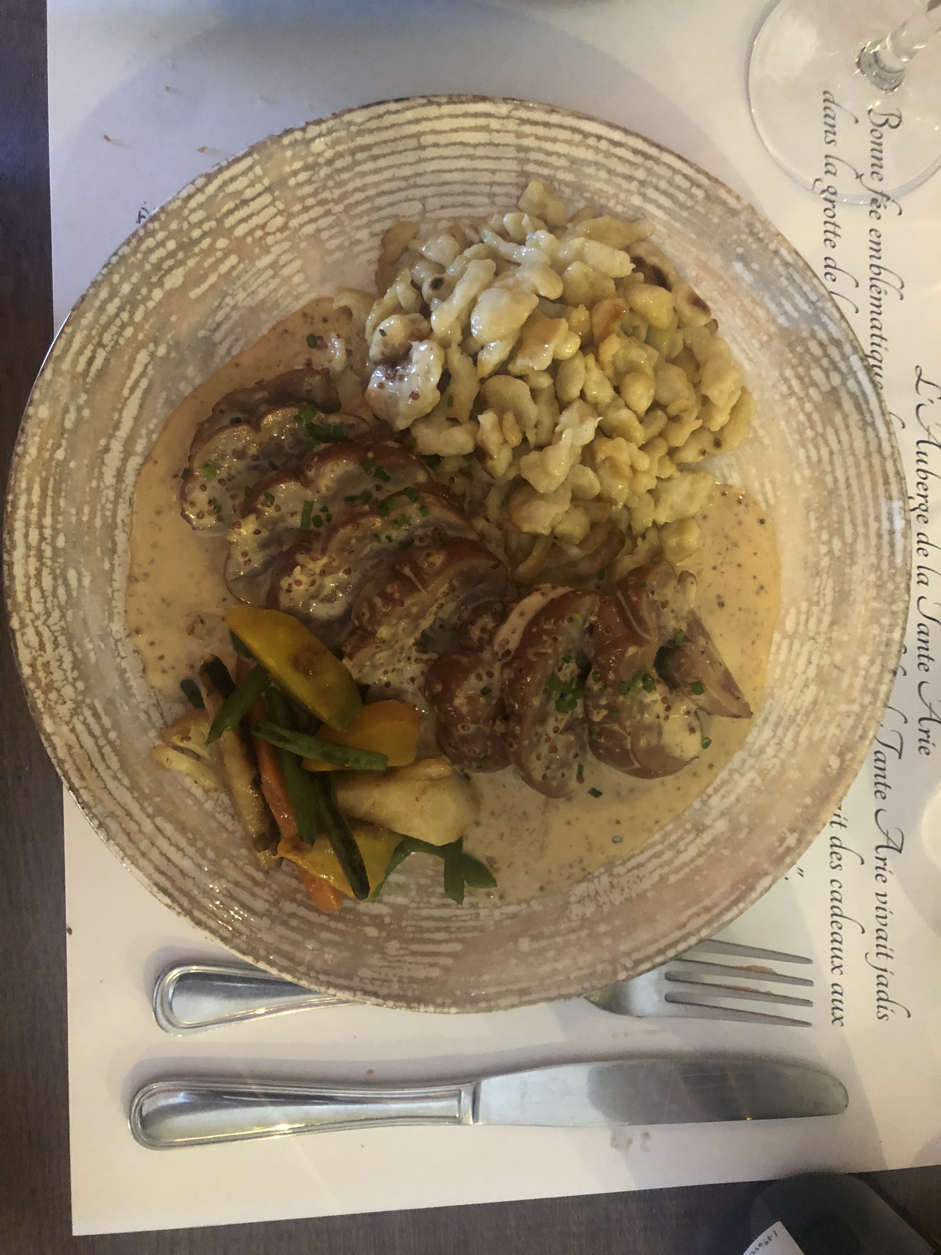 Chez la Tante Arie. Fée locale, rien que du fée maison, du fait maison… du pain au dessert. Avec indication des producteurs. Un moment magique. Service impeccable. La Tante Arie, la serveuse a souri au gastronome en kilt… Trop de restaurants se facilitent la vie en servant le même assortiment que l’on prenne un poisson ou une viande… pas de çà chez la Tante Arie: ici de très belles assiettes, une présentation raffinée et des assortiments différenciés. Un régal. D’ailleurs l’affluence des convives, les habitués, ne trompent pas. Ceux qui viennent, reviennent.