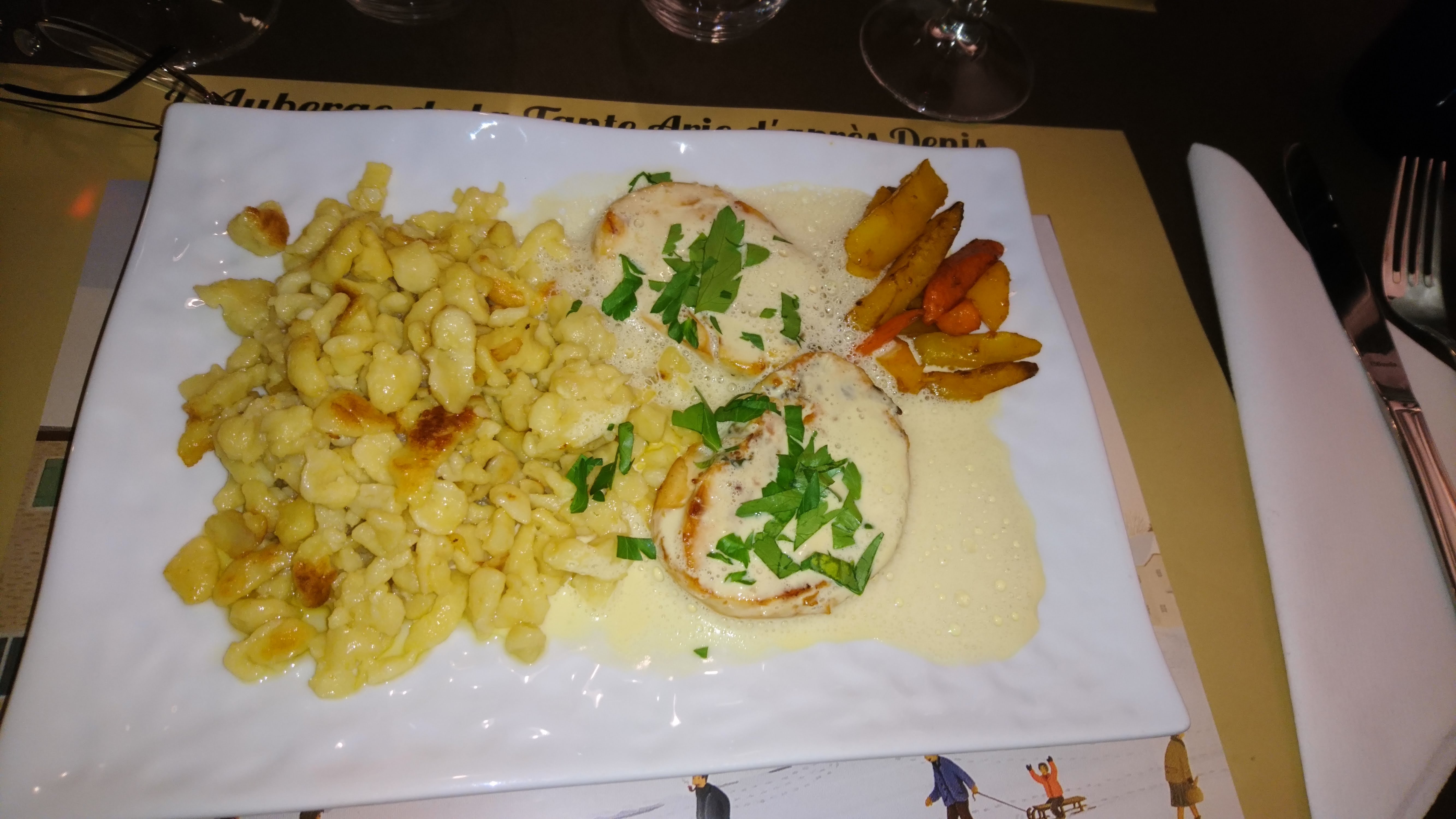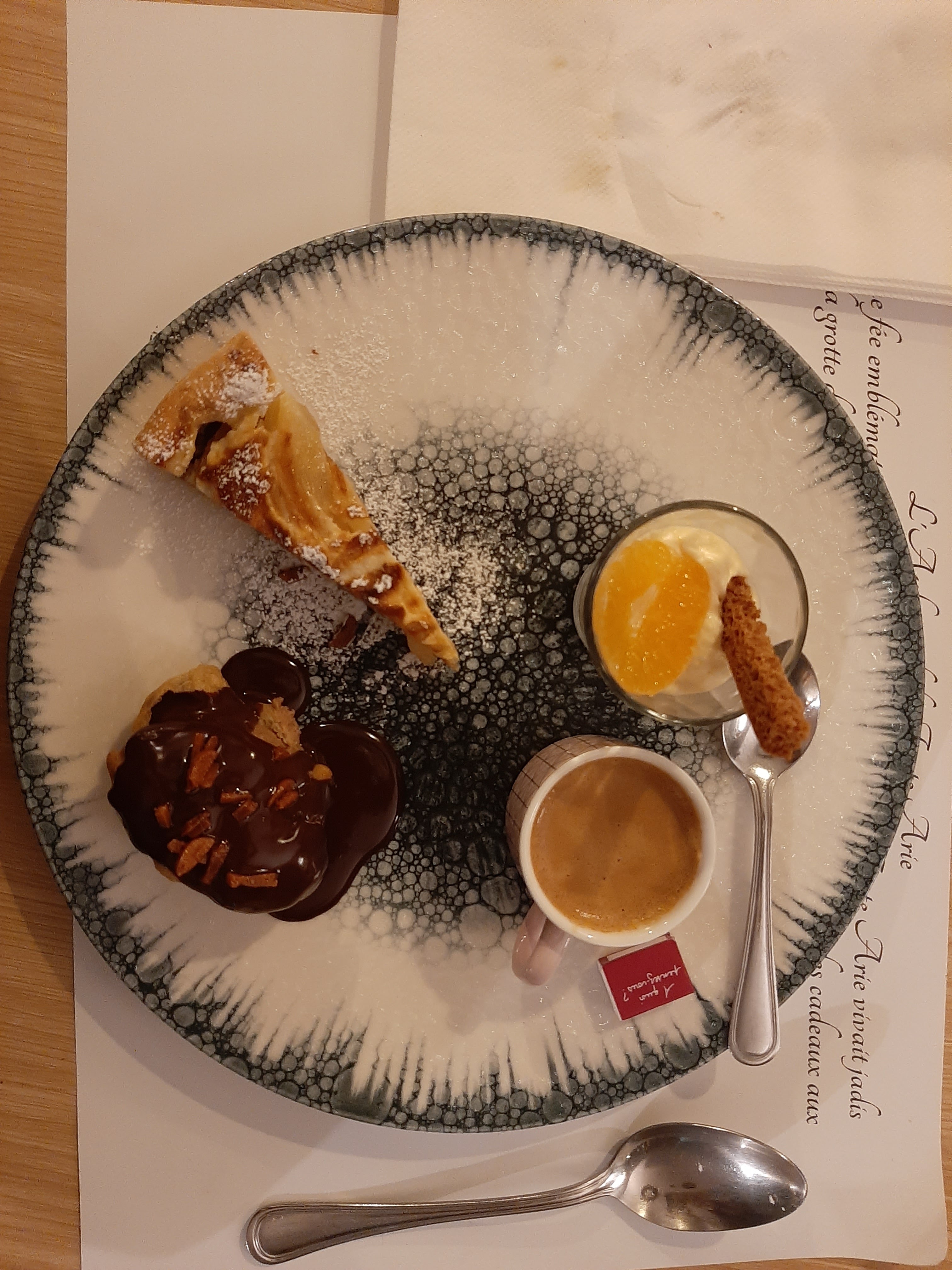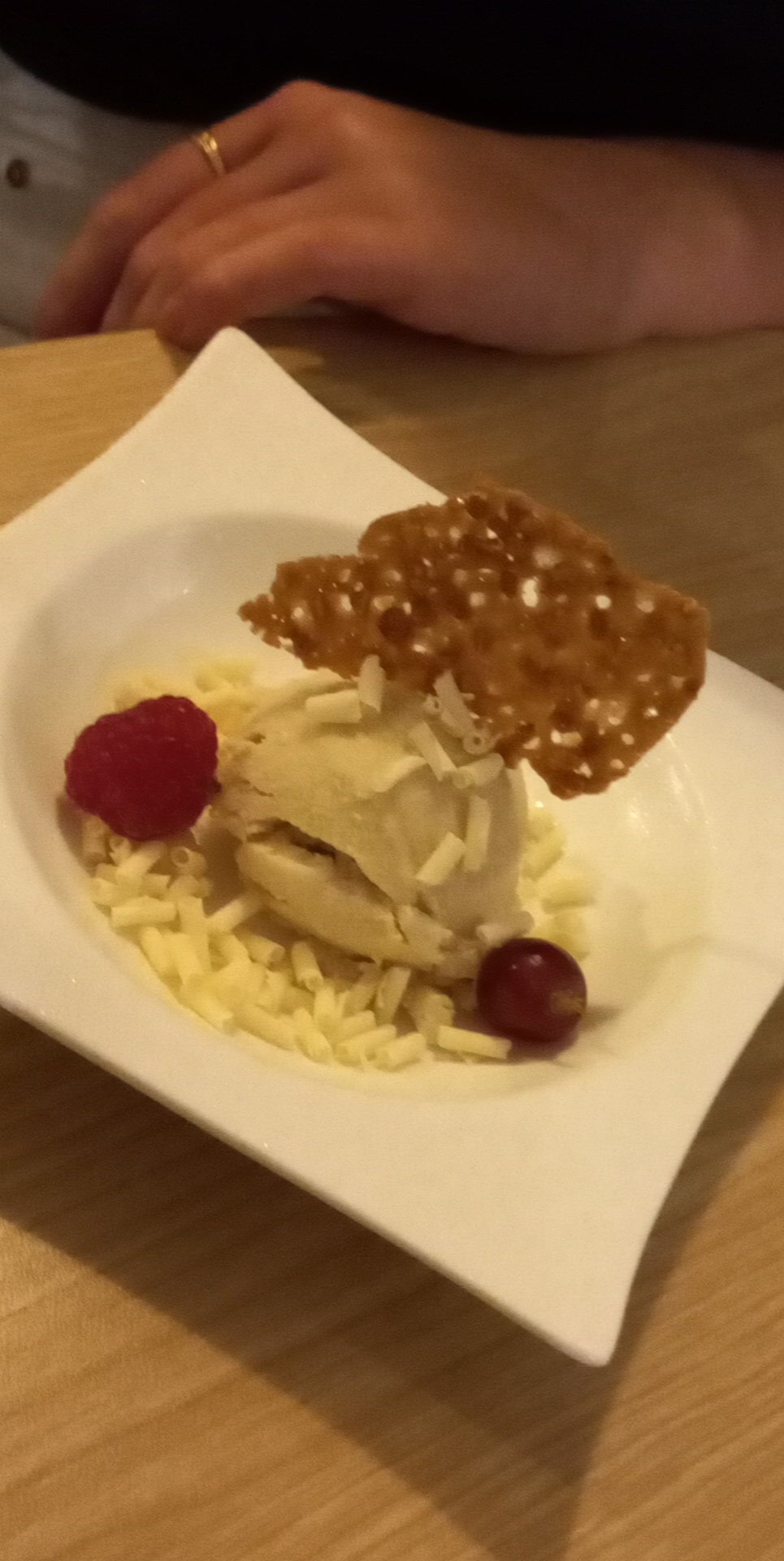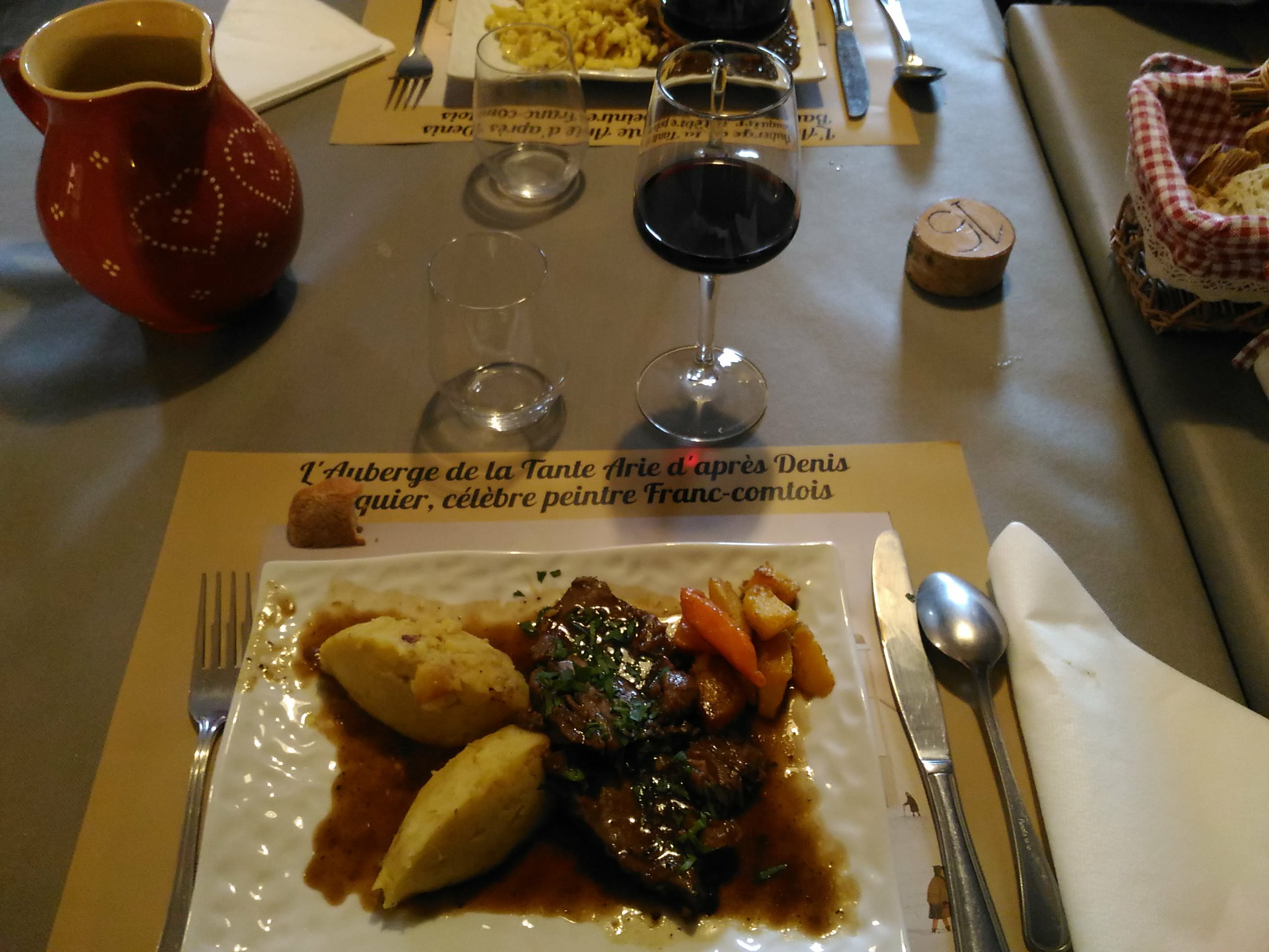 Chez la Tante Arie. Fée locale, rien que du fée maison, du fait maison… du pain au dessert. Avec indication des producteurs. Un moment magique. Service impeccable. La Tante Arie, la serveuse a souri au gastronome en kilt… Trop de restaurants se facilitent la vie en servant le même assortiment que l’on prenne un poisson ou une viande… pas de çà chez la Tante Arie: ici de très belles assiettes, une présentation raffinée et des assortiments différenciés. Un régal. D’ailleurs l’affluence des convives, les habitués, ne trompent pas. Ceux qui viennent, reviennent.