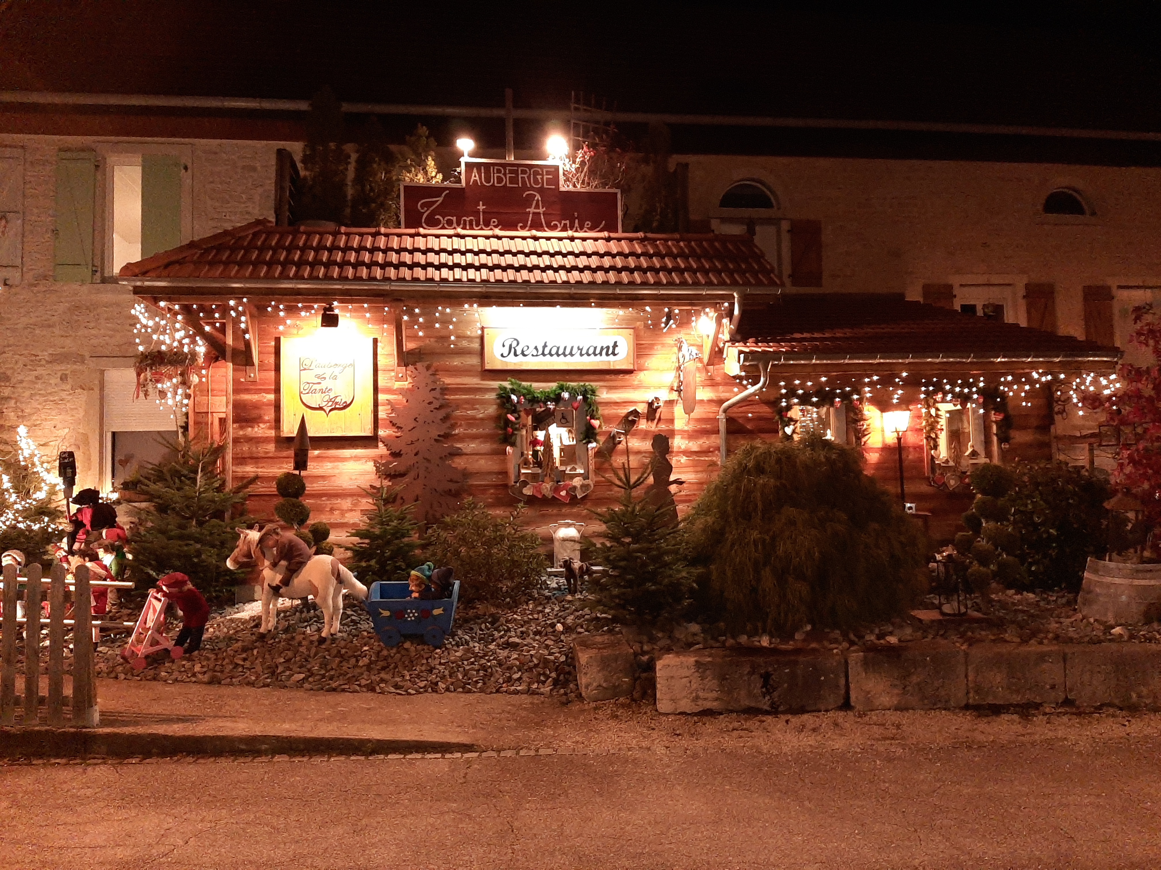 Grande découverte de l'auberge de Tante Arie samedi soir, située à 30mn de belfort. Les patrons et le personnel sont aux petits soins envers leurs clients, offrant des saveurs à chaque bouchée. Présentés dans des assiettes chaudes ! Nous avons été transporté dans l'univers de Noël dès la descente de voiture. Magique, magnifique. J'espère revenir très vite.