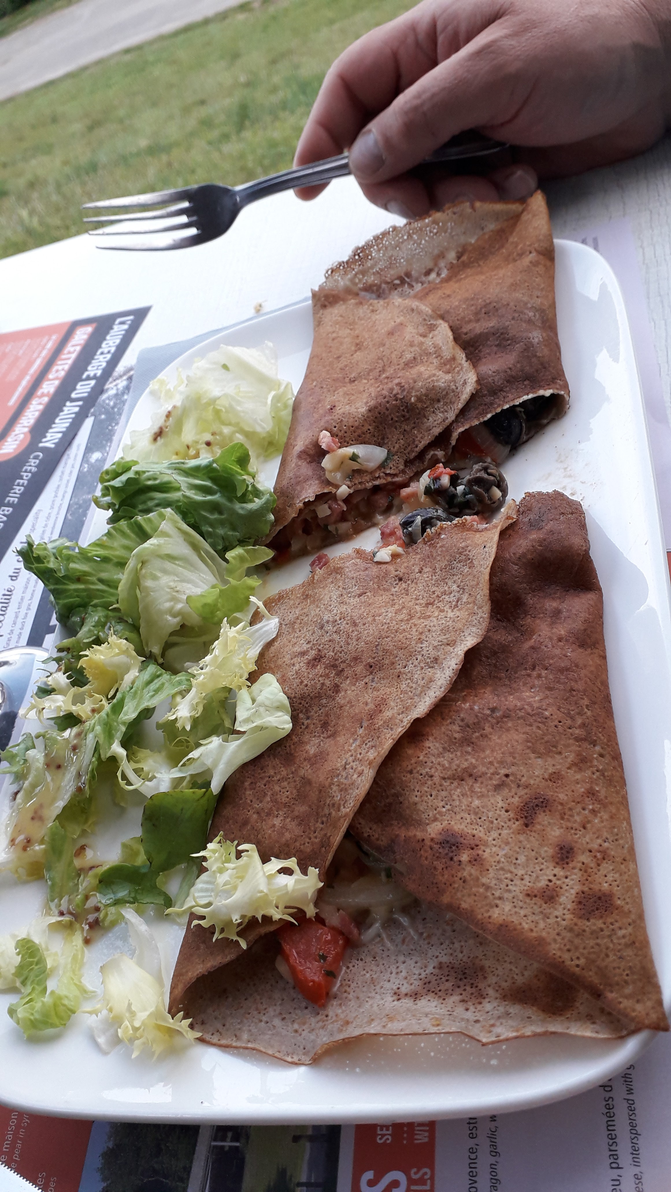 Nous avons été le dimanche de Pâques où certainnes on pris le soleil sur la terrasse et samedi soir nous avons bien mangés il y a deux personnes qui ont pris le pastis vendéen cest très particulier...🙄🤔 Nous apprécions leurs galettes et crêpes ma crêpe préférée cest la crêpe tatin
