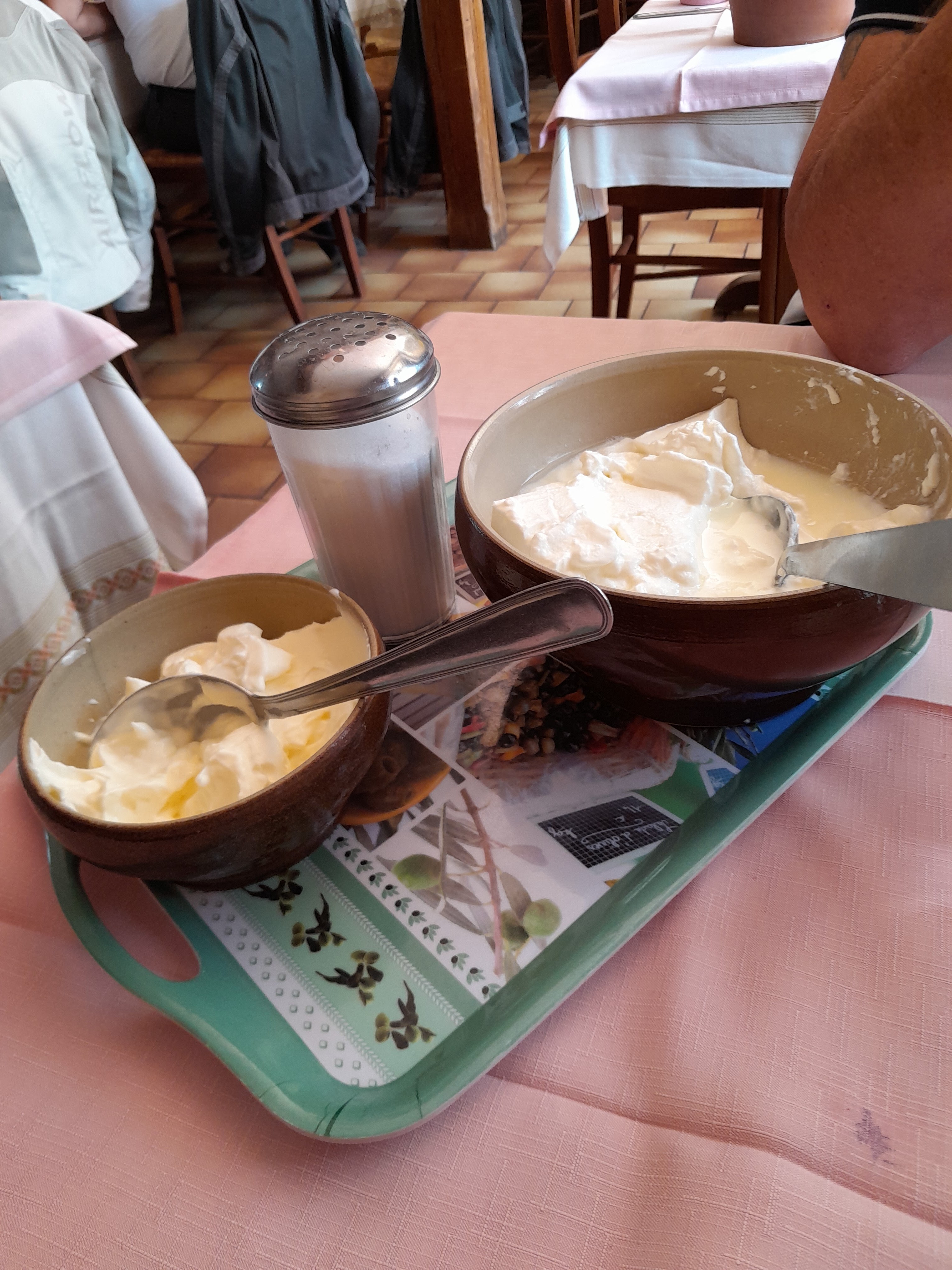 Un repas familial (3 générations) dans une auberge familiale. Chacune y a trouvé son bonheur à la hauteur de sa gourmandise. Et comme le soleil était présent, nous étions ravies.