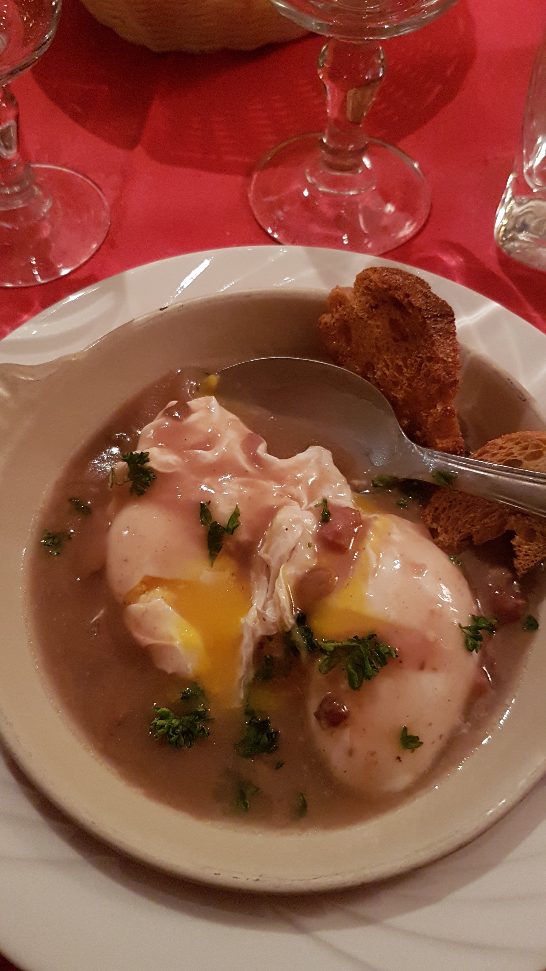 Déjà choquer que la patronne ne nous dise pas bonjour des notre entrée ensuite les œufs en meurette trop cuits et sauce acide et sans lardons et froid et les escargots mal présenter dans le plats légumes pour 4 qui auraient été plus pour2 personnes heureusement que la serveuse était très sympathique