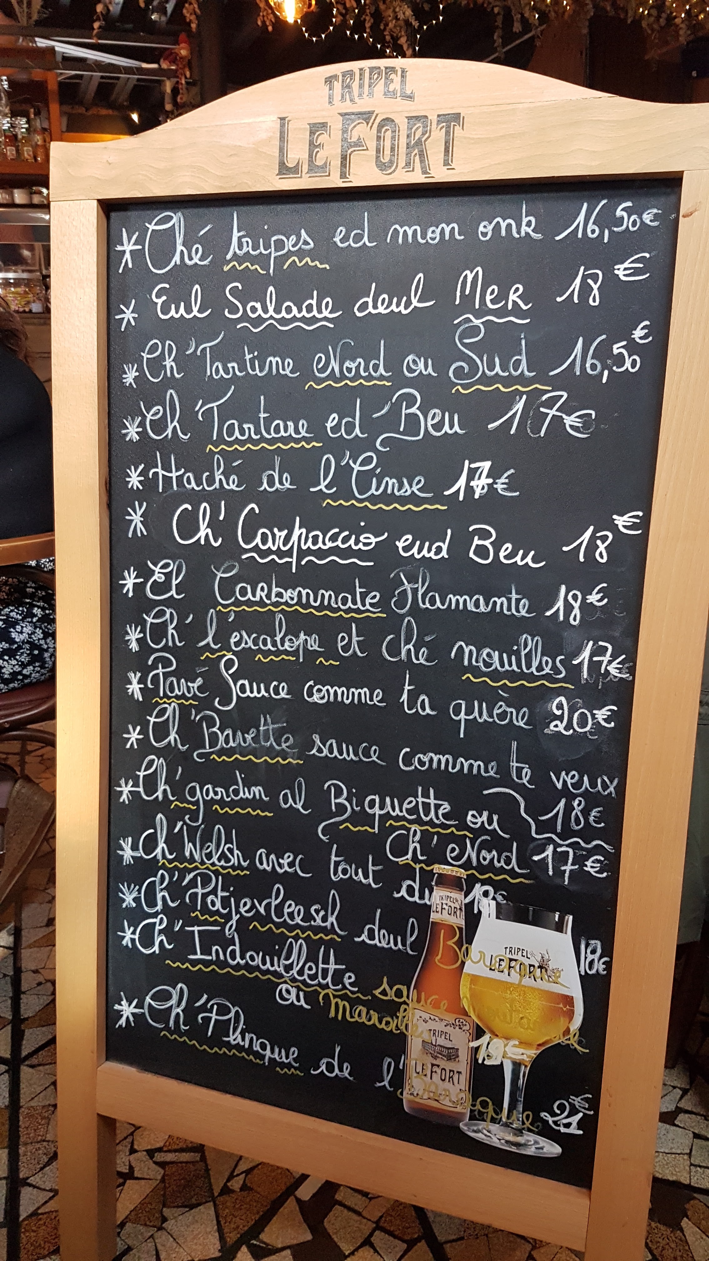 Posté le 04/11/2017 à 11:42"Excellent restaurant !!. Le cadre est top et original. La carte sur le tableau à la craie et en ch'ti juste génial. Le personnel est très agréable. Je recommande entièrement surtout pour essayer la cuisine du nord, restaurant typique. Toujours aussi bon et accueillant au fil des années !"