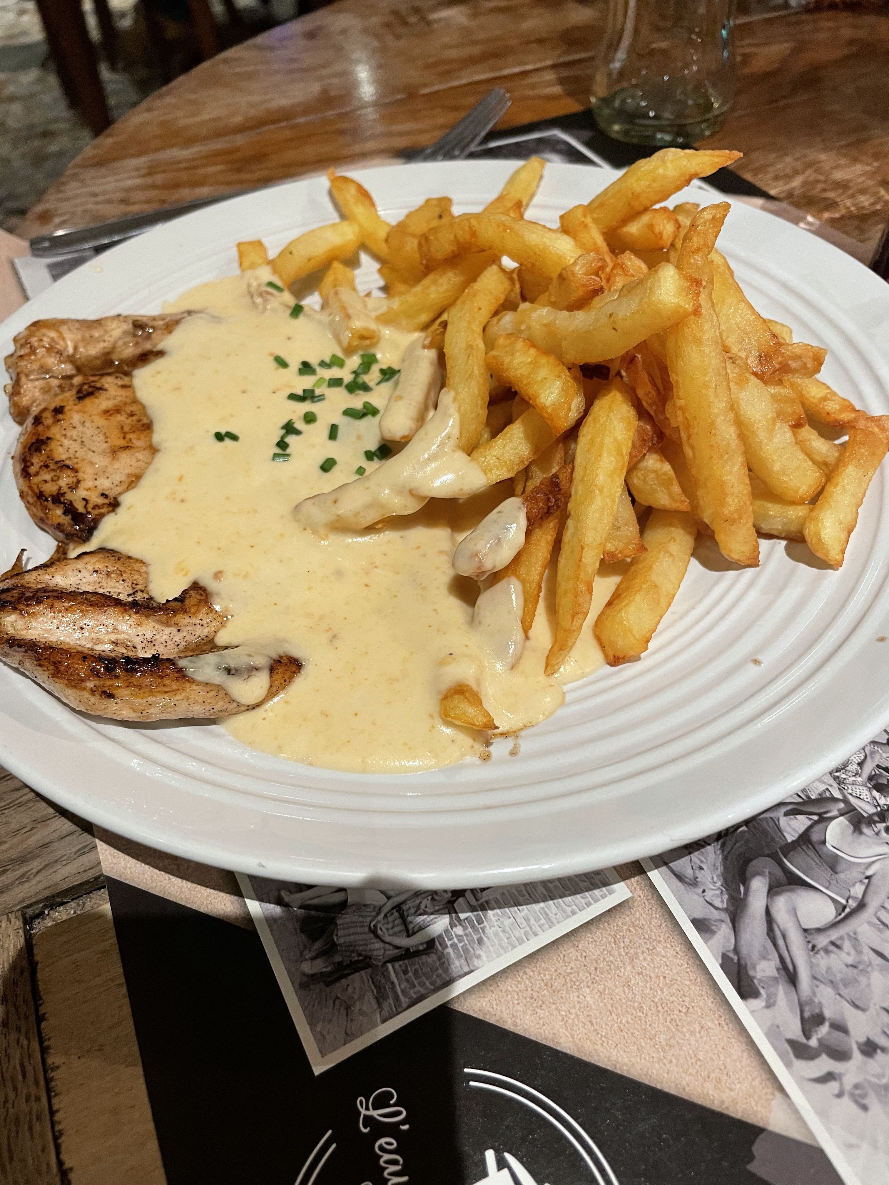 Bavette frite sauce maroilles et baba au rhum en dessert, 😋