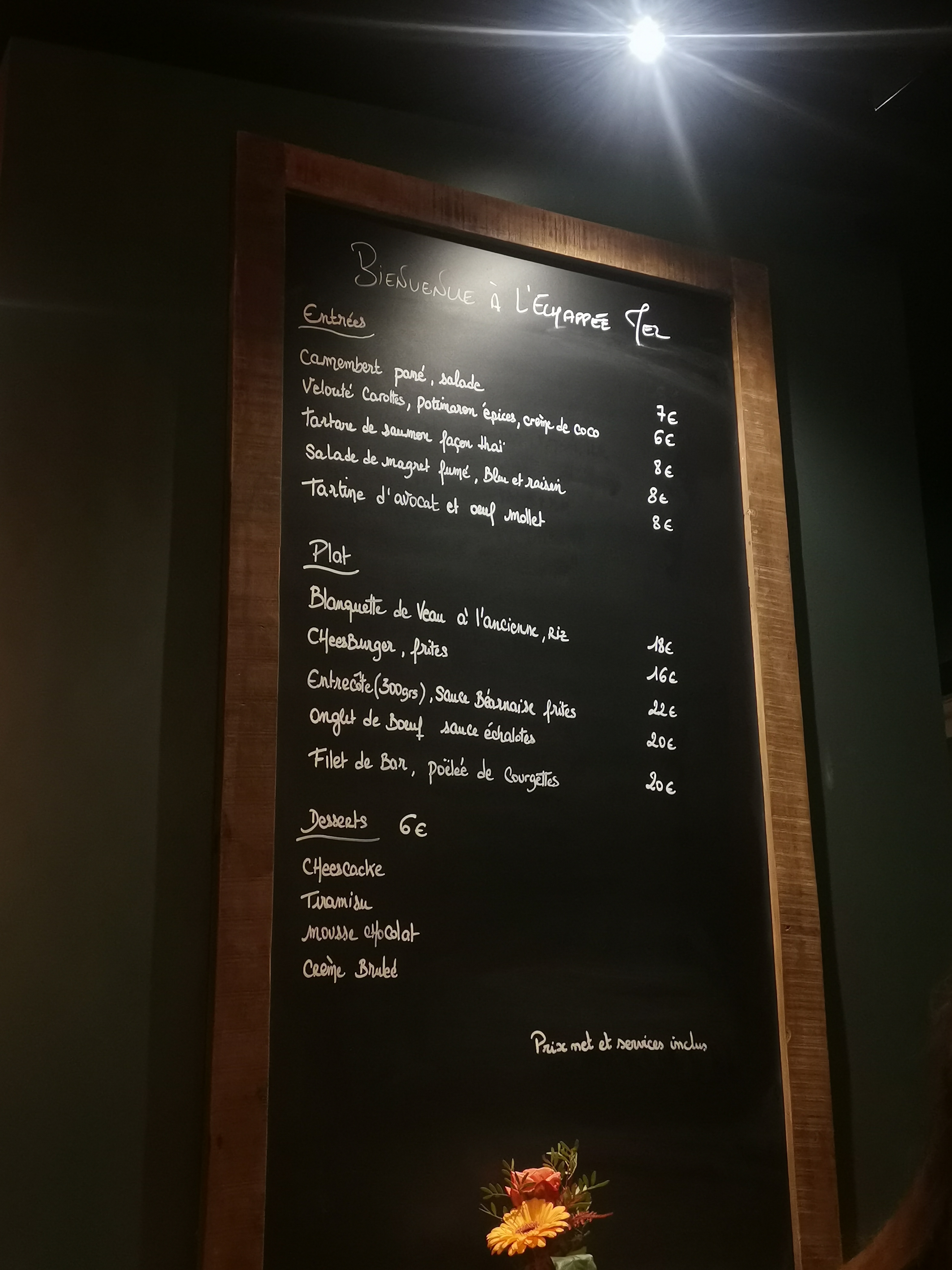 Nous avons dîné hier soir à l'échappée mel avec deux amis, et c'est la première fois que mon mari me conseille de laisser un avis. Le suprême de pintade et le filet mignon étaient excellents !