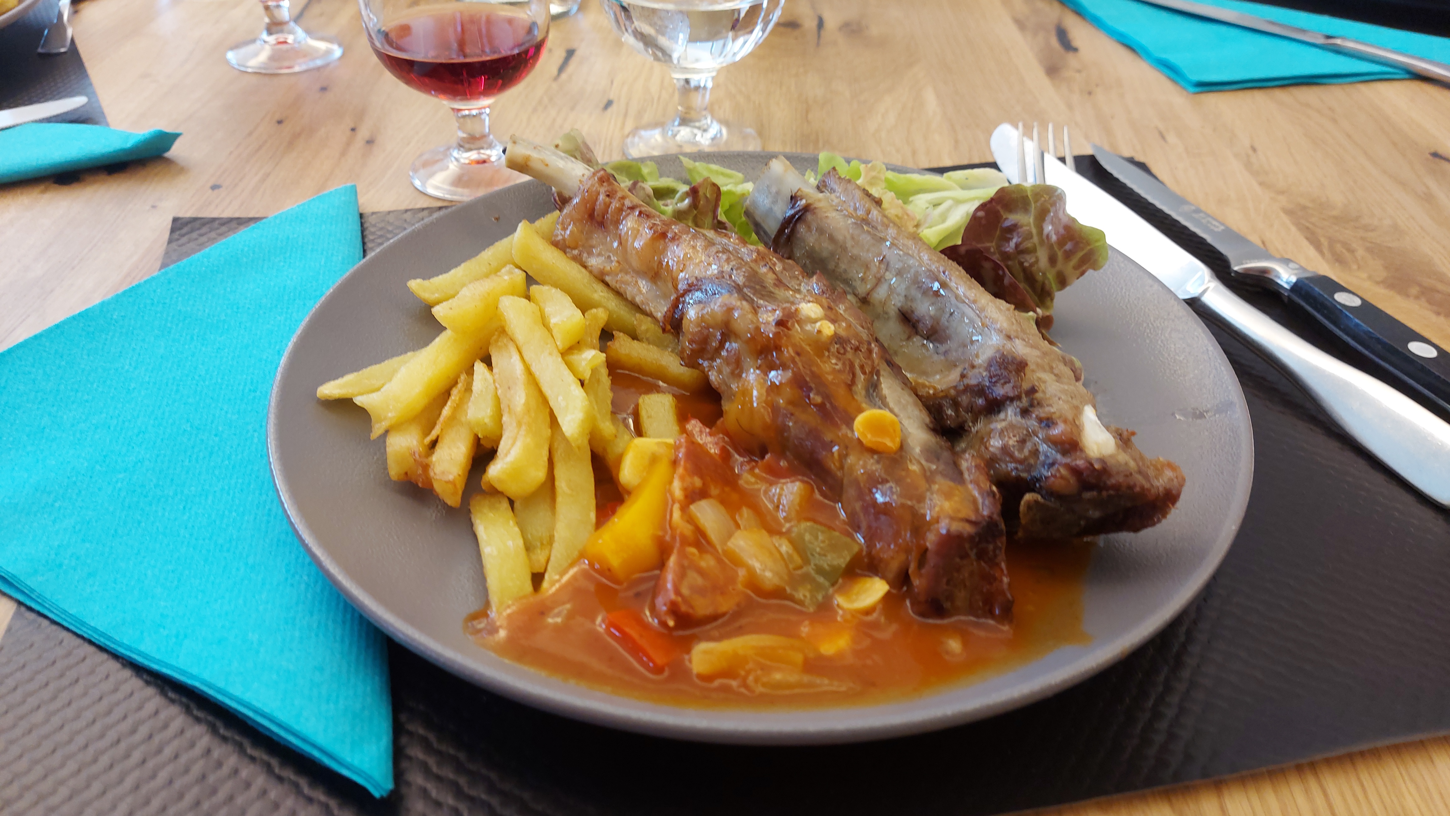 Après l'épisode malheureux d'hier (voir mon avis sur les trois jumeaux et sa nourriture tristement stéréotypée et chère) nous avons tenté ce petit resto. Nous n'avons pas été déçus :du vrai fait maison pour un prix plus que raisonnable. Entrée/plat/dessert pour 12,5€, des plats à la carte pour 13€. Je suis étonné qu'il n 'y avait pas plus de couverts, tant la différence était flagrante avec le restaurant essayé sur moyenmoutier. Faites le détour sur taintrux et vous ne serez pas déçus