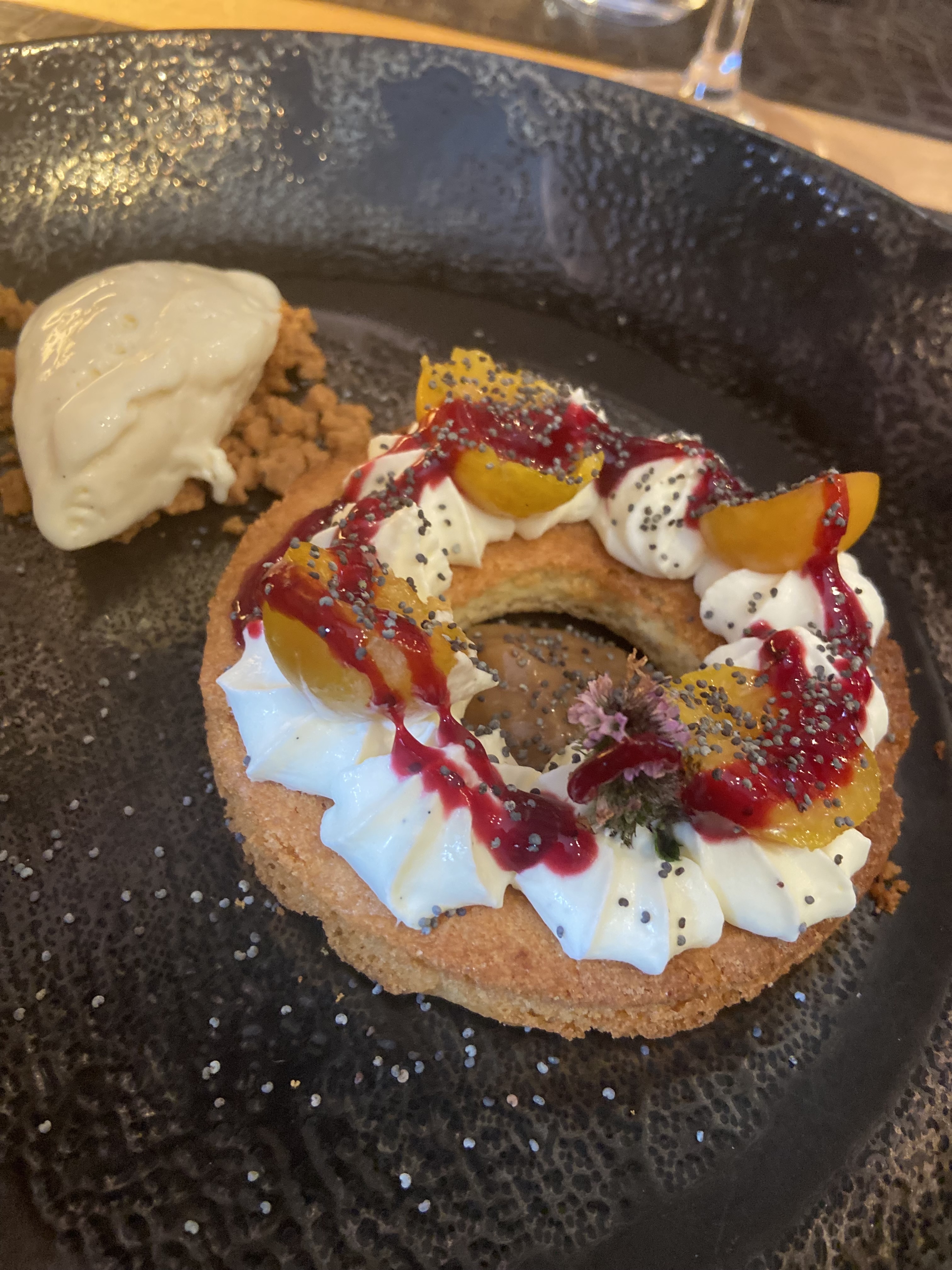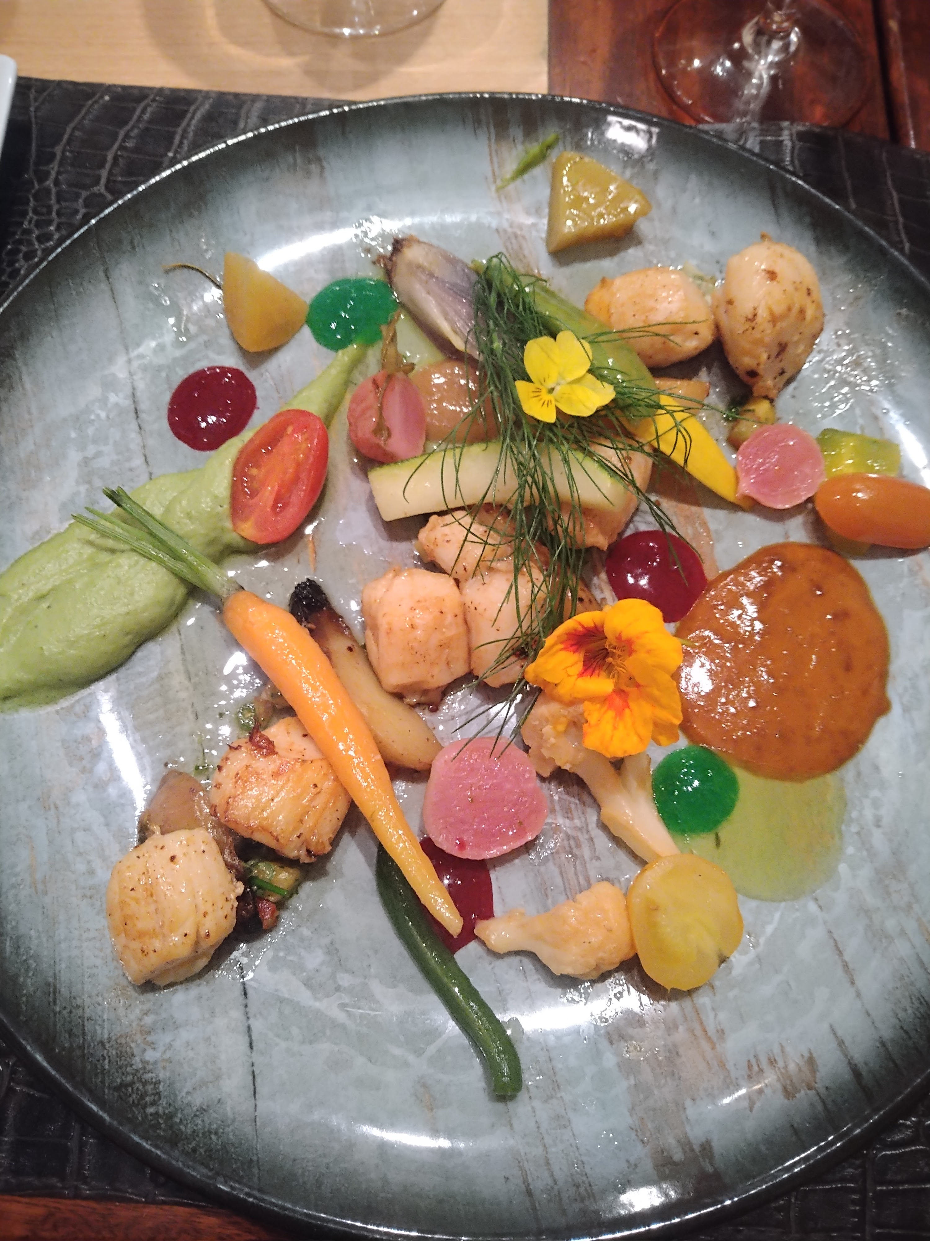 Une cuisine maîtrisée mais qui pourrait bénéficier d'un peu de simplification dans les assiettes. Faire moins mais mieux en mettant plus en valeur les produits locaux et de saison qui sont perdus dans l'ensemble. Bonne réactivité du service suite à une attente un peu longue.