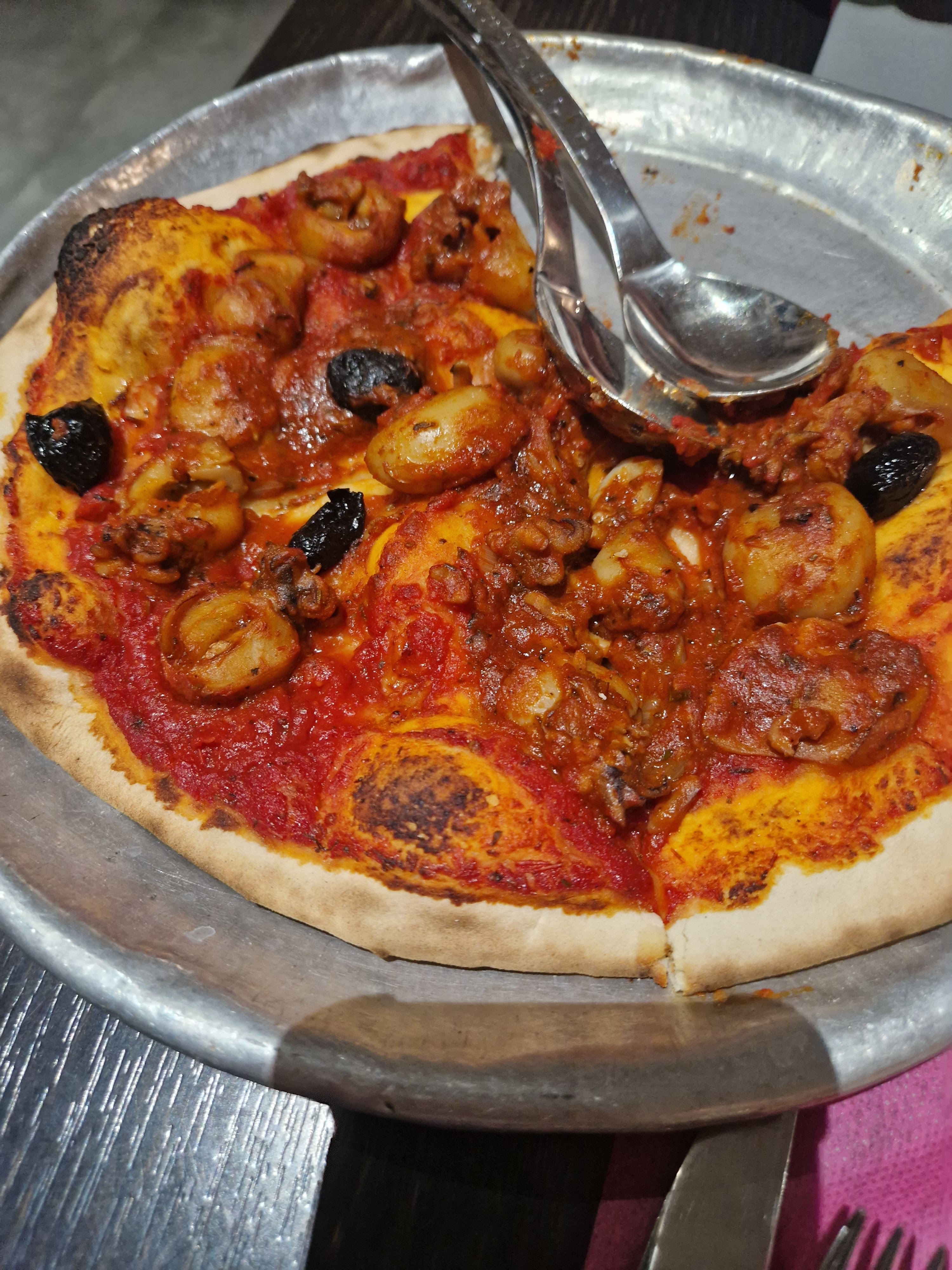 Très bonne pizza Équipe cool Par contre le gros bazar sur le parking !! Très compliqué pour déplacer les véhicules
