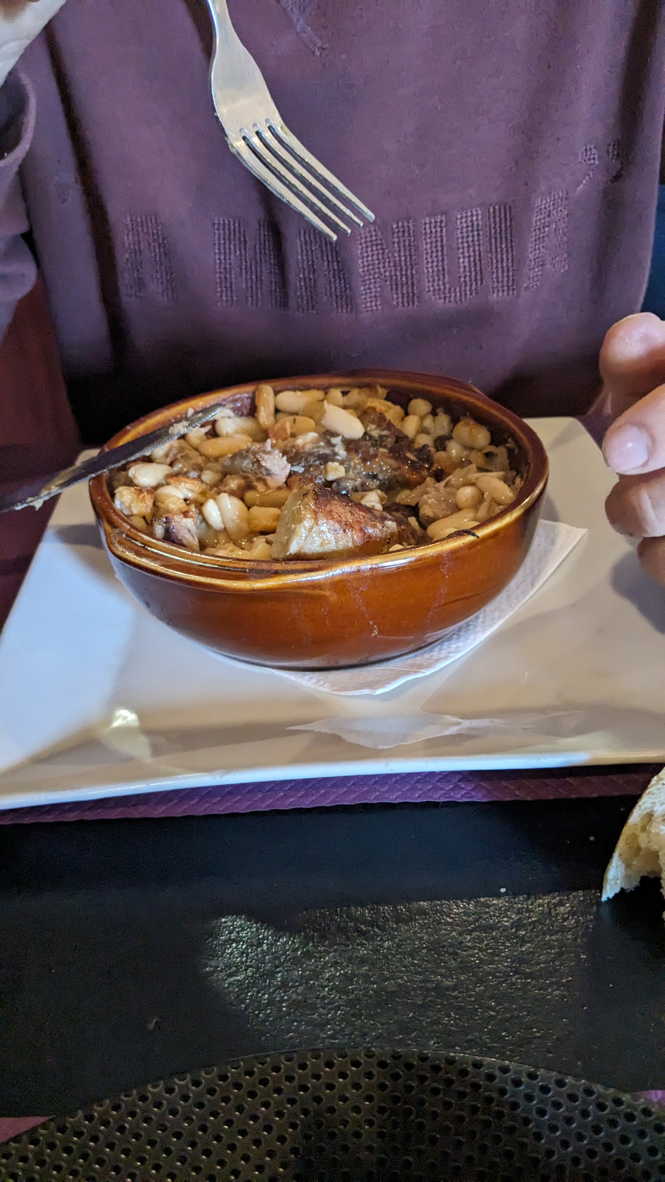 Accueil très conviviale mais Très déçus par ce repas dont nous attendions beaucoup car manger un excellent cassoulet on en rêvait.. or au menu nous avons pris : * une salade chèvre miel ....il y avait plus de salade que le reste car deux minuscules tranches de pain surmontées chacune d'une micro tranche de chèvre ( plus petit que les toasts canapés) et très huileuse *un cassoulet très médiocre loin et très loin du cassoulet toulousain ou de castelnaudary. EN EFFET UN MICRO MANCHON DE CANARD, UN BOUT DE SAUCISSE DE PORC NOYES AU MILIEU DE FAYOTS ECRASES ET SEC PRESQUE COMME UNE PUREE. on est loin de l'image représentée dans la publicité...le vrai cassoulet mijoté et onctueux à une cuisse de canard confite dans sa graisse ou au moins deux manchons de canard confits par pers. +DE LA COUENNE (LARD DE POITRINE),DE LA PALETTE OU ECHINE DE PORC, DU SAUCISSON A LAIL ET DE LA SAUCISSE DE MORTEAU ....LE TOUT MIJOTÉ DANS UN BOUILLON AVEC DU CONCENTRÉ DE TOMMATE ,DE BOUQUET GARNI ET DE GRAISSE D'OIE OU CANARD.....LA CETAIT BLANC, ÉCRASÉ, FARINEUX , SEC,ET TRÈS PAUVRE EN VIANDE .....PAUVRE CASSOULET ! et vous payez 22 euros pour une purée de fayots...pas recommandable et décevant. J'aurai dû calmer mon envie de cassoulet en achetant une boîte William saurin à moins de 5 euros pour deux....