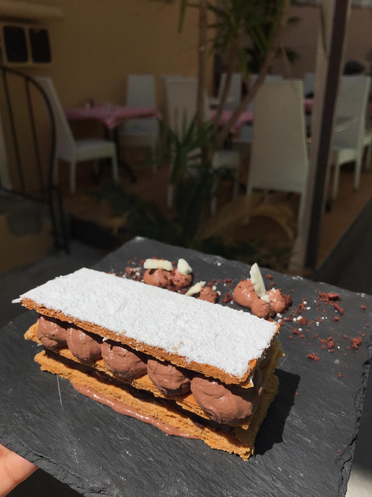 Mi-cuit au chocolat, ananas et croustillant au top. Accueil très agréable. Je recommande vivement.