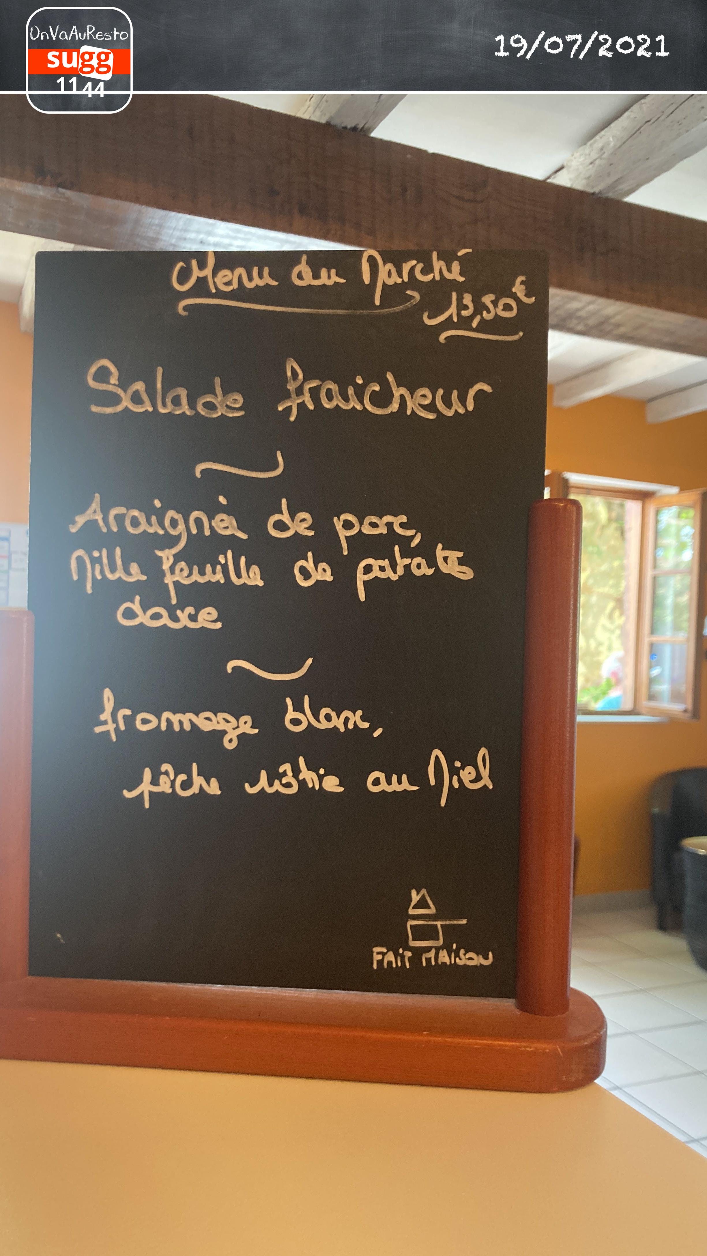 Repas du jour très bon copieux bien présenté. Au menu soupe froide de courgettes avec son fromage de chèvre. Blanquette de veau et riz. Far breton. Prix très raisonnable.