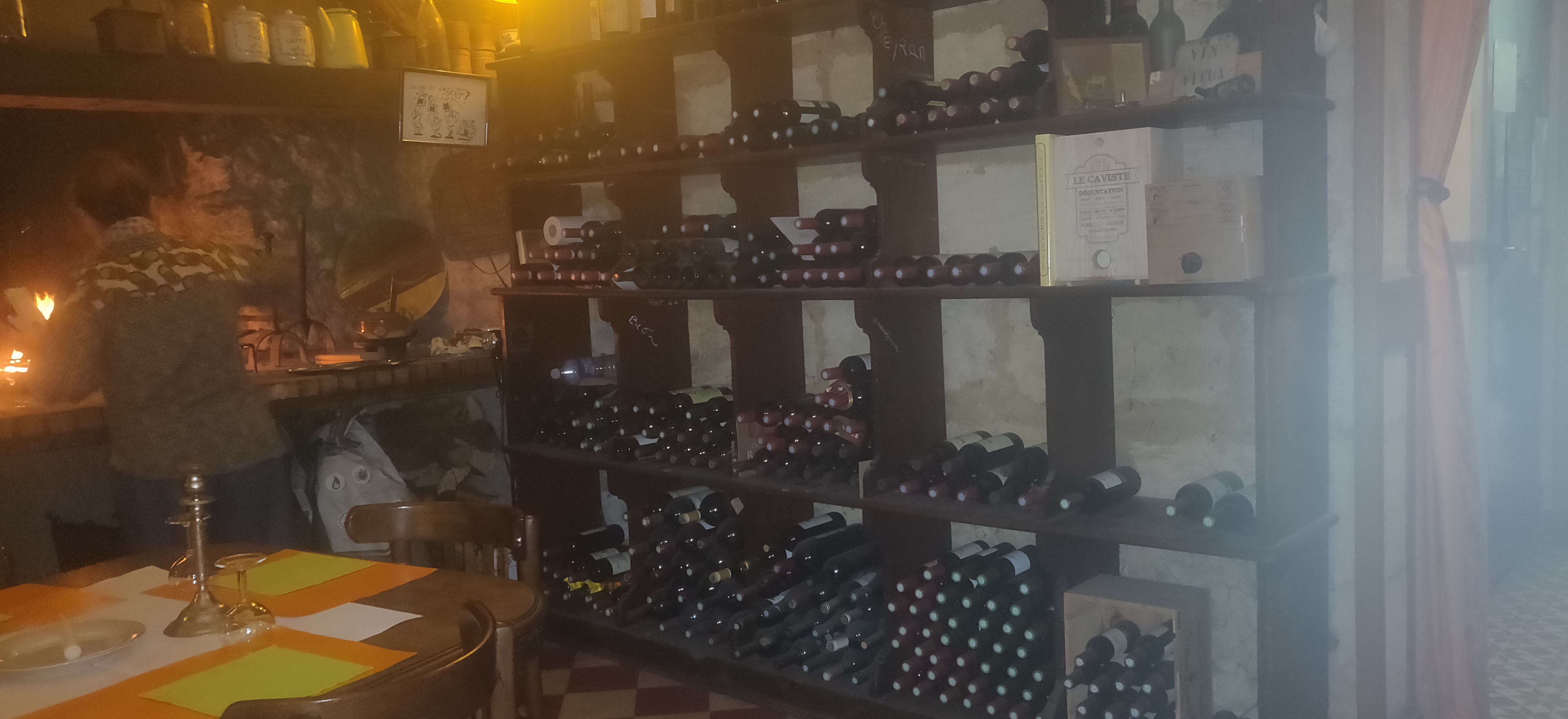 Un petit resto presque secret trouvé par hasard. Une ambiance chandelles, feu de cheminée, tamisée et intimiste. La patronne vous accueille en toute simplicité, et son mari est en cuisine. On se croirait chez mémé il y a 40 ans, avec tout un décor de brocante rappelant l'ancienne boulangerie jadis dans ces murs, et les vins de Bordeaux, mis à l'honneur dans la cave murale (un peu près du feu à mon goût..). Les entrecôtes étaient d'excellente qualité, cuites au feu de cheminée sur la grille par Madame. Grande gentillesse de la maîtresse de maison, qui cependant doit courir partout entre l'accueil, le service des vins et des plats, les commandes, et la cuisson des viandes dans la cheminée. La pauvre. Soyez patients et indulgents. L'expérience en vaut la peine. J'ai adoré cette atmosphère chaleureuse et intime. Très agréable moment passé à la boulangerie. Ps: ne demandez pas de condiments pour vos grillades, vous risquez de vexer la patronne qui défend sa cuisine naturelle et sans chichi. ☺️