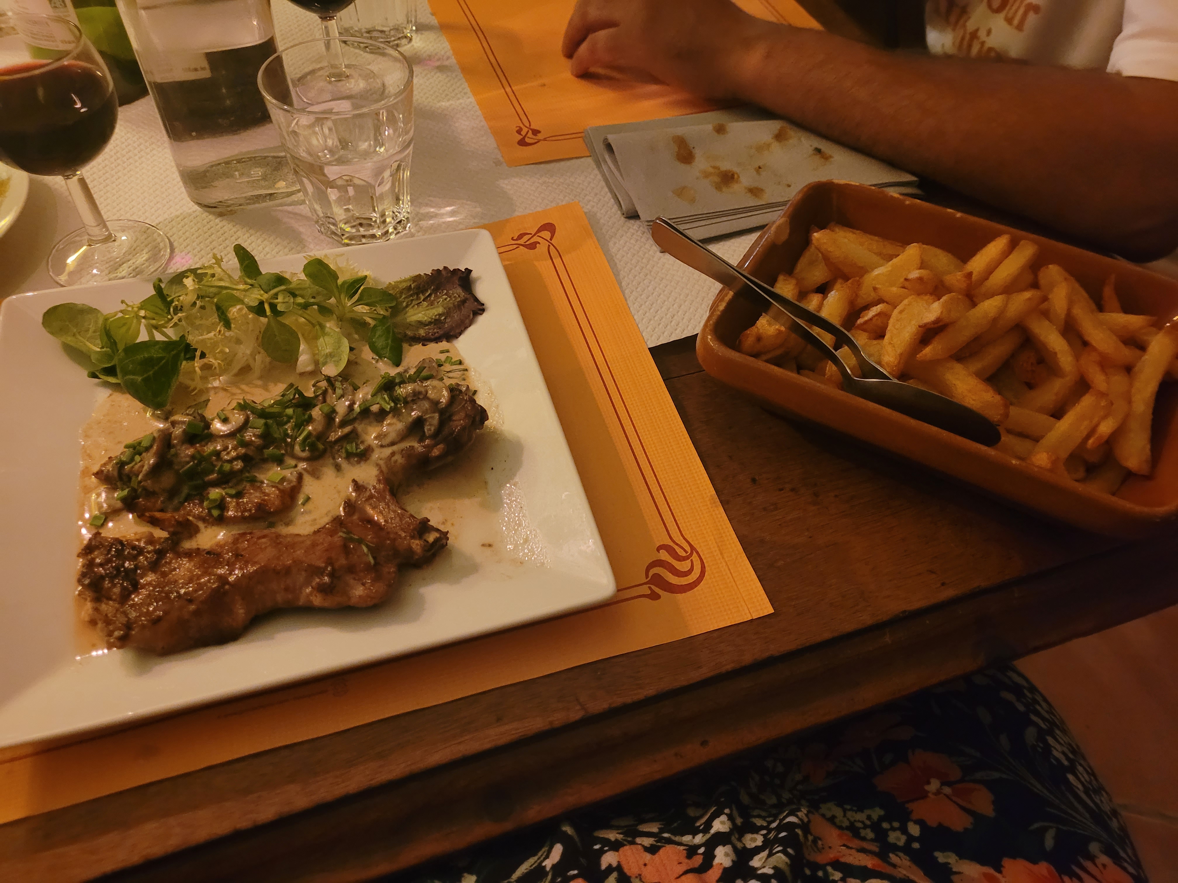 Magret de canard et frites maison Café liegeois Excellent ! Cadre sympathique et typique de la région, à recommander