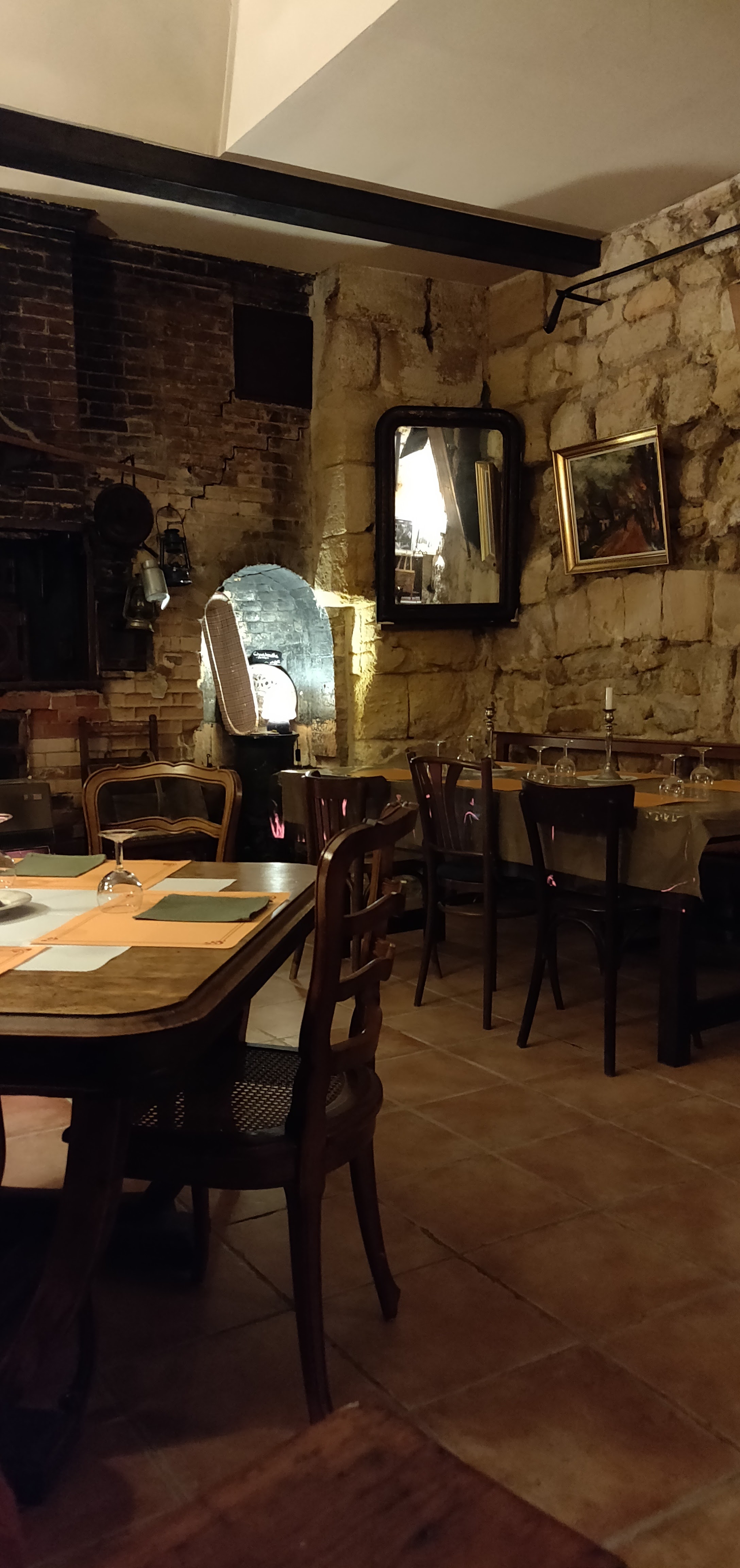 Cadre magnifique et intimiste, les viandes sont délicieuses et grillées au feu de bois de la cheminée, cuisine française excellente, et riche cave à vins. Ici on prend le temps d'apprécier les bonnes choses