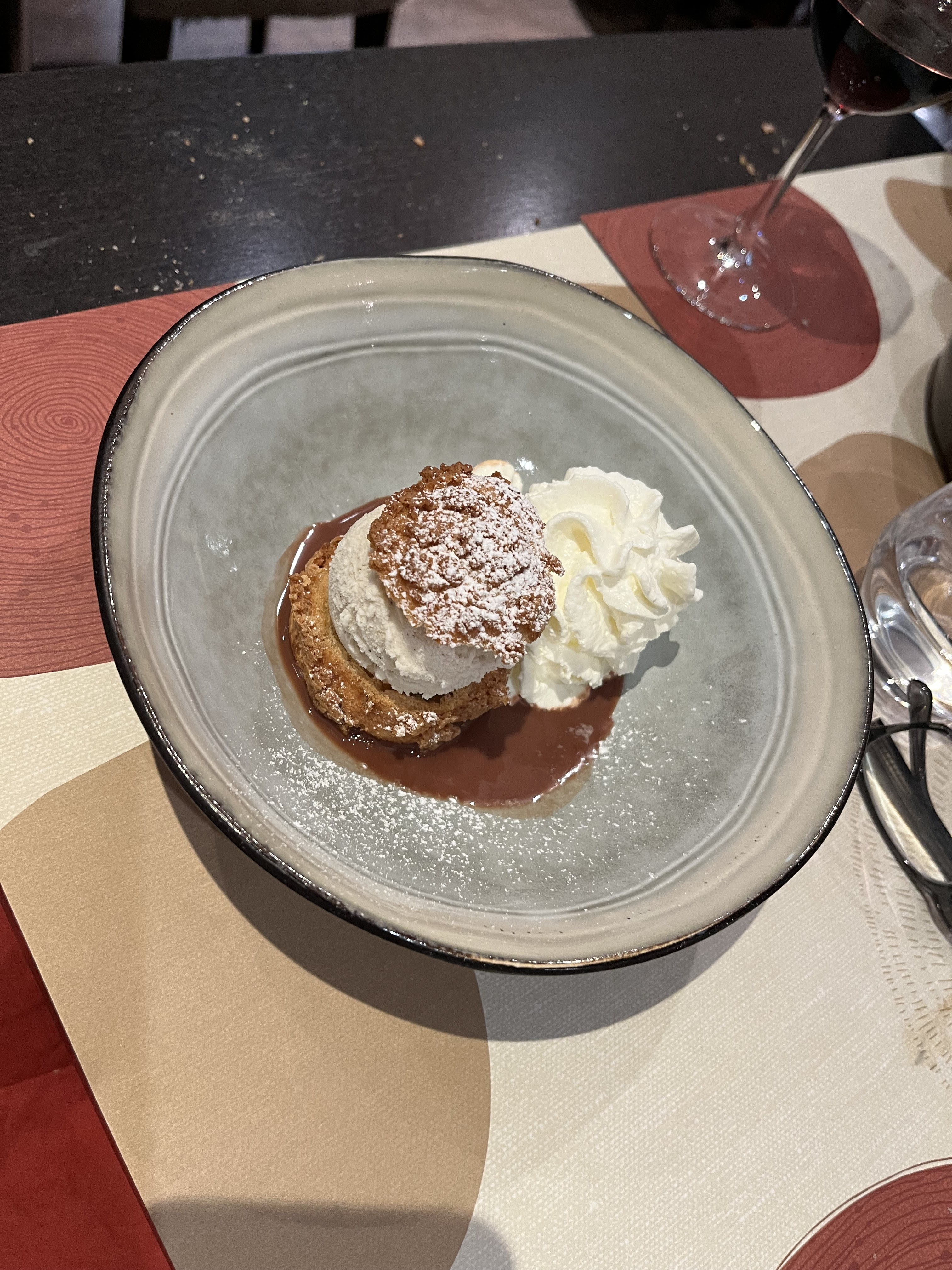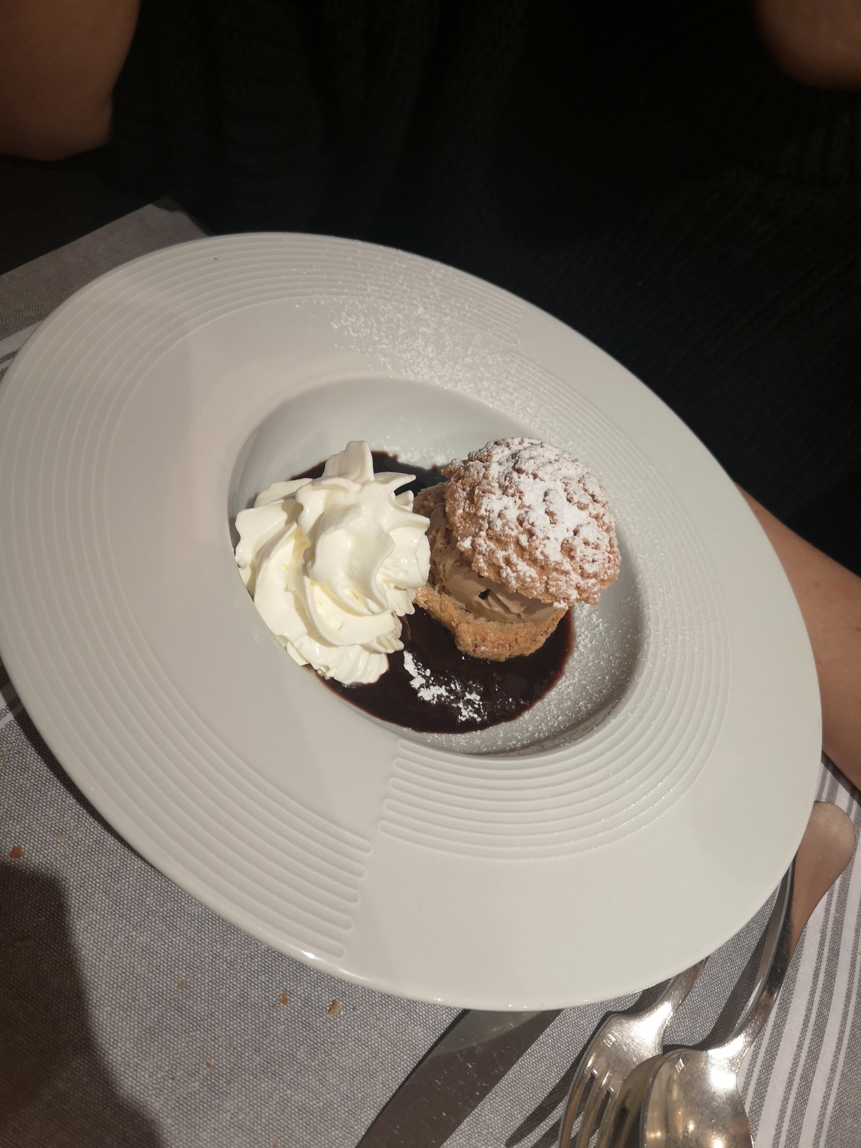 Très bon service, le serveur a été de très bon conseil notamment sur le dessert. Les profiteroles étaient excellents. Les meilleurs qu’on ait mangés. Les plats très bien cuisinés. Très bonne cuisson pour le poisson et viande rouge.