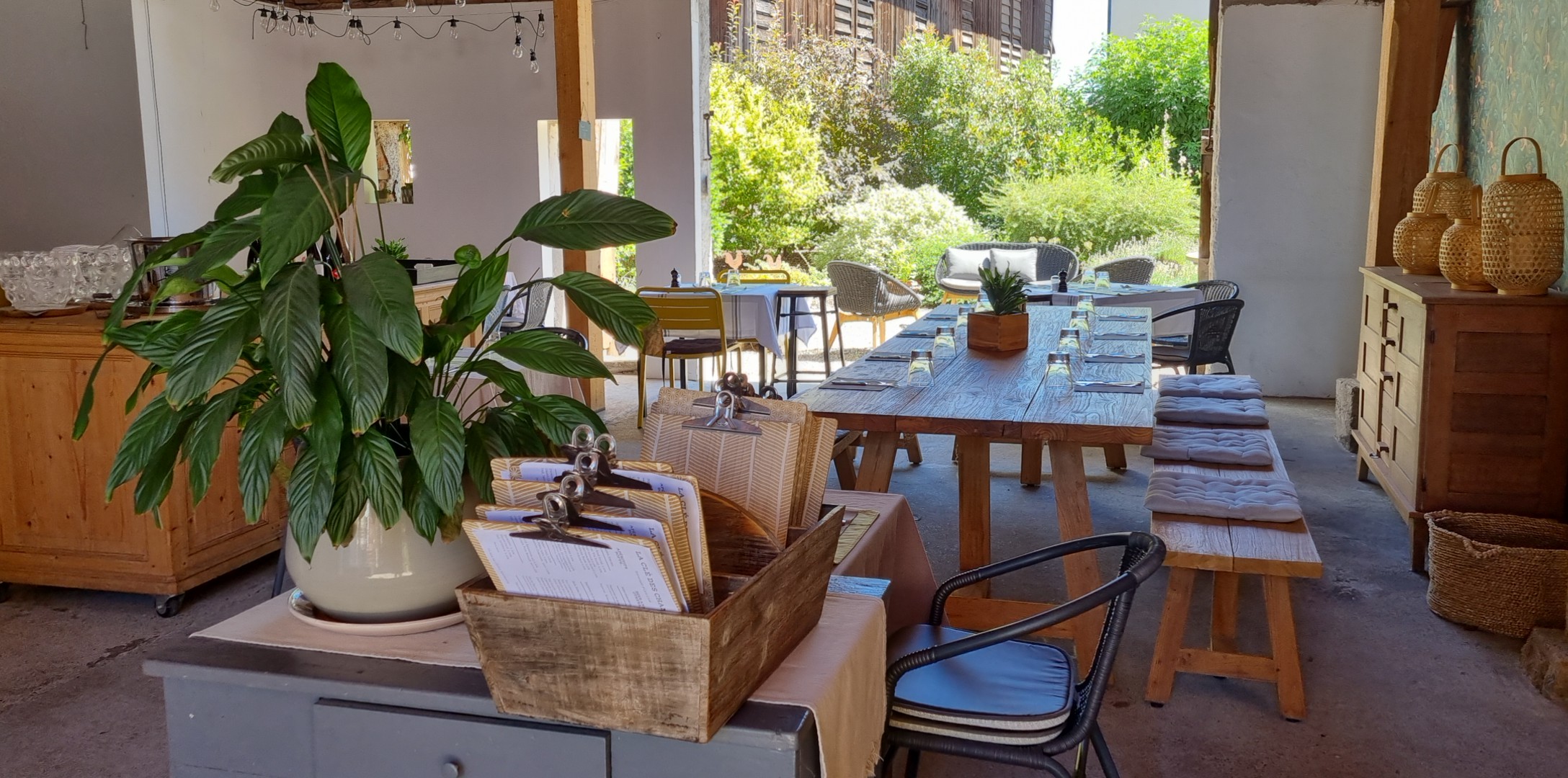 Une table toujours inspirée dans un cadre simple et familial. En été la terrasse dans la grange est un must