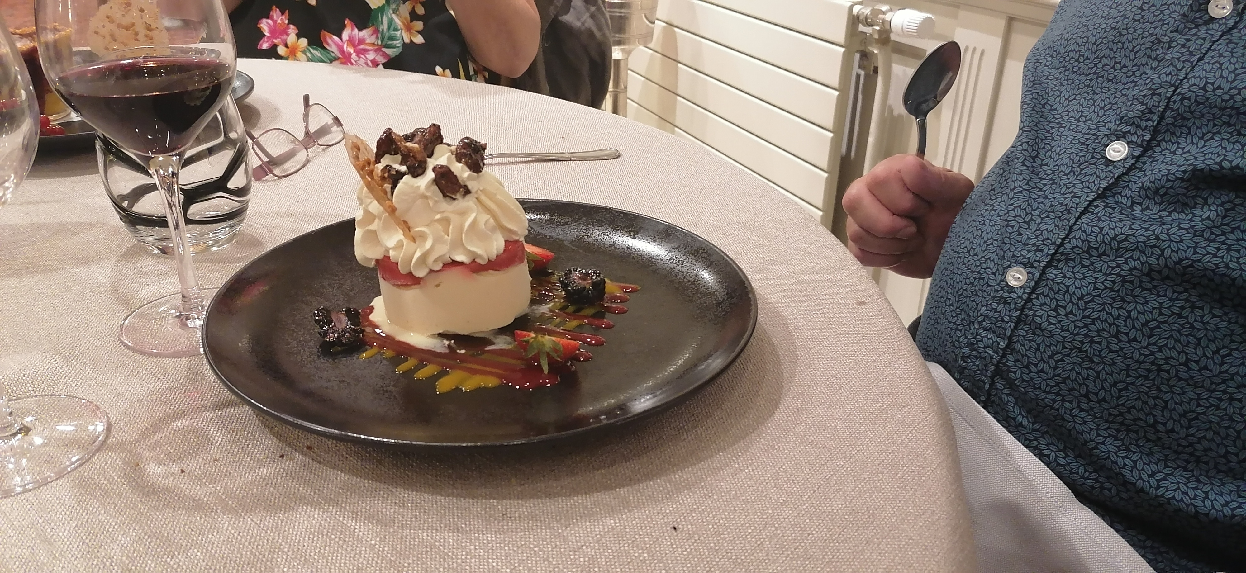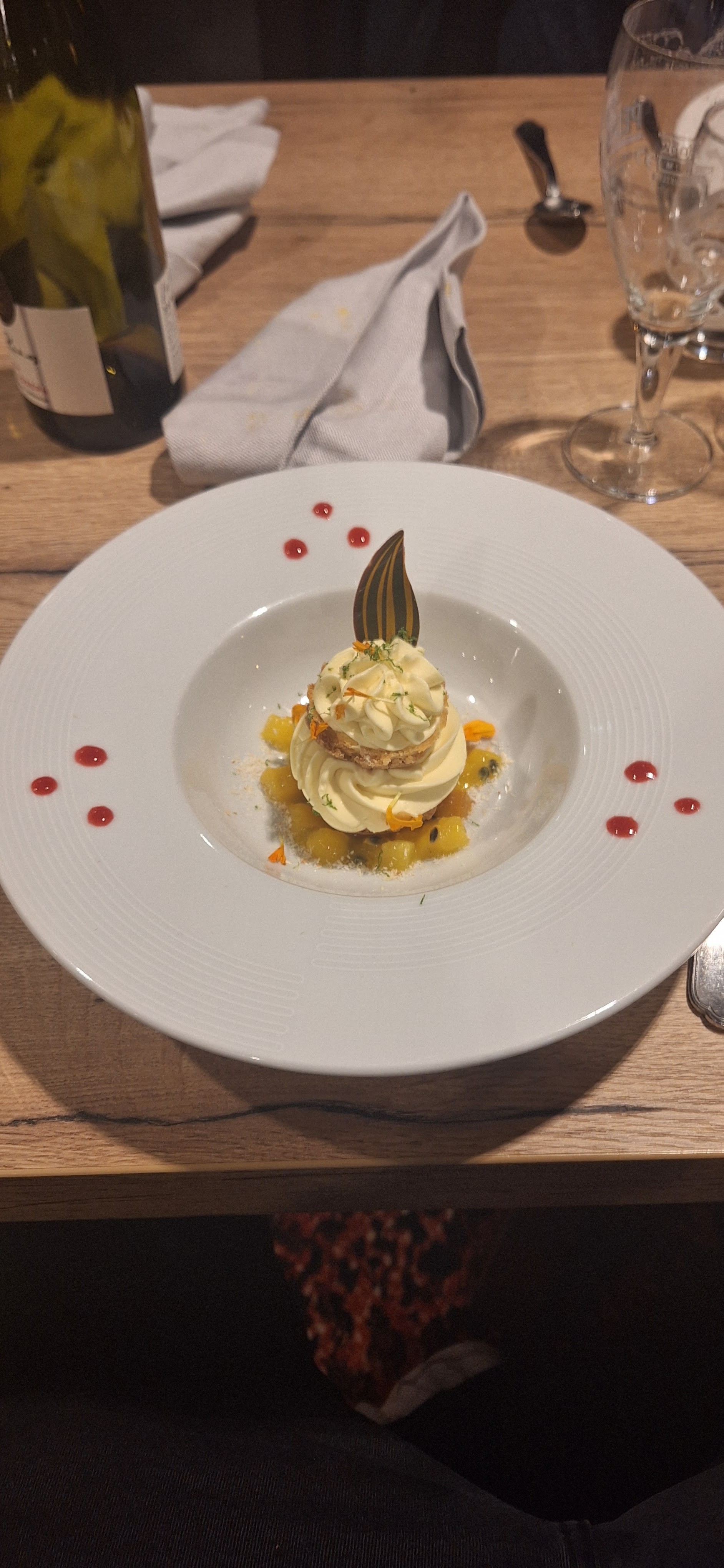 Posté le 05/09/2020 à 16:01"Service impeccable, cuisine raffinée, très belle présentation des assiettes. Mention spéciale pour le paviova. Je n'ai mis que 4 étoiles car pour moi, le seul bémol entrée et plat bien que très bons sont un peu légers en quantité (ex: 1 toast c'est trop peu pour le foie gras). Il ne manque pas grand-chose pour que tout soit parfait. Je recommande."