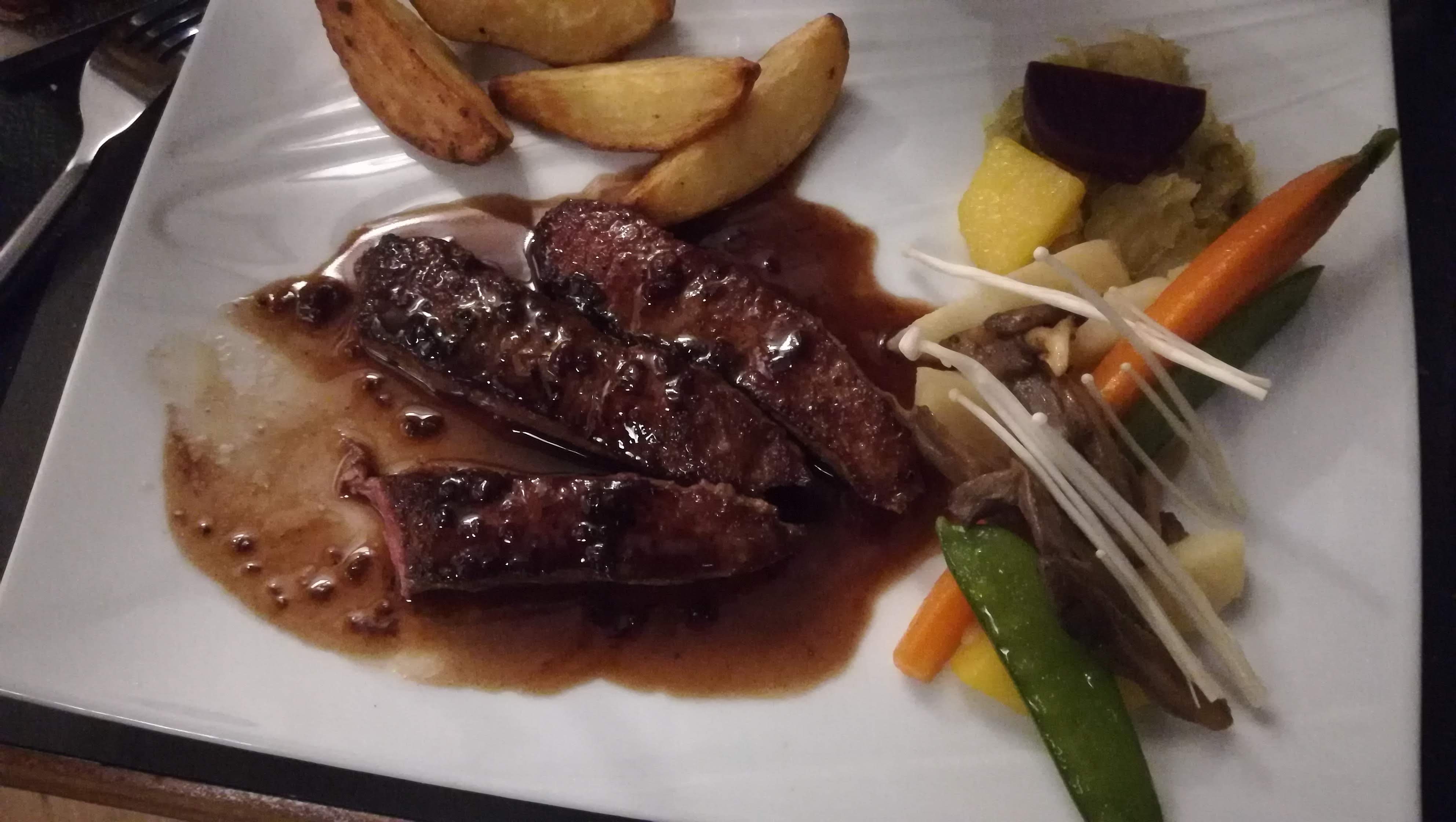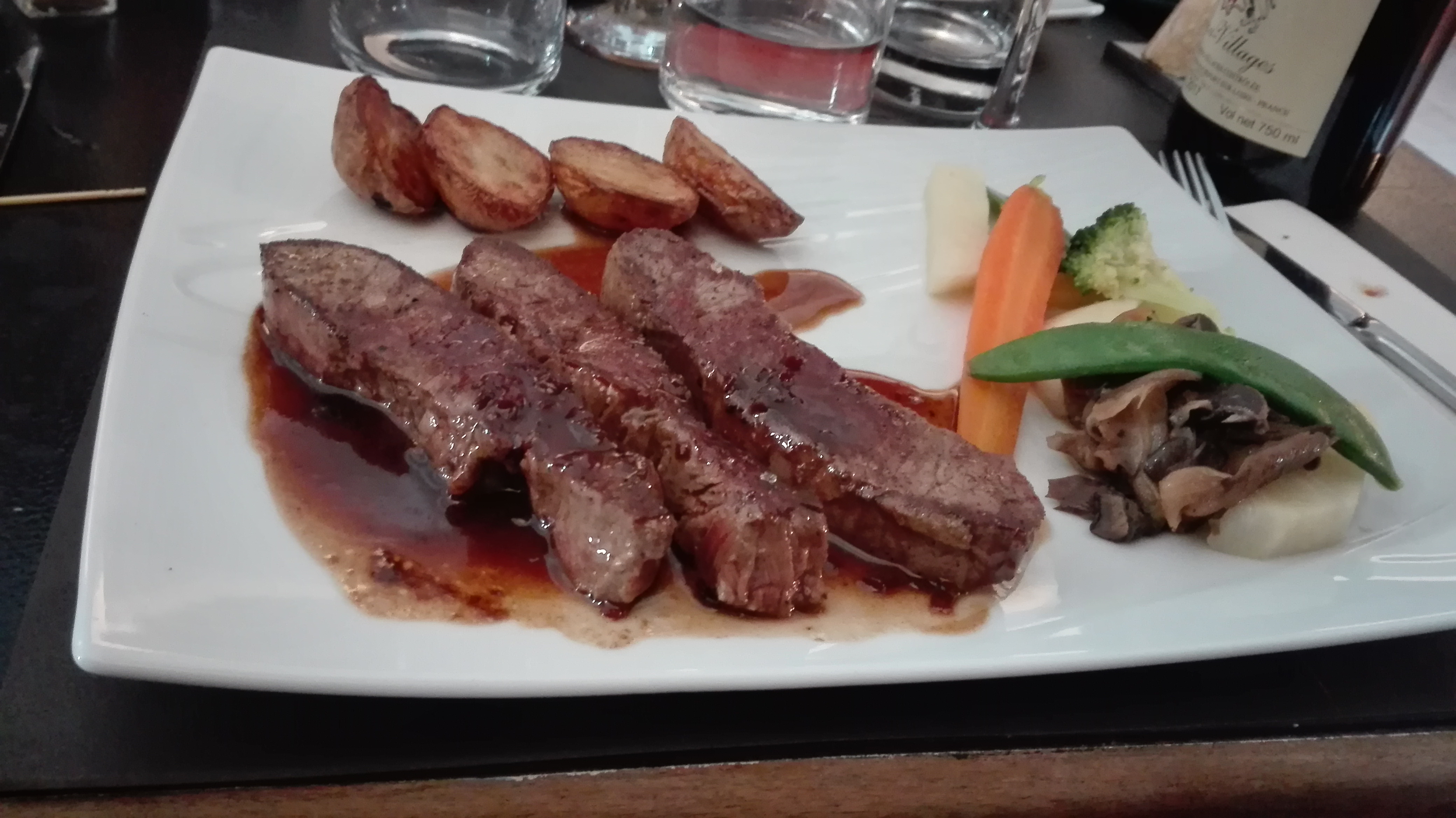 Bonne saveur des plats ,assiette chaude , Vin de bonne qualité a bonne température. Cadre propre .