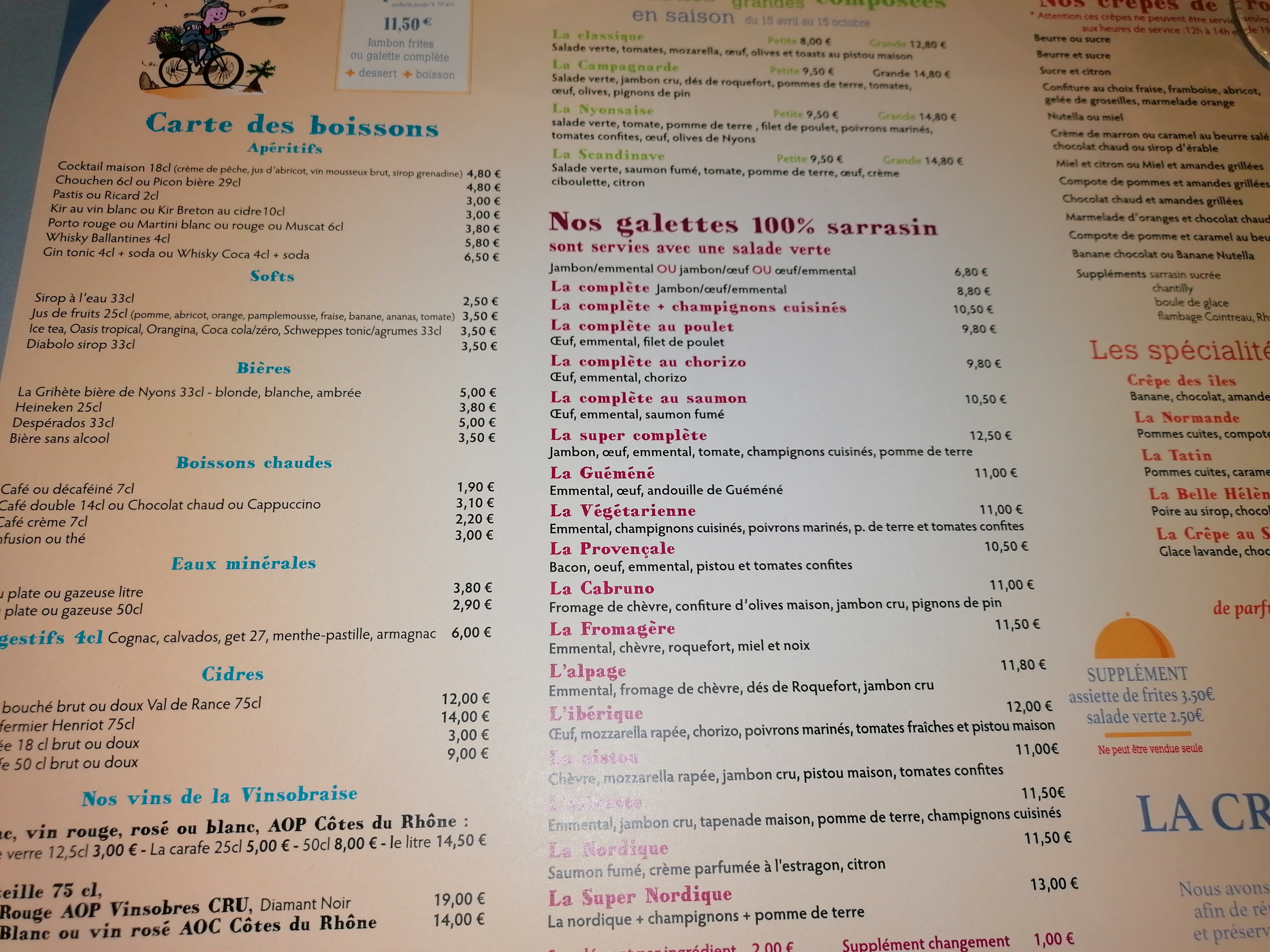 C'est un de nos restaurants préférés à Nyons pour déjeuner. Les crêpes sont superbe et le plat du jour est toujours de bonne qualité.