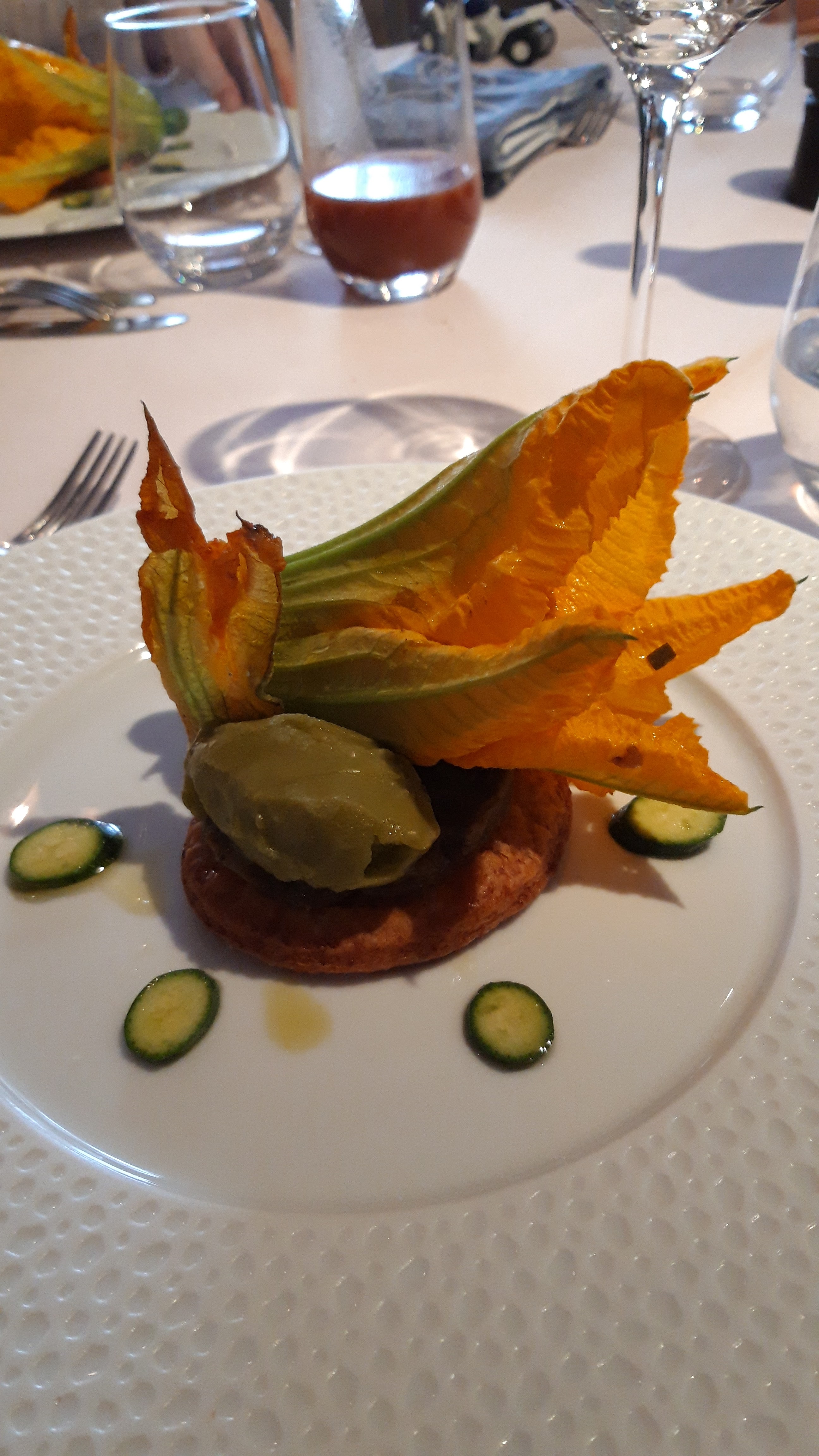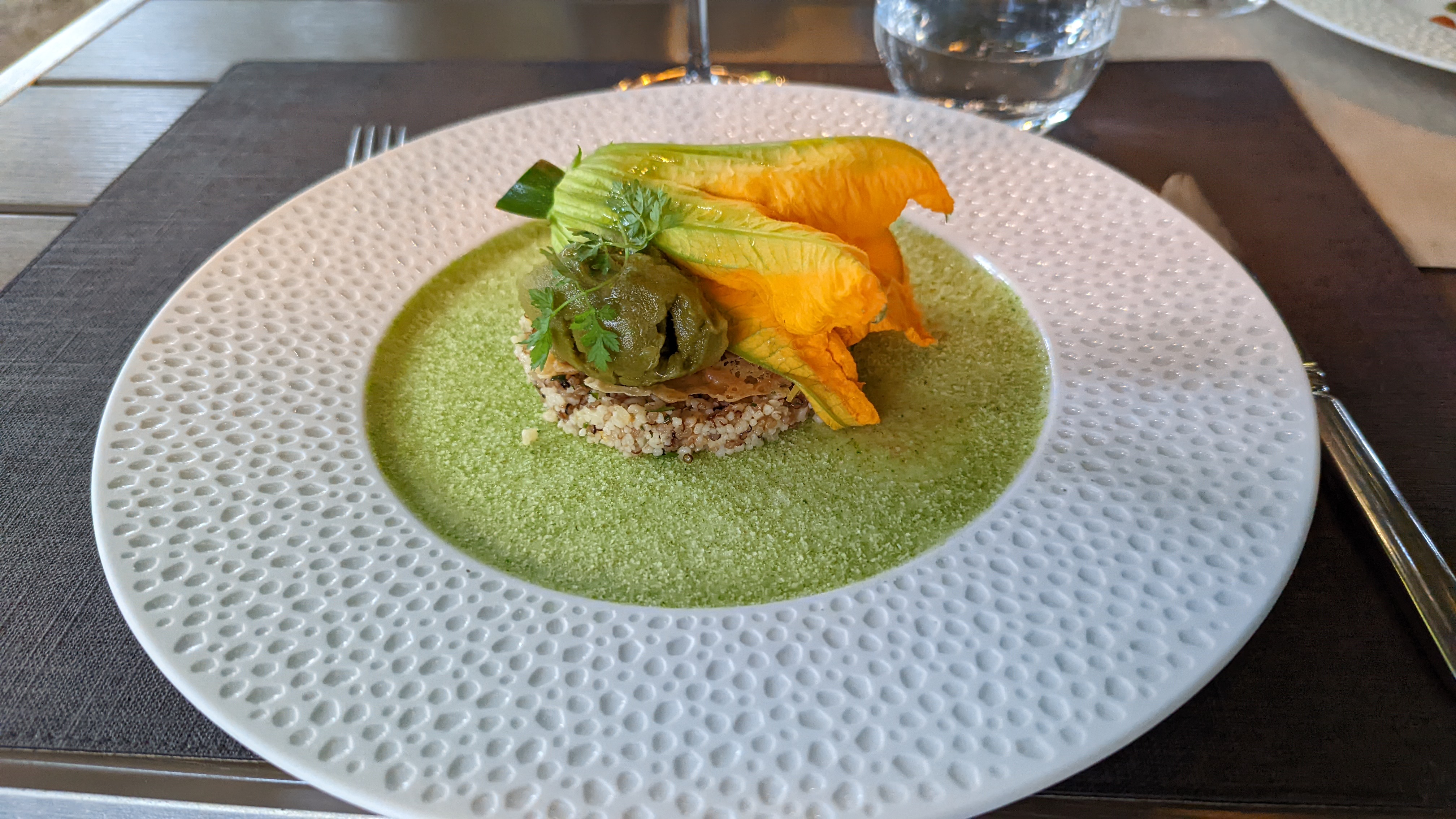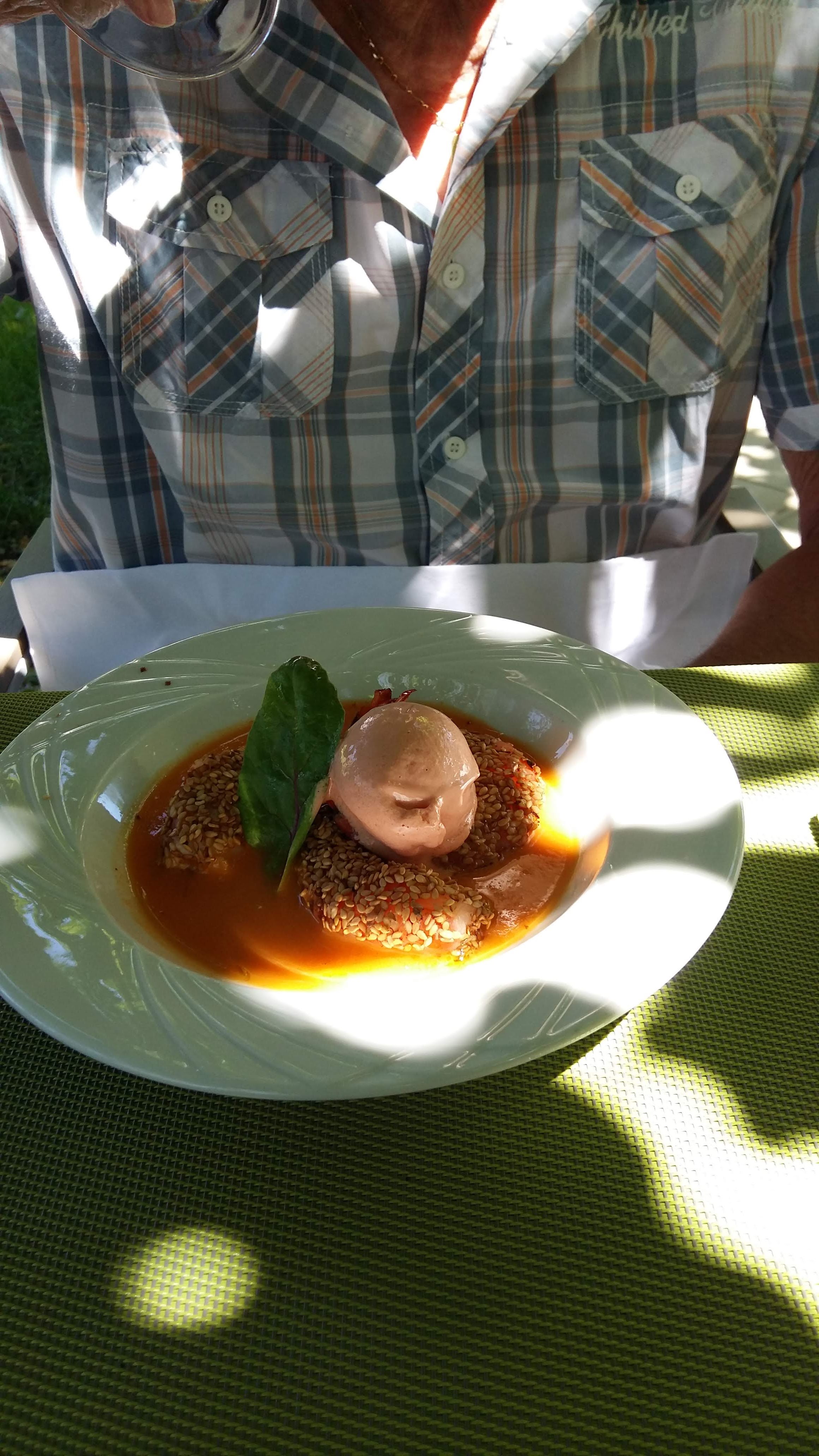 Moment très agréable à l ombre sur la terrasse.repas excellent,plats très joliement décorés.beaucoup de travail sans nul doute.personnel aimable et accueuillant.à refaire