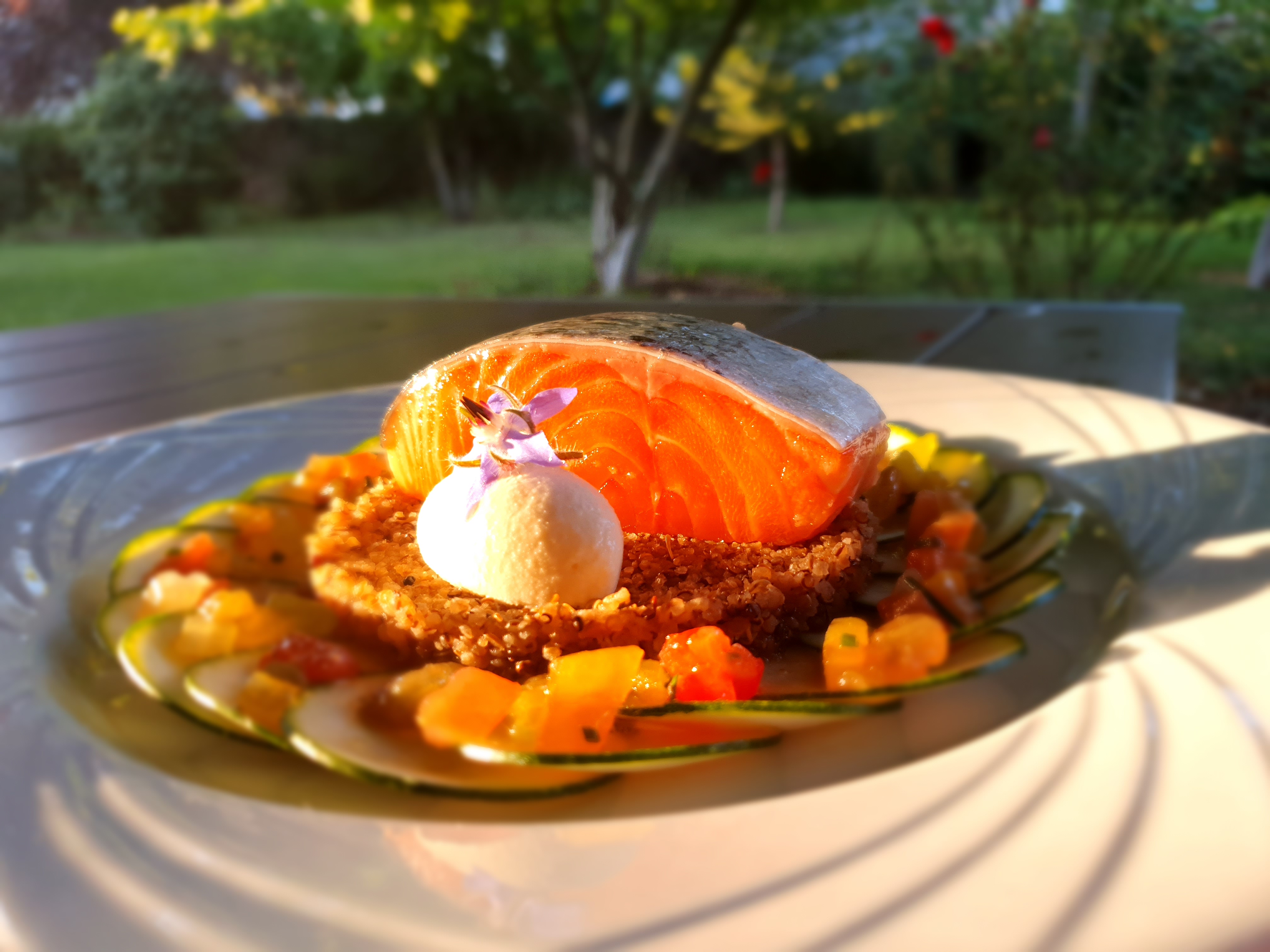 Cuisine savoureuse et raffinée, à base de produits frais de saison. Servi dans un beau jardin au calme. Excellent rapport qualité/prix.