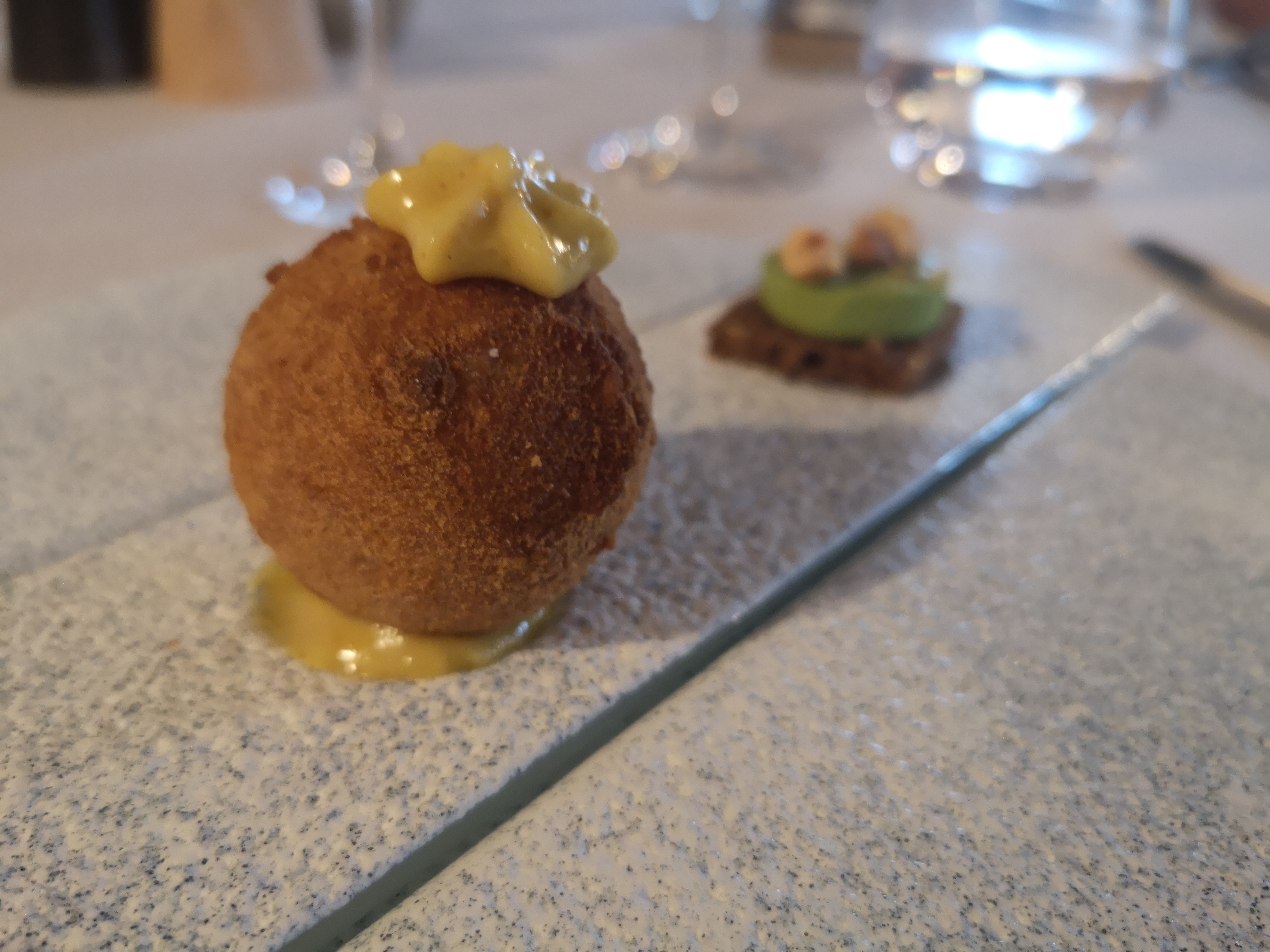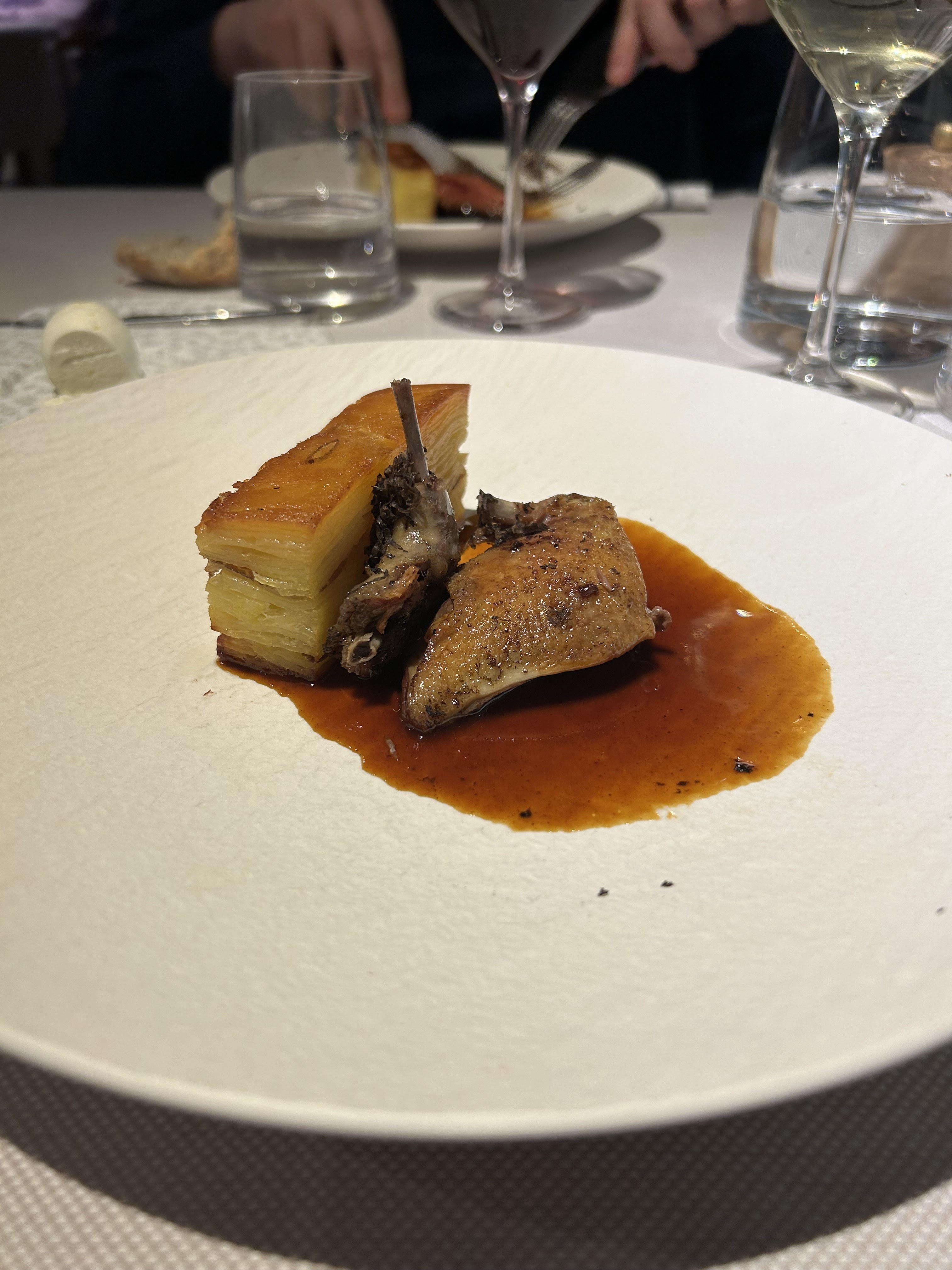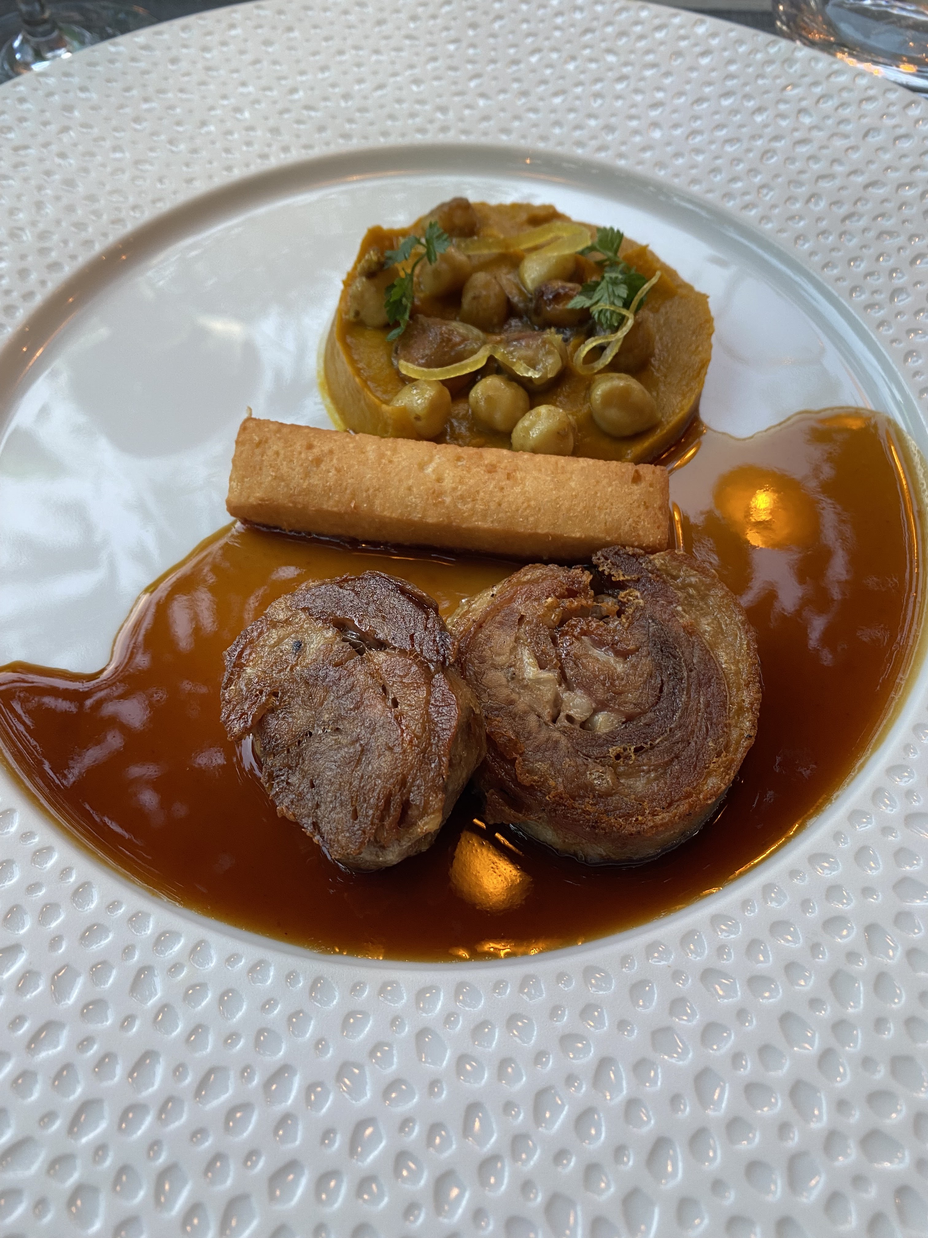 Tout est fait avec attention et sérieux. Nous avons passé un bon moment. Personnellement, et c’est affaire de goût, j’ai été déçu de plus sentir le beurre noisette sur les cuissons de l’anguille que le produit. Et le jus réduis sur la pluma semblait très standard et la garniture aurait mérité d’être plus étoffée et relevée en saveur. L’assiette était réfléchie et le travail déployé en cuisine m’a semblé très important par rapport au ressenti en dégustation. Je reviendrai en régional que je suis et j’espère que le talent en cuisine aura mis son expertise technique au service de sa créativité pour le bonheur de nos papilles. 🙏🏻