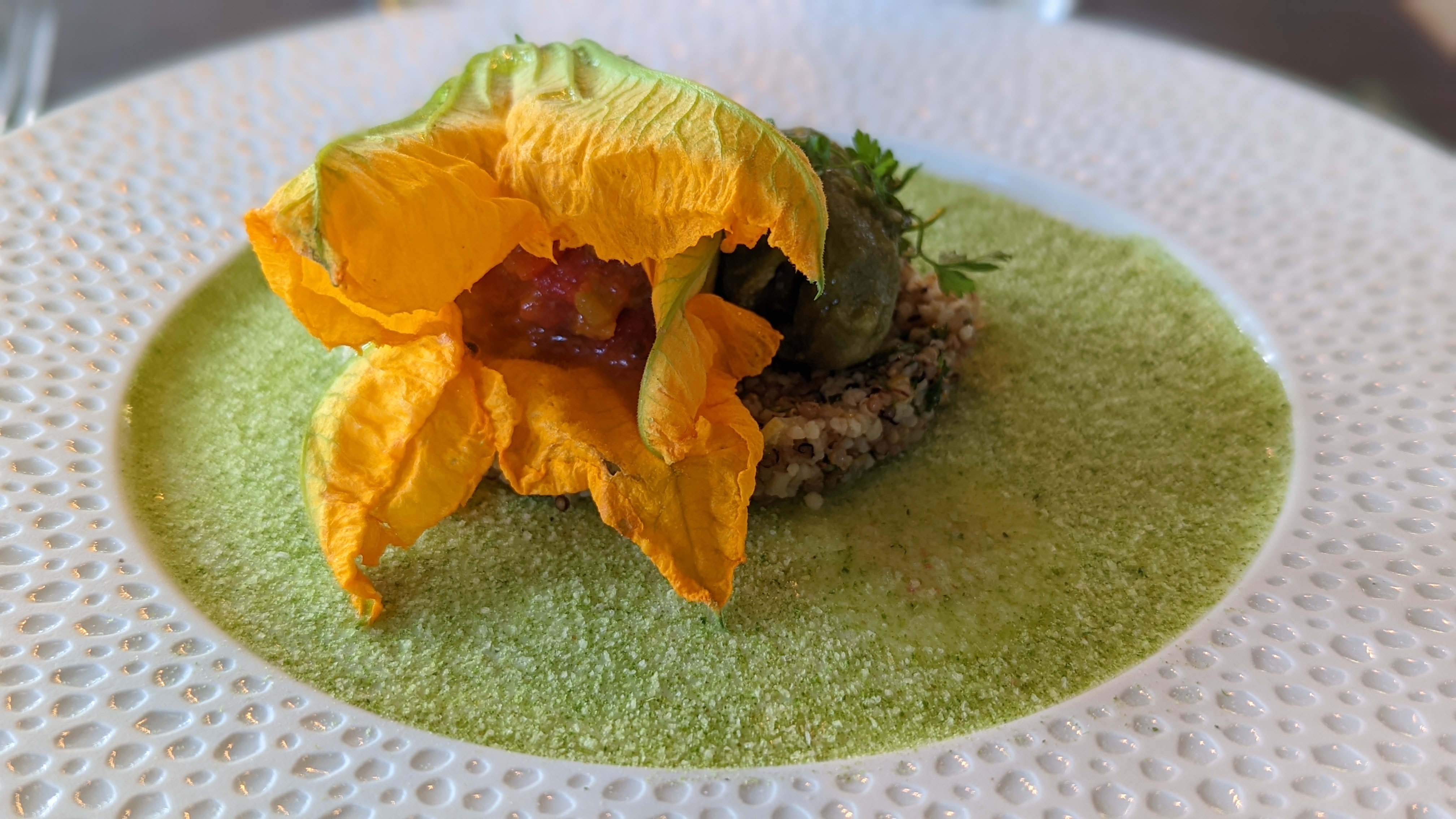 Tout simplement exceptionnel ! Rien à redire. Le cadre bucolique , les plats bons et beaux, le service sympathique. Merci pour ce fabuleux repas !