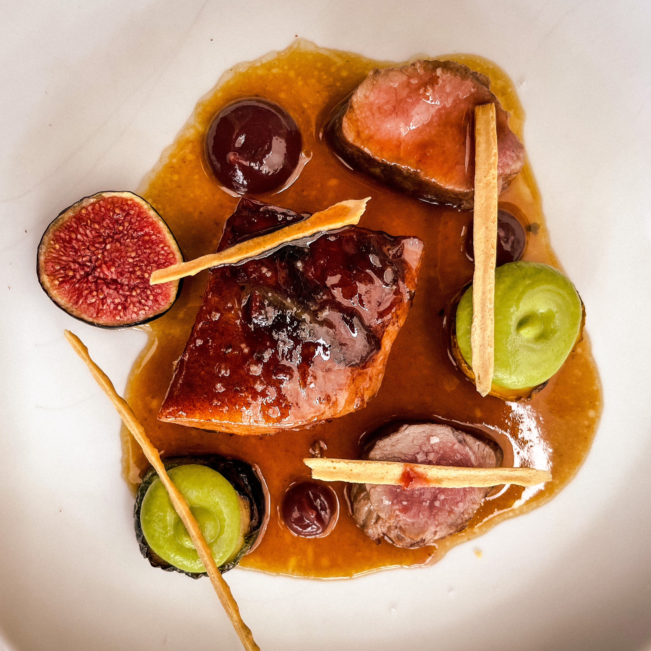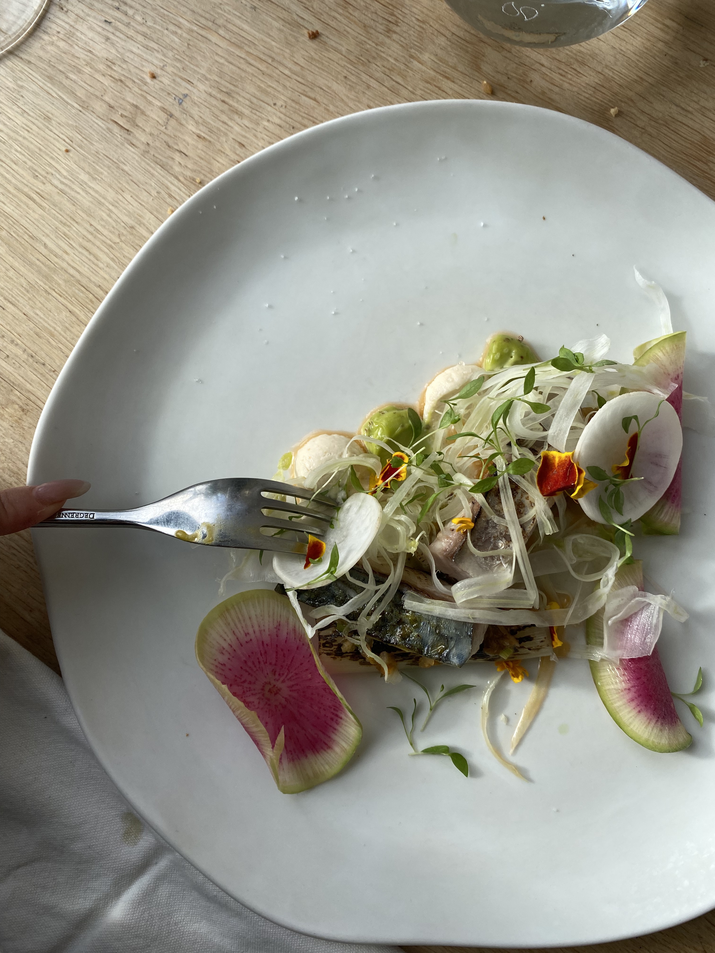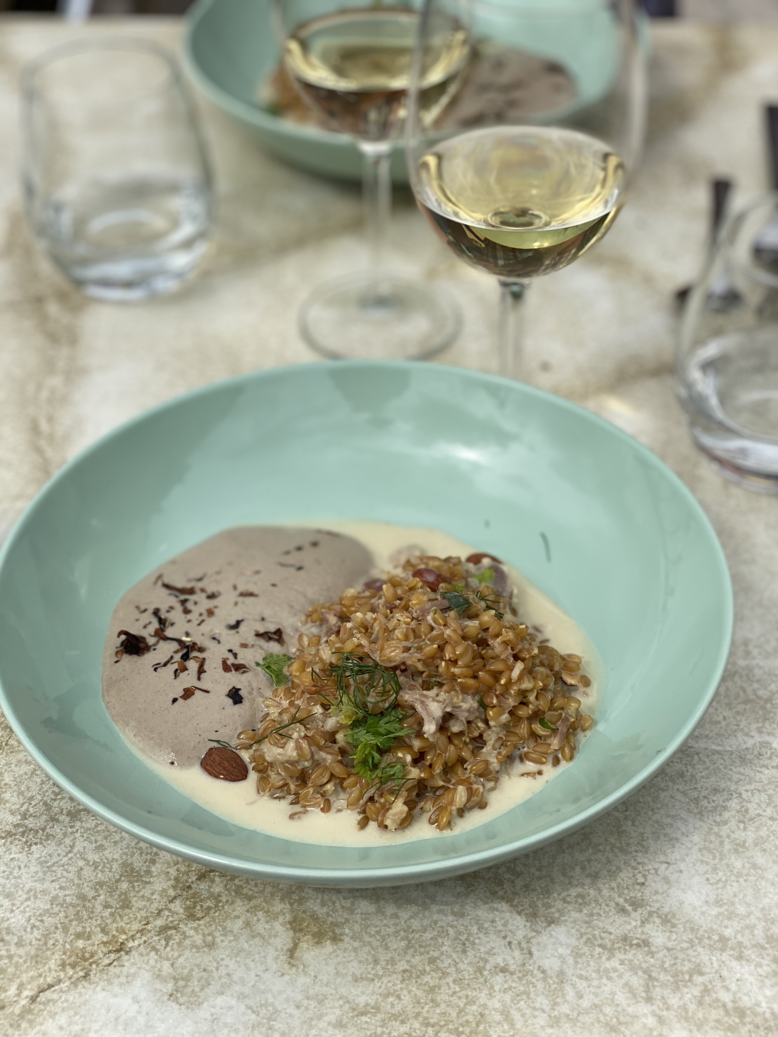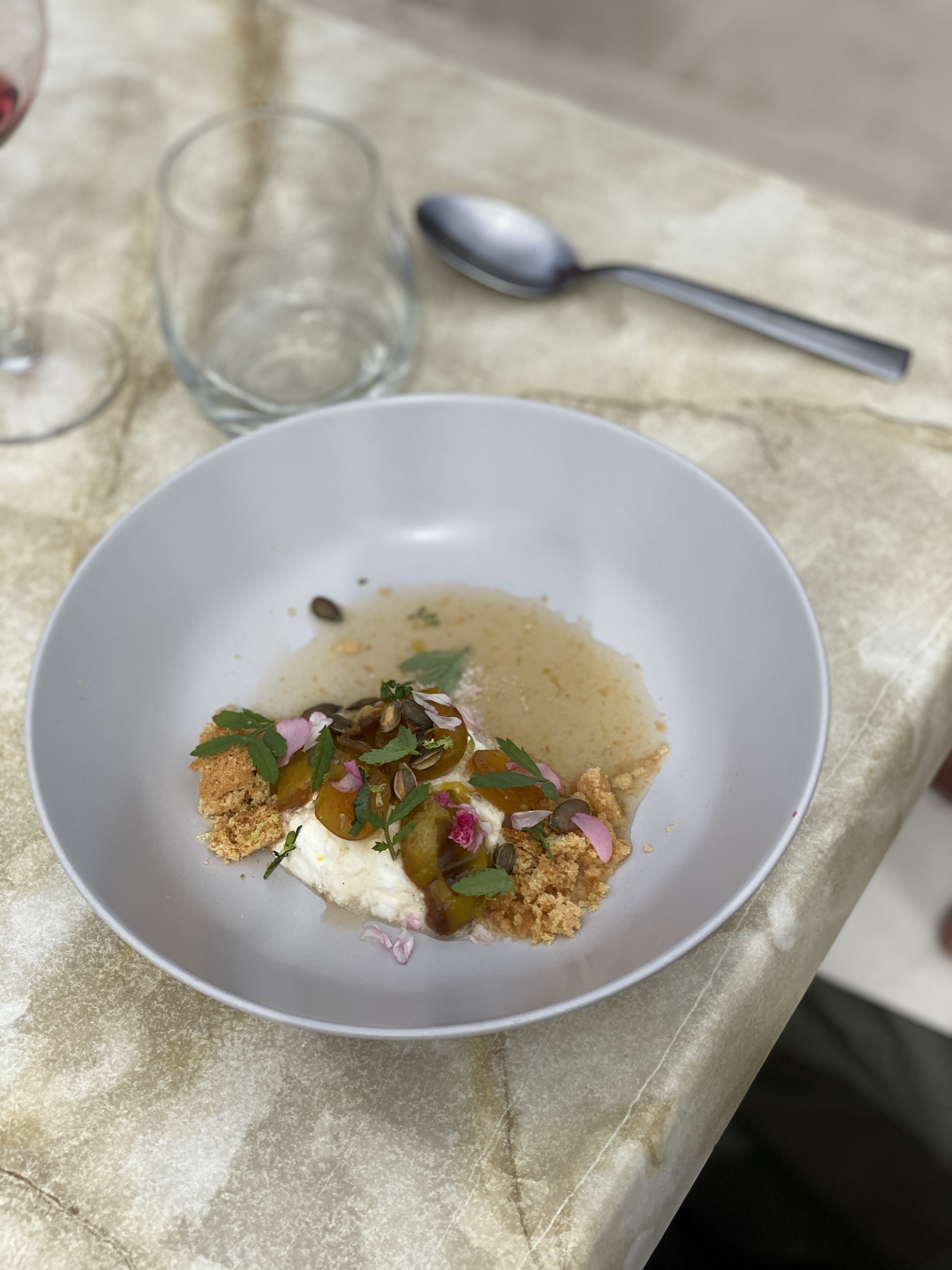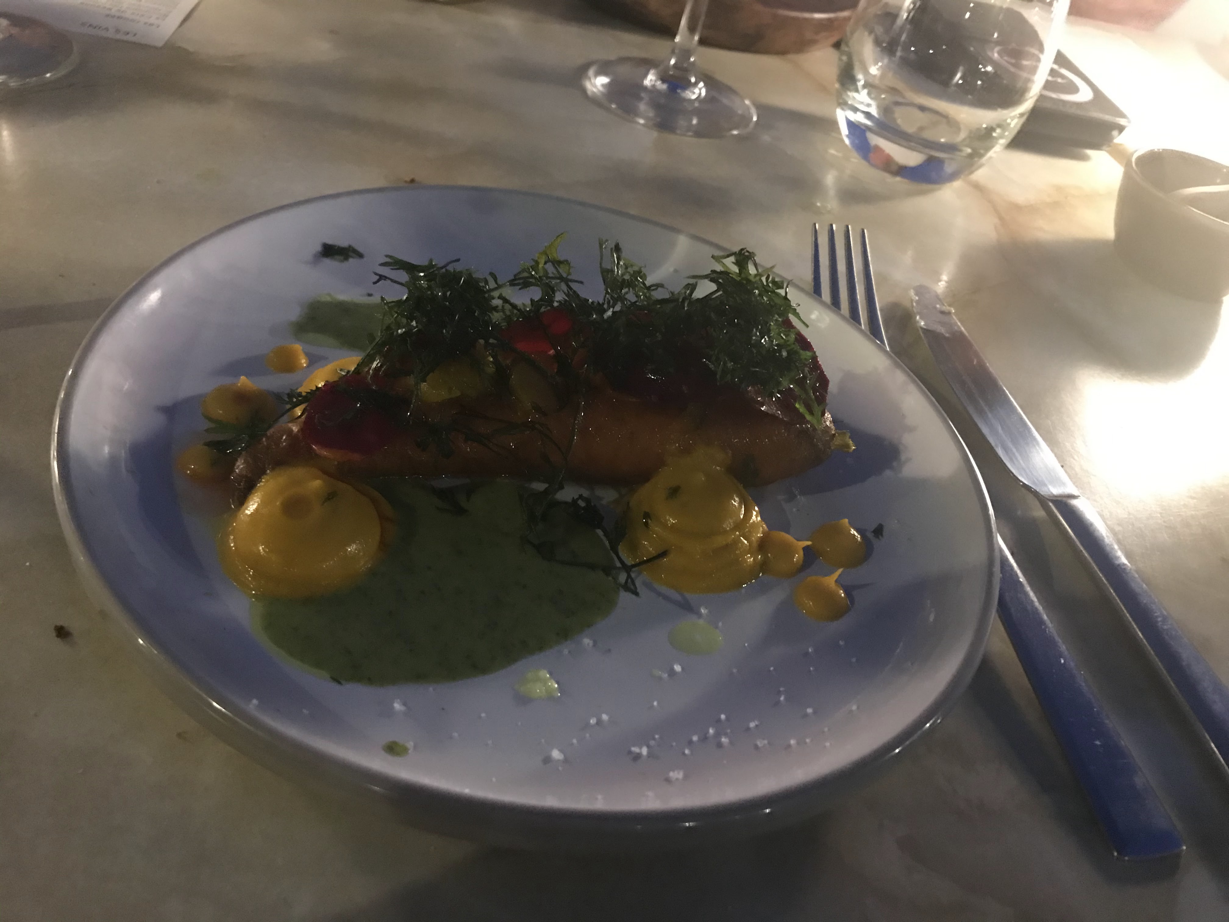 Les plats proposés allaient crescendo. Petites mises en bouche sympa. Les gnocchis savoureux. La truite excellente. Mais là, ça devient intéressant. Je n'ai jamais mangé de pigeon aussi bon. C'est surprenant, fin et délicieux. Et le bouquet final un dessert avec glace au persil et agrumes pétillantes. Déroutant, rafraîchissant, succulent ! Merci