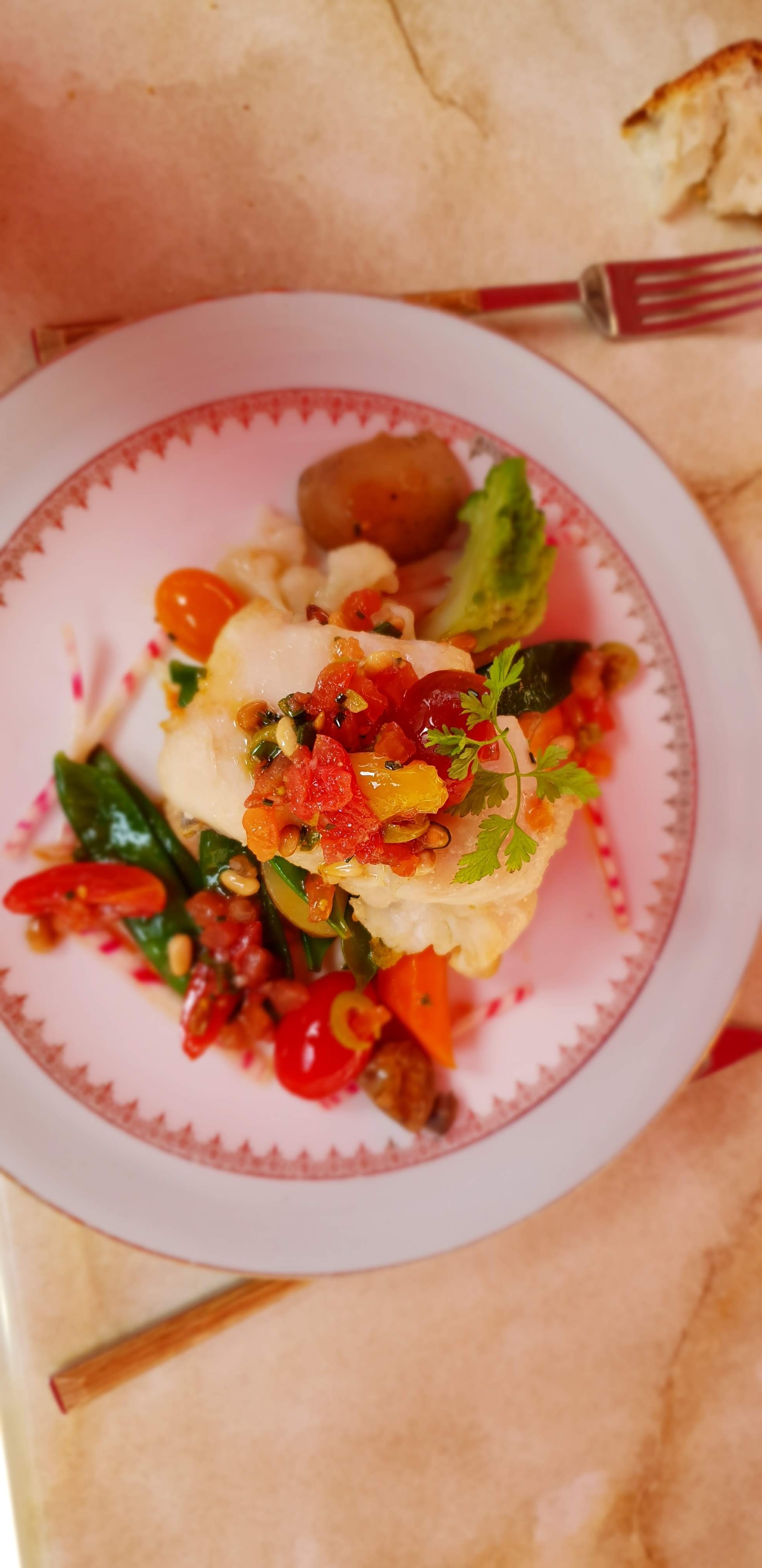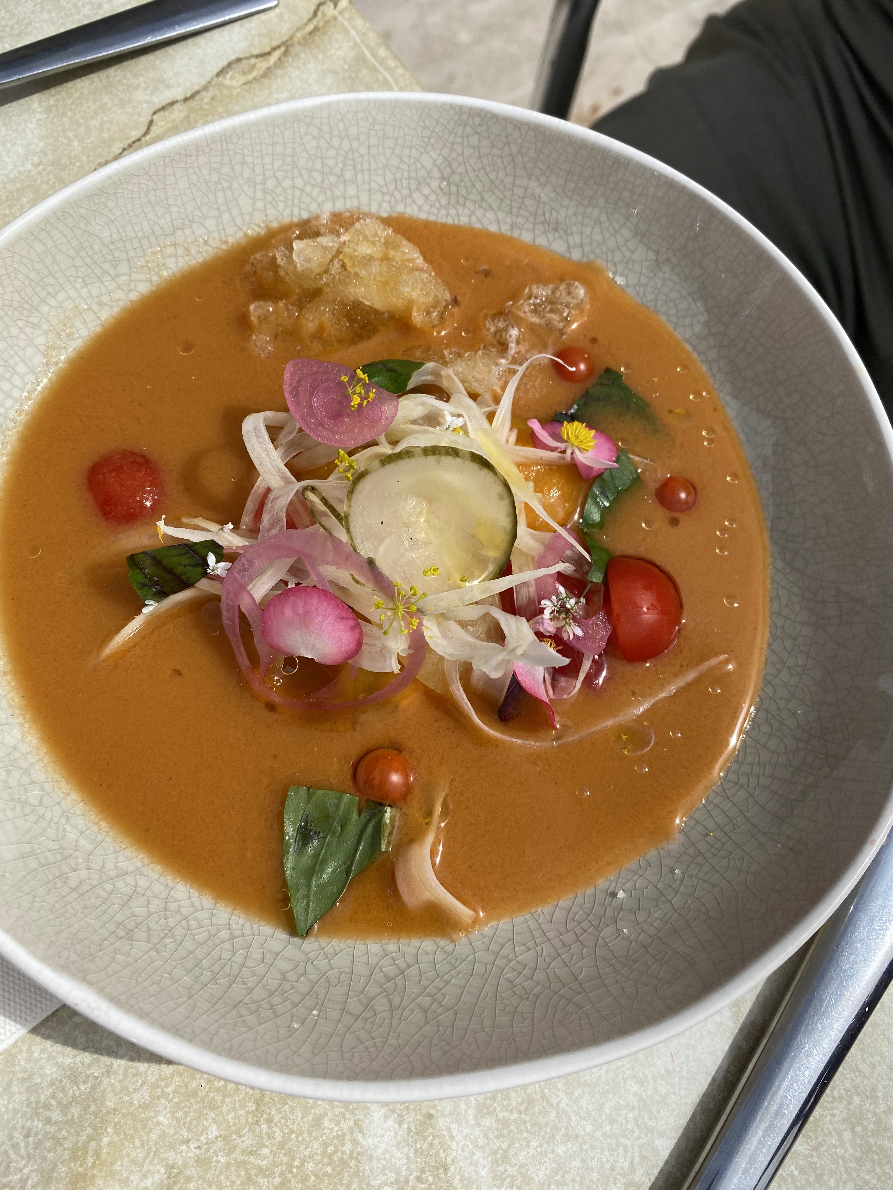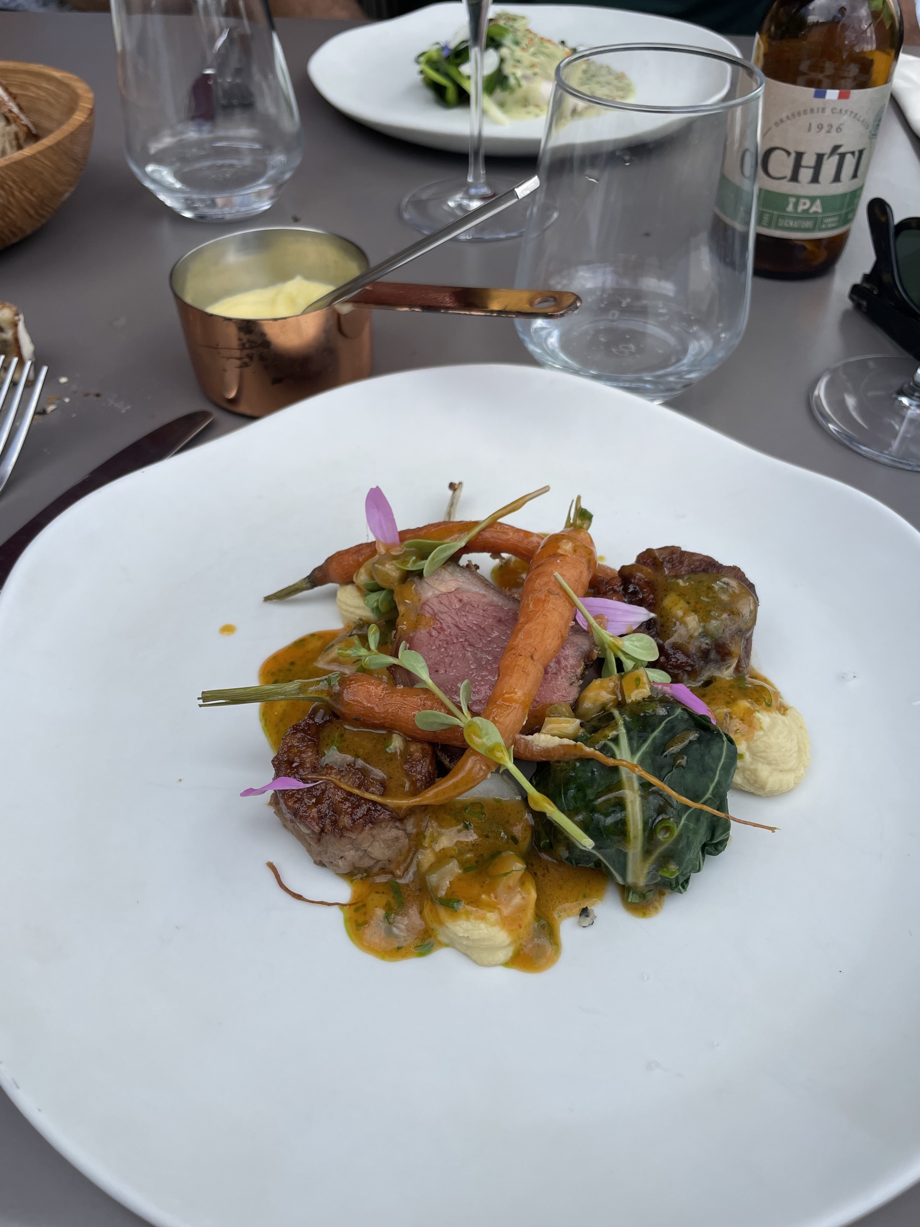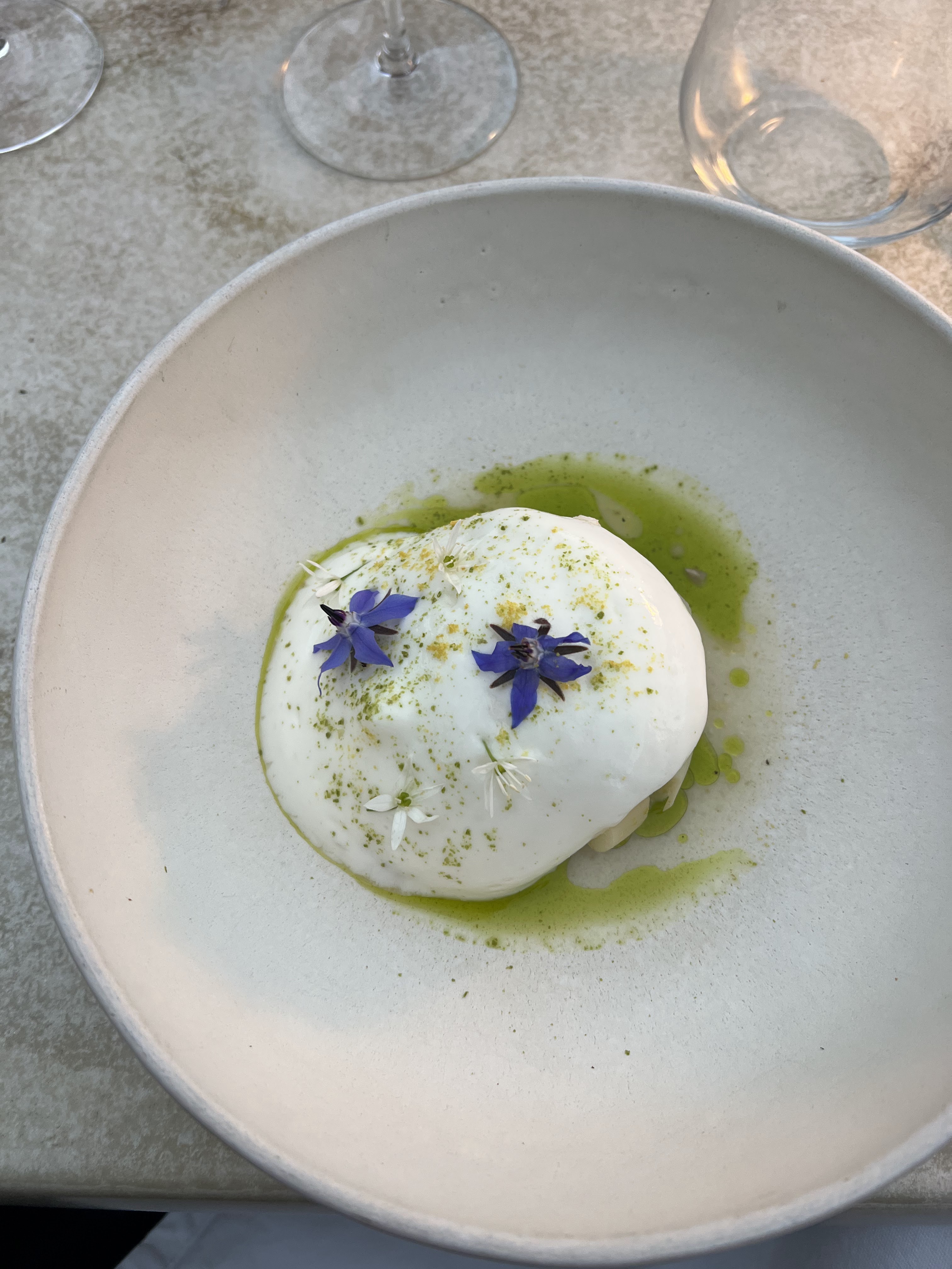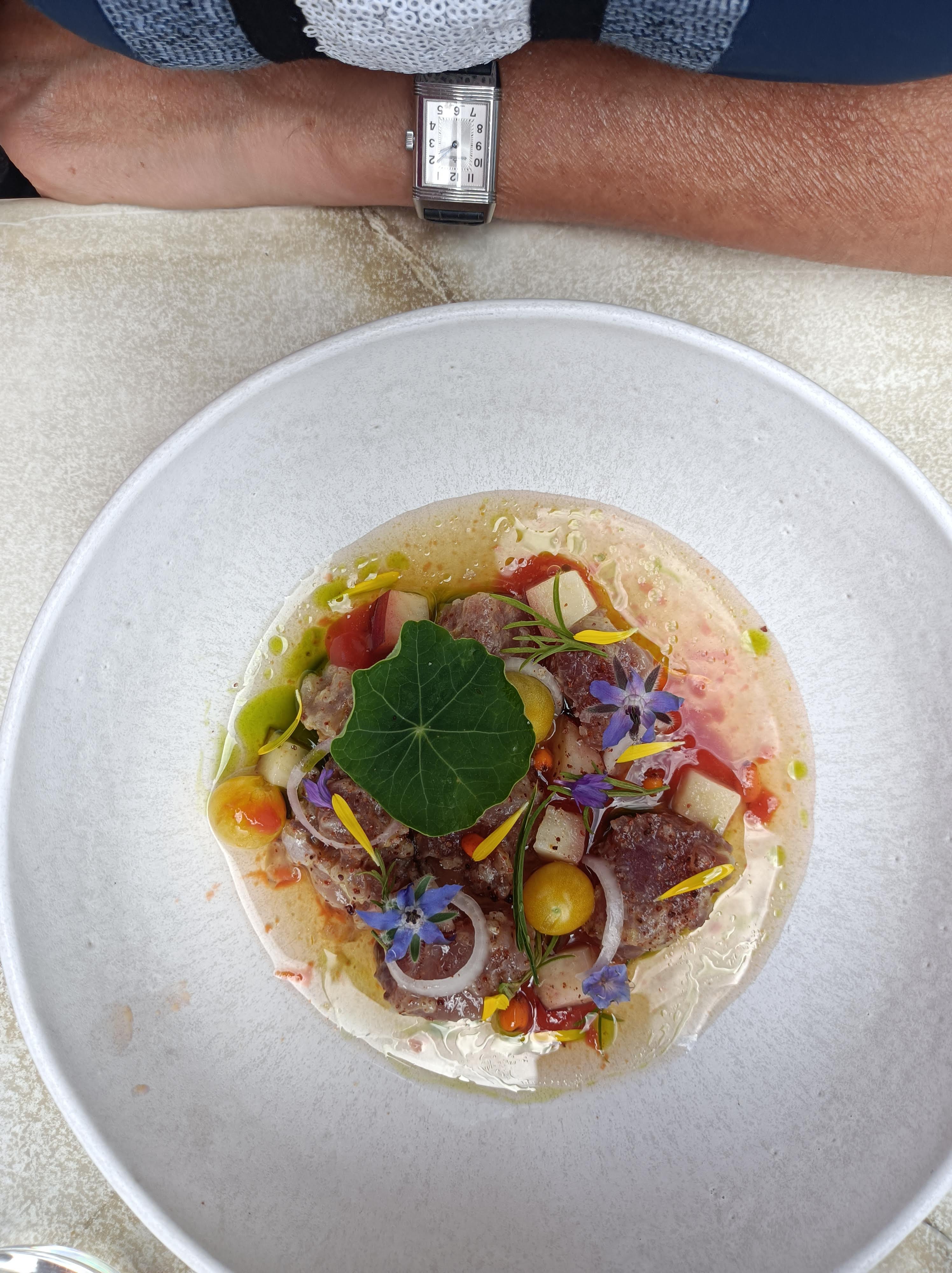 Déjeuner en terrasse malgré le temps mitigé ..... avec une vue exceptionnelle 🤩 Plats délicieux et merveilleusement présentés.