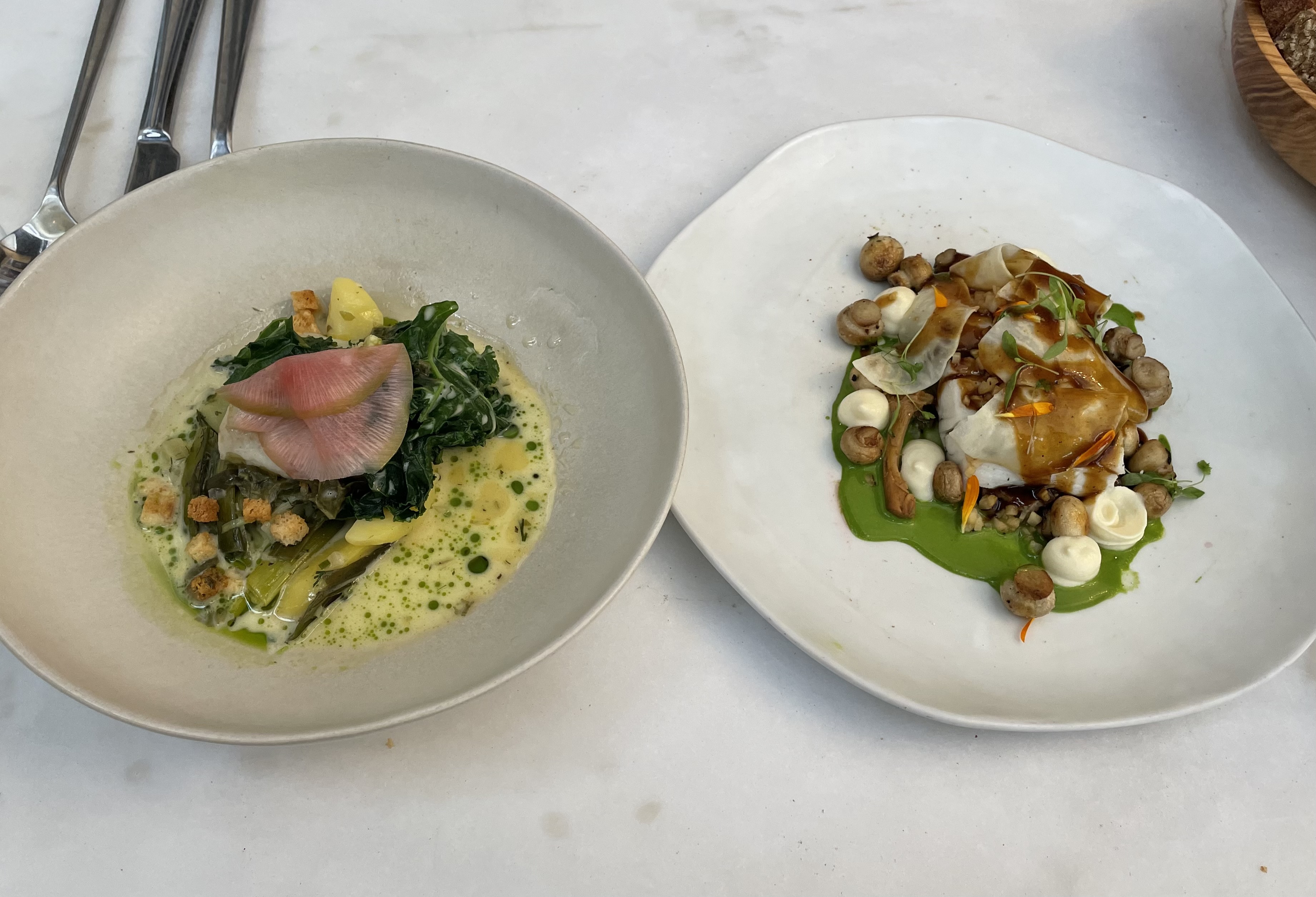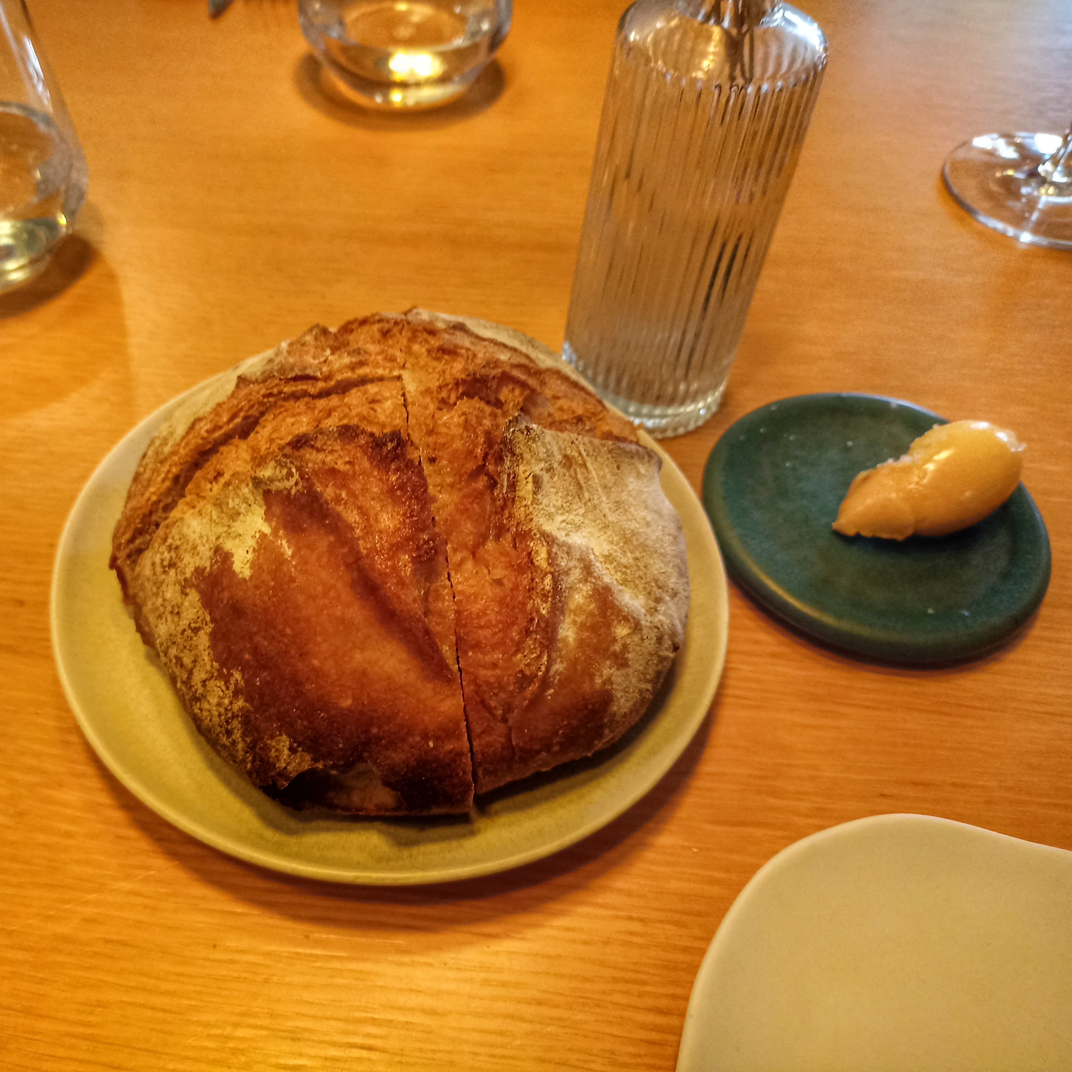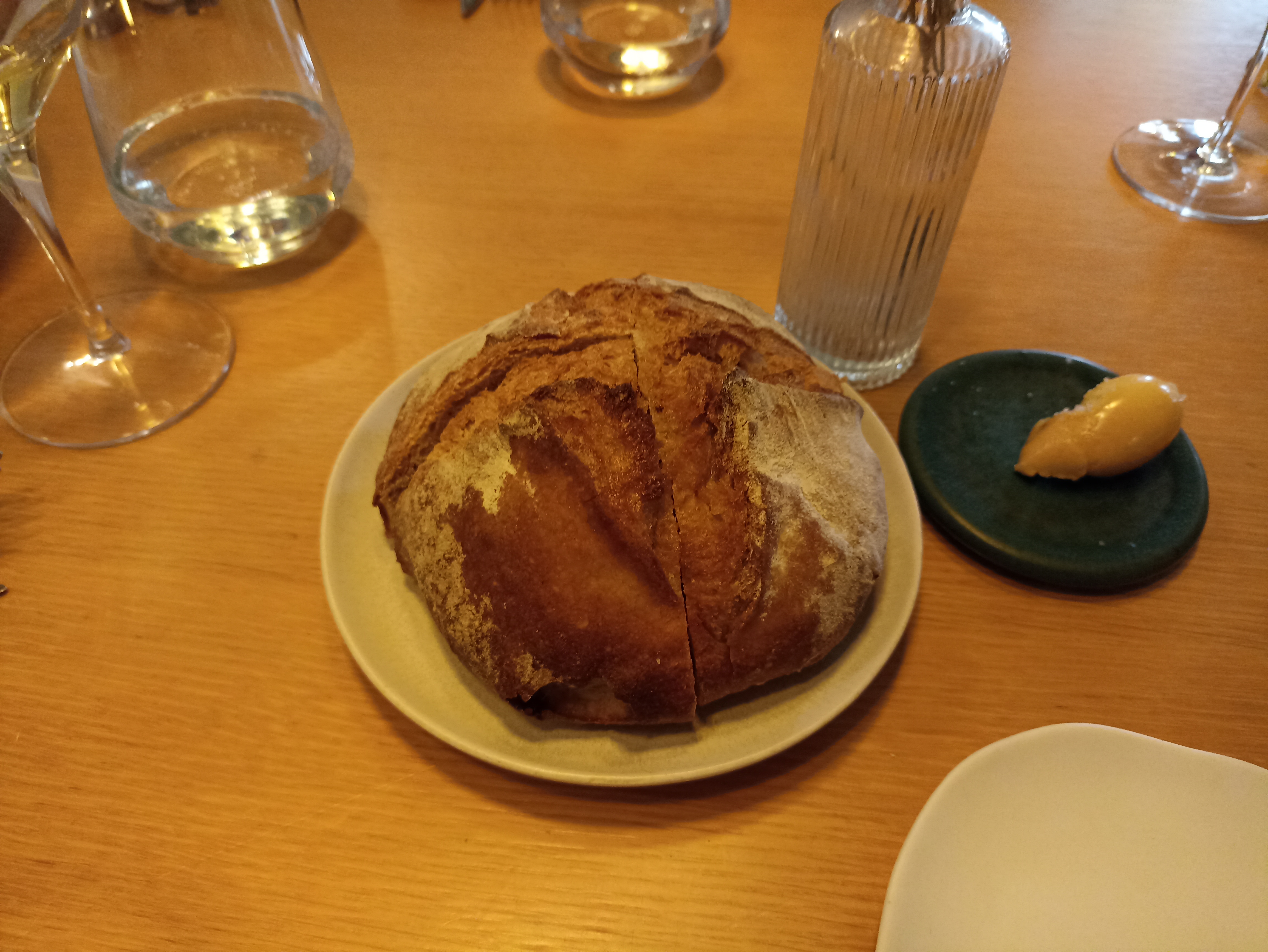 Un accueil agréable, efficace et bien veillant. Une cuisine très fine qui cherche à respecter l'équilibre des saveurs et des textures. Je n'ai pu résister à prendre deux desserts. Je ne suis pas un grand fan de la cuisine basée sur les légumes mais là, j'ai eu une vrai claque et je n'ai pu m'empêcher de tout saucer. Servi sans restriction, ce pain est vivant, au levain, avec une mie riche. Un cadre sympathique avec une vue de toute beauté. Le seul bémol serait la quantité un peu juste pour le riz de veau à la carte mais, impressionnant en termes de qualité et de goût. Vraiment à recommander, j'ai fait un voyage culinaire de premier niveau.