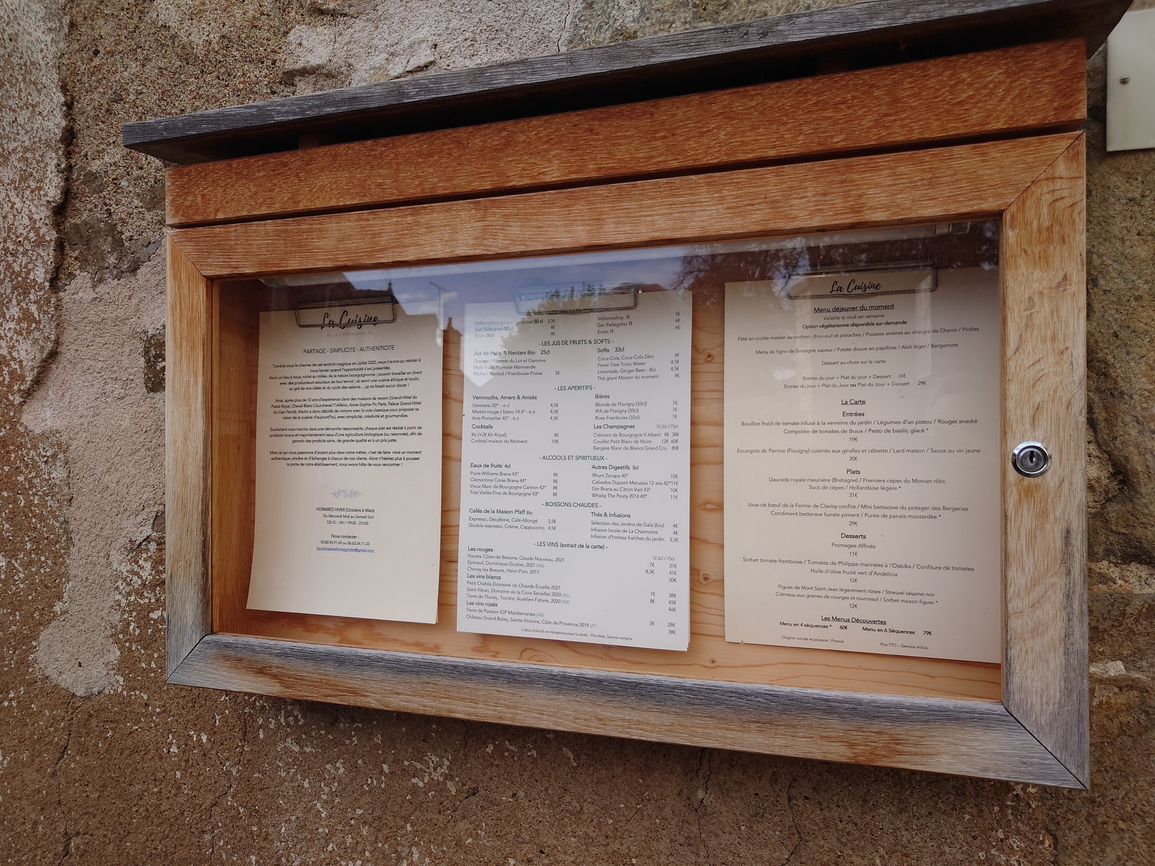 La Cuisine de la Fontaignotte est la reine des circuits courts et bios mais aussi de l'accueil : un petit mot gentil, un sourire, un conseil, une attention constante, etc... Les assiettes parlent d'elles-mêmes 😎 Des mises en bouche à l'entrée (courge, choux de Bruxelles, chèvre à la sauge, etc...) en passant par le plat (paleron de bœuf compoté de la ferme de Clavisy, poire, moutarde, etc...) aux desserts à base de fraise ou de pistache.. Pour accompagner ces délices, une bouteille de la sœur cadette 2020 de la Châtelaine à Vézelay et une autre de Chinon Clos du saut au loup d'Eric Santier. Pas de chance pour nous, le temps était pluvieux avec un ciel couleur Époisses et nous n'avons pas pu profiter de la terrasse avec sa vue imprenable sur le pont Pinard et la vallée de l''Armançon. Si vous passez dans le coin, n'hésitez pas à vous y arrêter 😎 Vous ne le regretterez pas. Le cadre est magnifique. On y trouve aussi une maison d'hôtes riche de 5 chambres cossues au pied de la collégiale. Ils servent une tuerie de petit déjeuner gourmand composé de produits frais, biologiques ou naturels de la région....