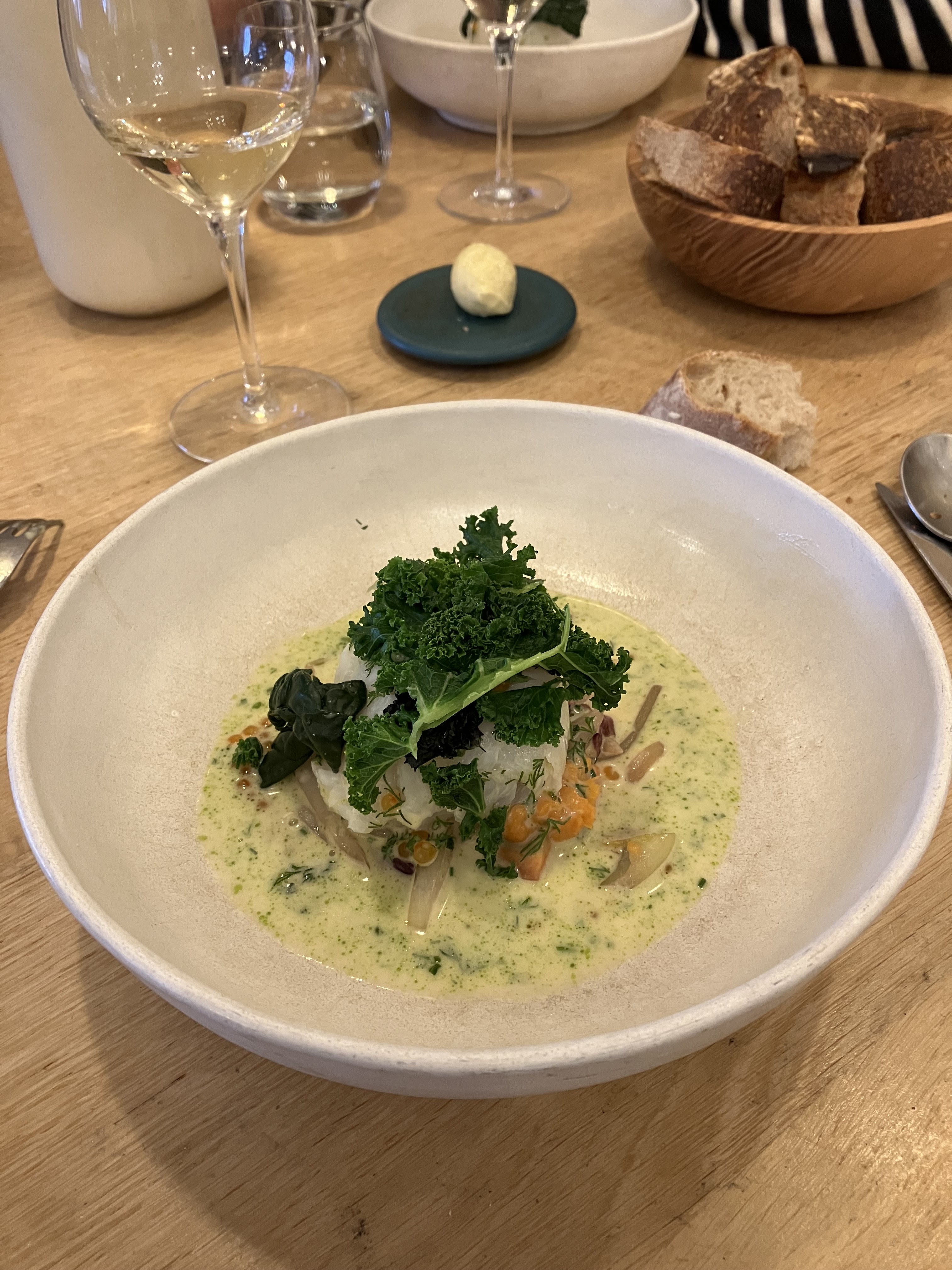 J’ai eu la chance d’y aller deux fois lors de mon séjour en ville. Si je pouvais donner 6 étoiles je le ferais. d’abord un accueil chaleureux par une équipe jeune et souriante. En cuisine , à priori un jeune chef talentueux et respectueux des produits. Ces derniers sont choisi dans les alentours du restaurant. De la recherche et des saveurs dans les plats. Et une belle carte des vins. N’hésitez pas à y faire un détour ….