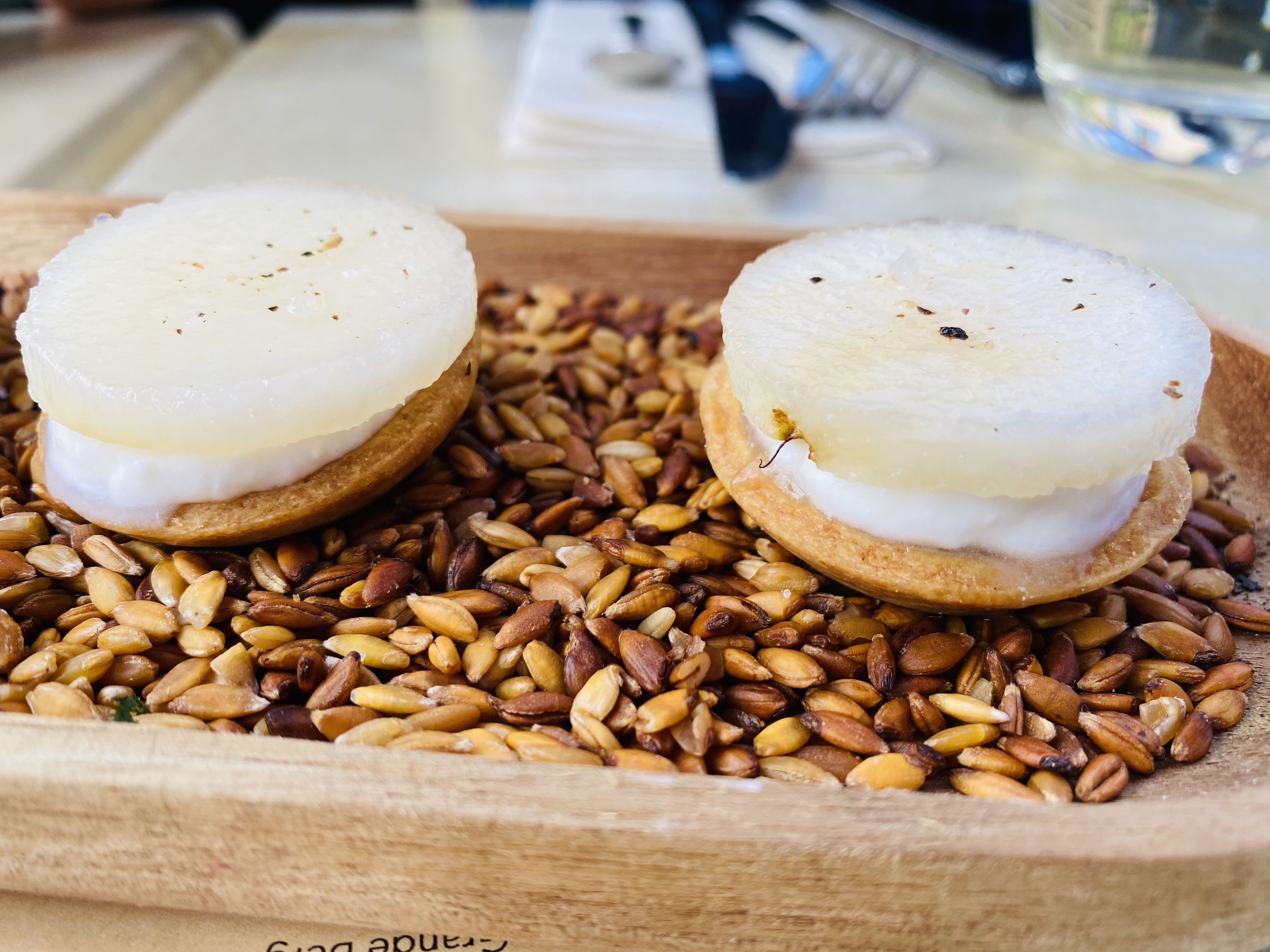 Une cuisine autour de saveurs végétales multiples douce amer et harmonieuses qui met en valeur poissons crustacés et viandes dans toutes leurs qualités et textures. Un grain de folie dans les mises en bouche croustillantes fondantes et moelleuses et un pain riche mais équilibré. Le tout arrosé d’un Vezelay bio. Une vraie ballade gustative parfaite avec son fondant chocolat praliné arrosé d’un sirop de café tiède pour final.