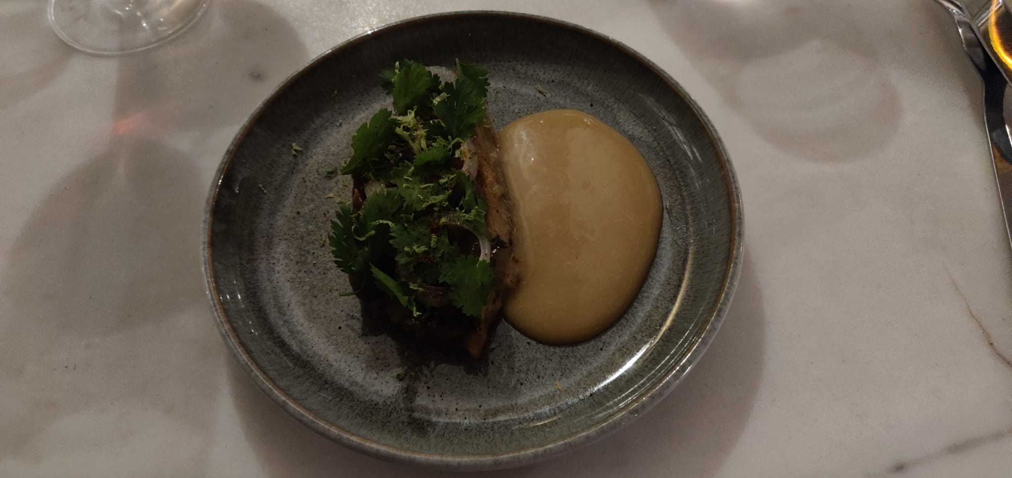 Cuisine innovante et audacieuse dans les mariages de saveurs. Assiettes qui régalent tant les papilles que les yeux. Très jolie cadre avec une équipe courageuse et sympathique. Excellent rapport qualité /prix, je recommande donc cette bonne adresse.