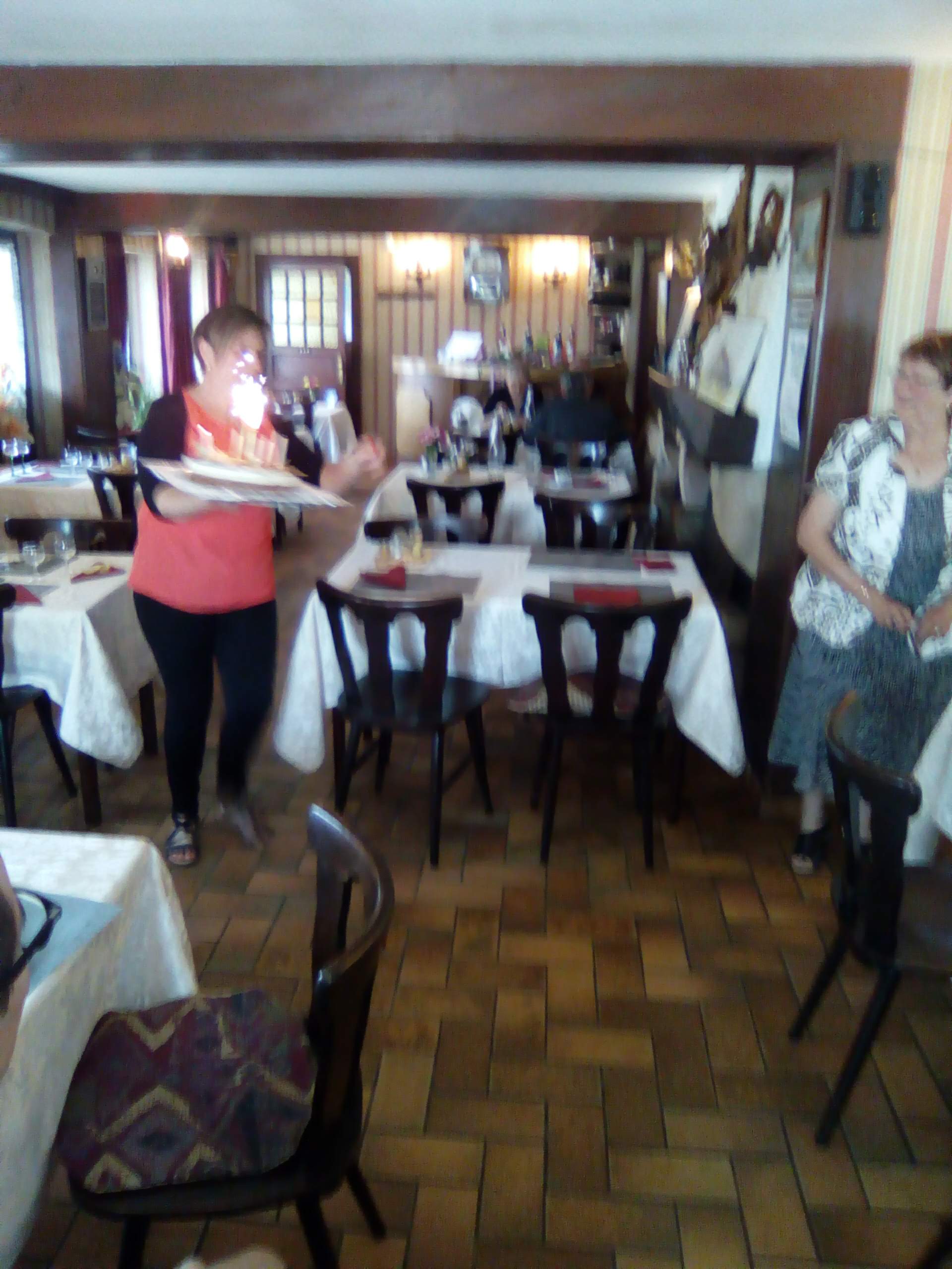 J'ai fait mes soixante ans.nous étions 25 personnes.Franchement.Tout était bien.Le service,le menu que j'avais choisi,les boissons.La patronne aux petits soins pour nous.On avait le temps de manger.Tout était parfait.Les enfants étaient placés sur une table tranquille derrière nous.la patronne c est bien occupé d'eux pour le repas.on ne les a pas entendu.Franchement j'ai été ravie de ma journée.tout était parfait.Merci pour tout.