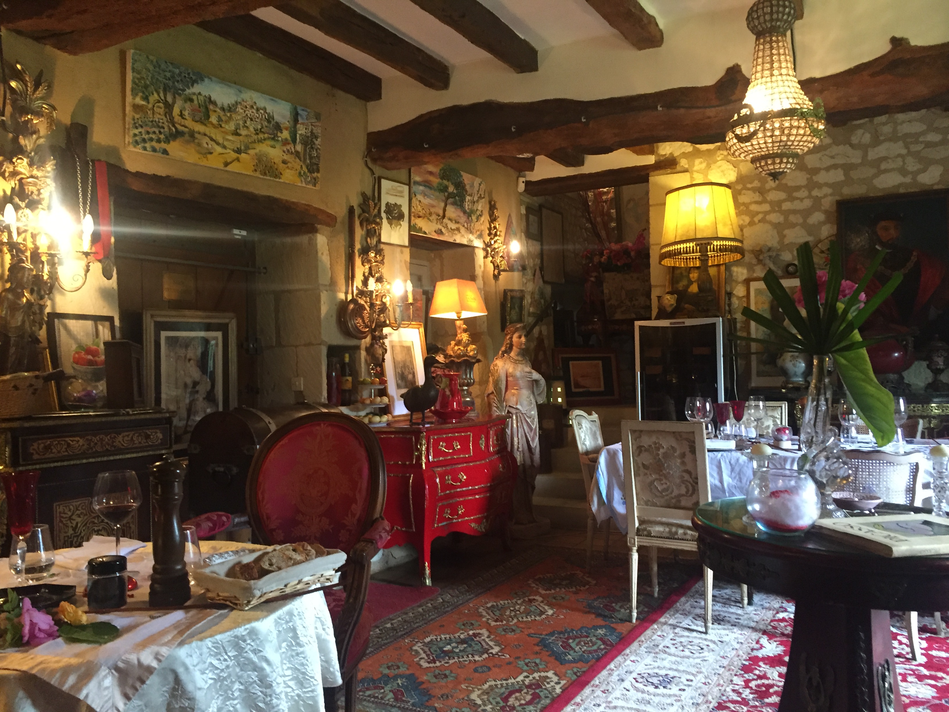 Insolite, atypique, étonnant, dépaysant, irréel…les adjectifs manquent pour qualifier cette maison ! Car il faut bien parler de maison : aucune publicité tapageuse, ni aucune enseigne aguicheuse pour vous attirer dans ce logis à l'arrière du château ; vous êtes alors chaleureusement accueilli par le maître des lieux qui vous fait entrer dans son univers après avoir traversé la cuisine ; et là, vous plongez dans son cadre intime d' un autre monde, transporté dans un autre siècle par l'ambiance sonore, votre table dressée au milieu d'un décor indescriptible en raison de tout ce qui y a été rassemblé par votre hôte au long de son parcours, autant sur les murs qu'autour de vous, à tel point que vous avez plutôt l'impression de festoyer au milieu d'un musée… Vos papilles gustatives ne seront pas en reste : après les amuse-bouches variés et copieux, vous dégusterez les mets simples mais excellents et joliment présentés, de l'entrée au dessert, préparés par ce grand chef, sans oublier de déguster sa célèbre gallimafrée, une de ses spécialités ! Et puis, à lui seul, Michel Belcour mérite votre visite : à la fois maître d'hôtel, chef-cuisinier, serveur et conteur, il n'a qu'une ambition : vous faire plaisir ! Alors, allez-y vite, car malgré son empressement et son allure alerte, le personnage accumule les années, et il ne faudrait pas que lui vienne l'idée de prendre une retraite pourtant bien méritée ! N.B. : indispensable de réserver, car seule une dizaine de convives peut en profiter…