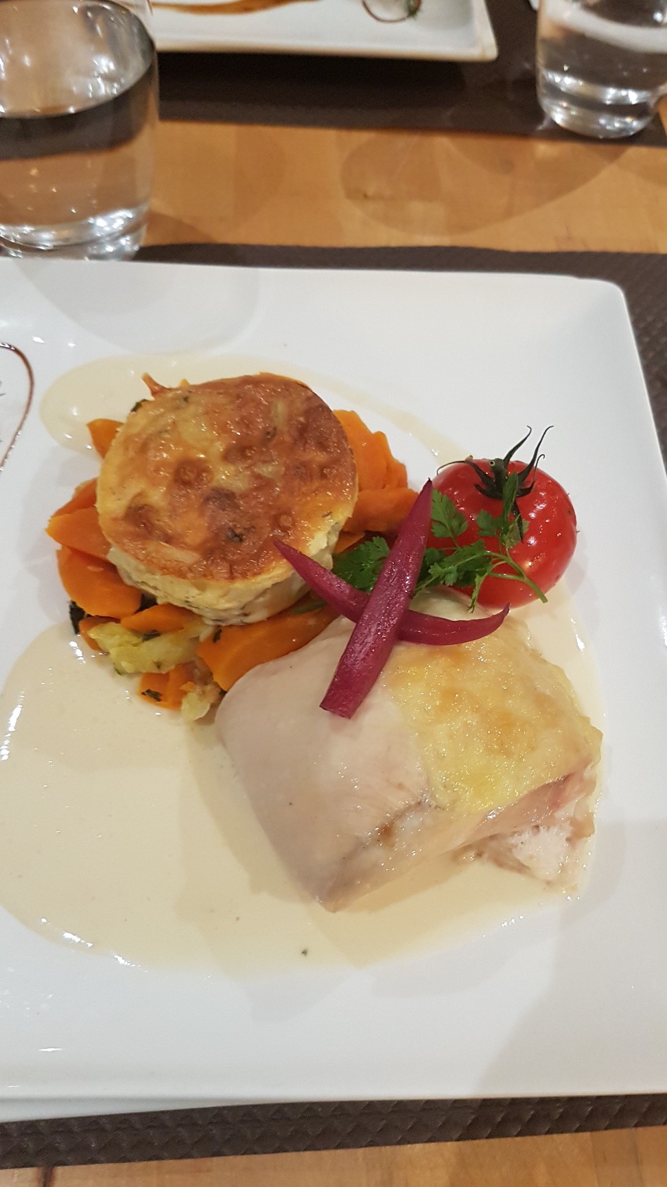 Cadre sympathique. Service sympa. Entrée bonne mais suprême de poulet pas cuit, élastique, pommes de terre sans goût à l'eau avec une sauce très légère coupée à l'eau et du râpé de jambon , plat médiocre et sans saveur. Déçue au final. C'est dommage