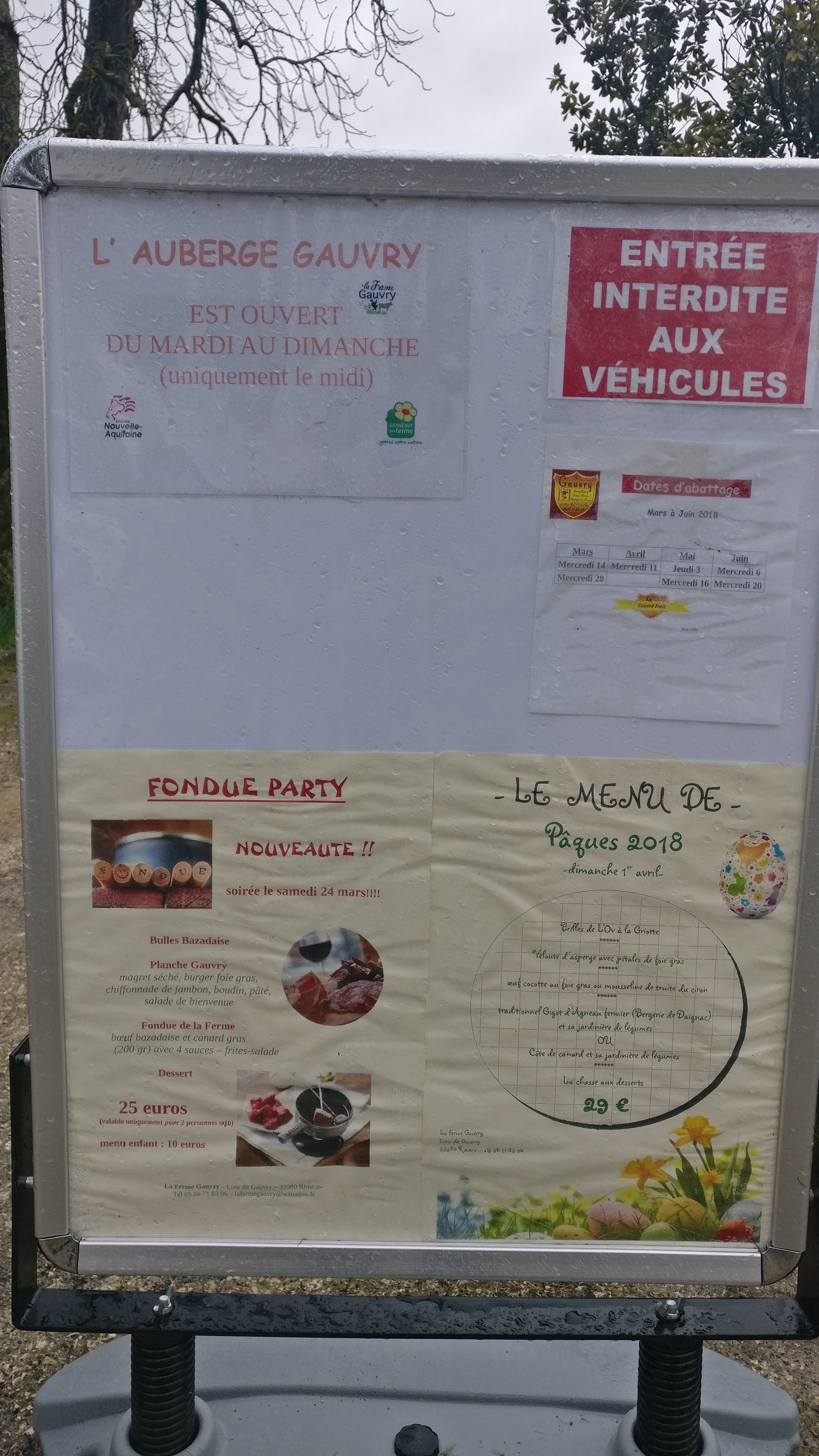 Excellentissime ! Accueil chaleureux, Repas copieux ... et goûteux. Au menu 1 repas enfant et 4 formules correspondants à notre faim en plus d’une généreuse carte. La spécialité de la ferme est mise à l’honneur à travers différents types de foie gras. De 10€ à 30€ le menu. Mon menu « Menu Gauvry » à 24,90€