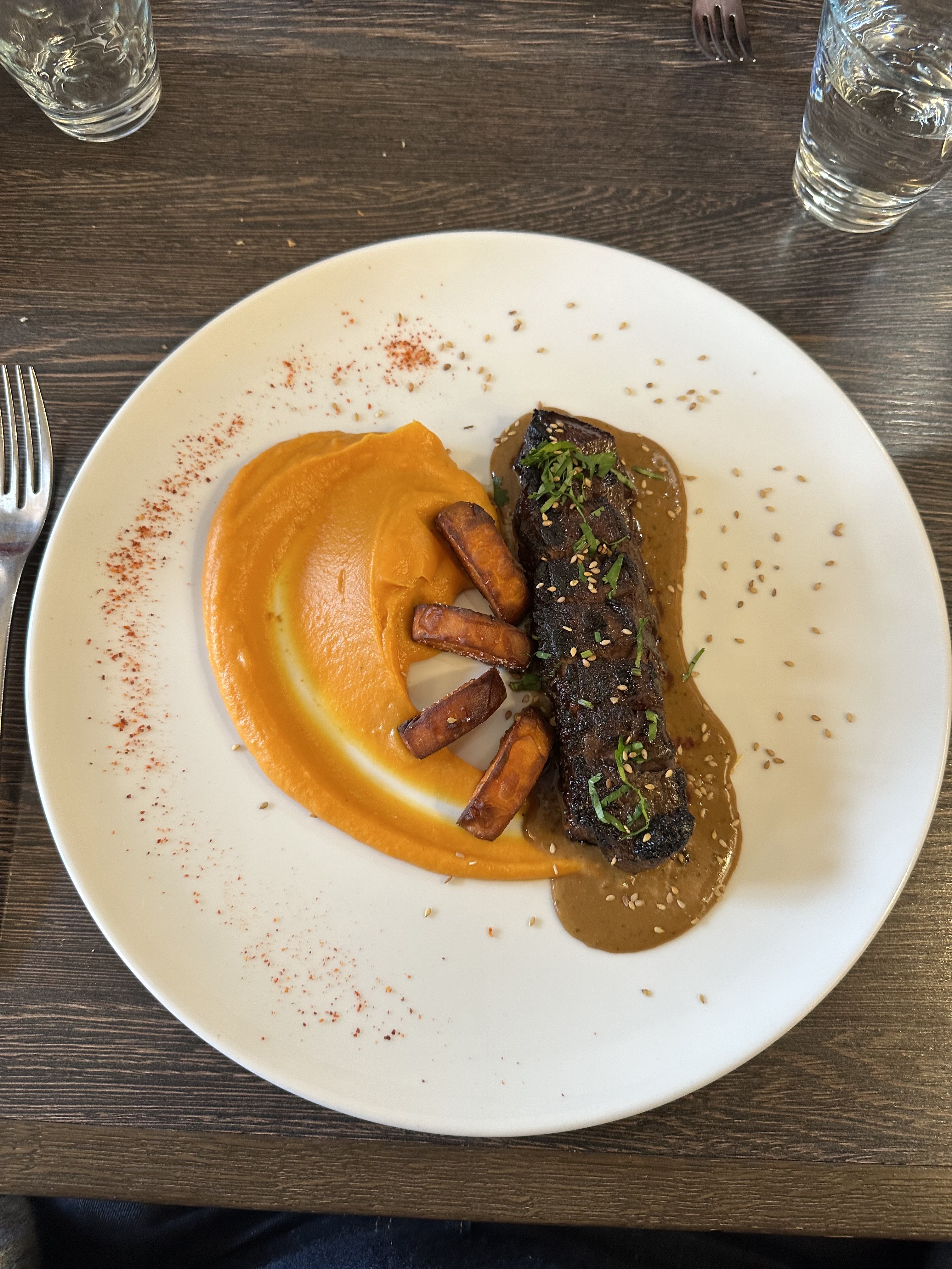 Ce restaurant vaut vraiment le détour. Le personnel est accueillant, serviable et adorable. Le menu est juste délicieux avec de vrais saveurs et des produits frais de la région. Merci beaucoup. Moment très agréable. Je le recommande vivement++++++