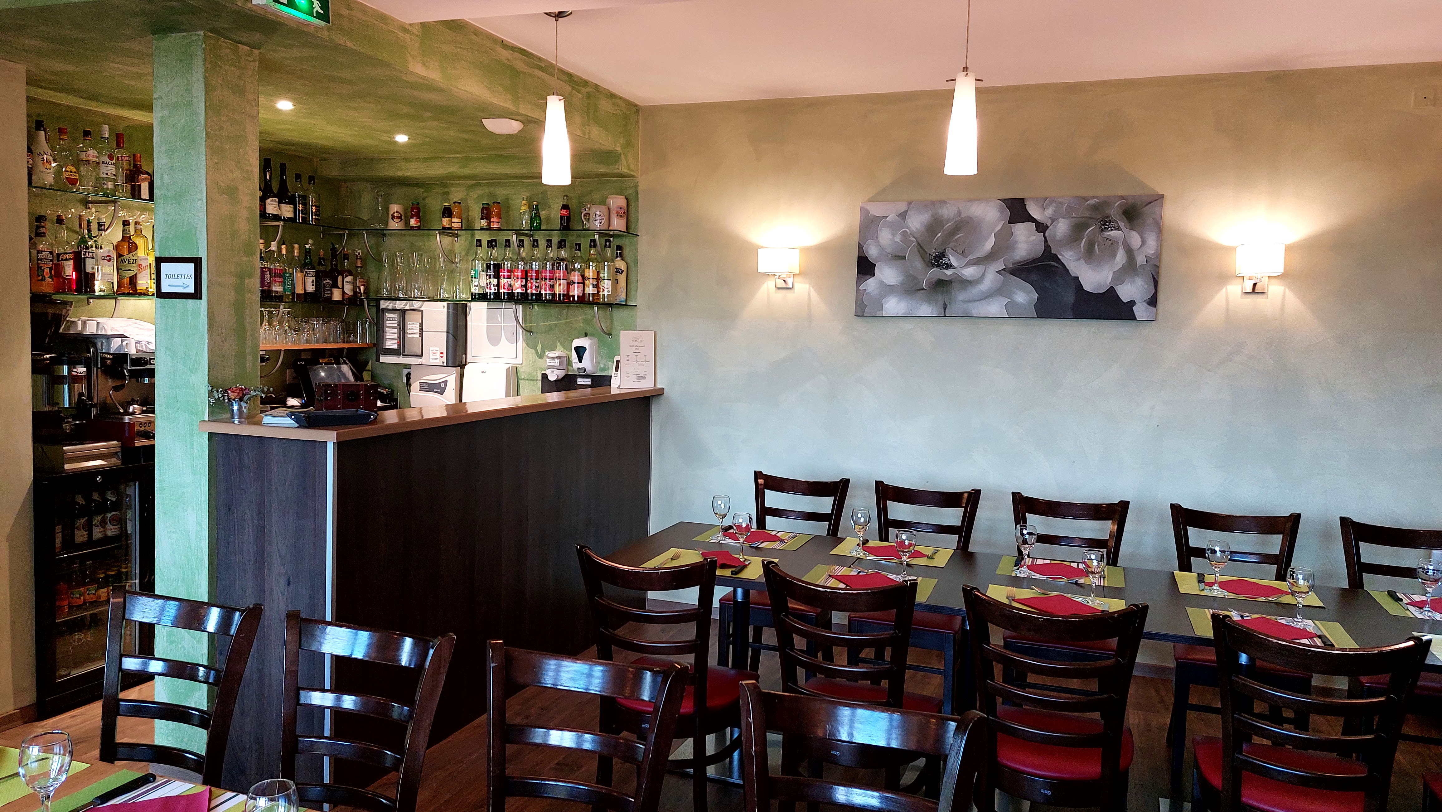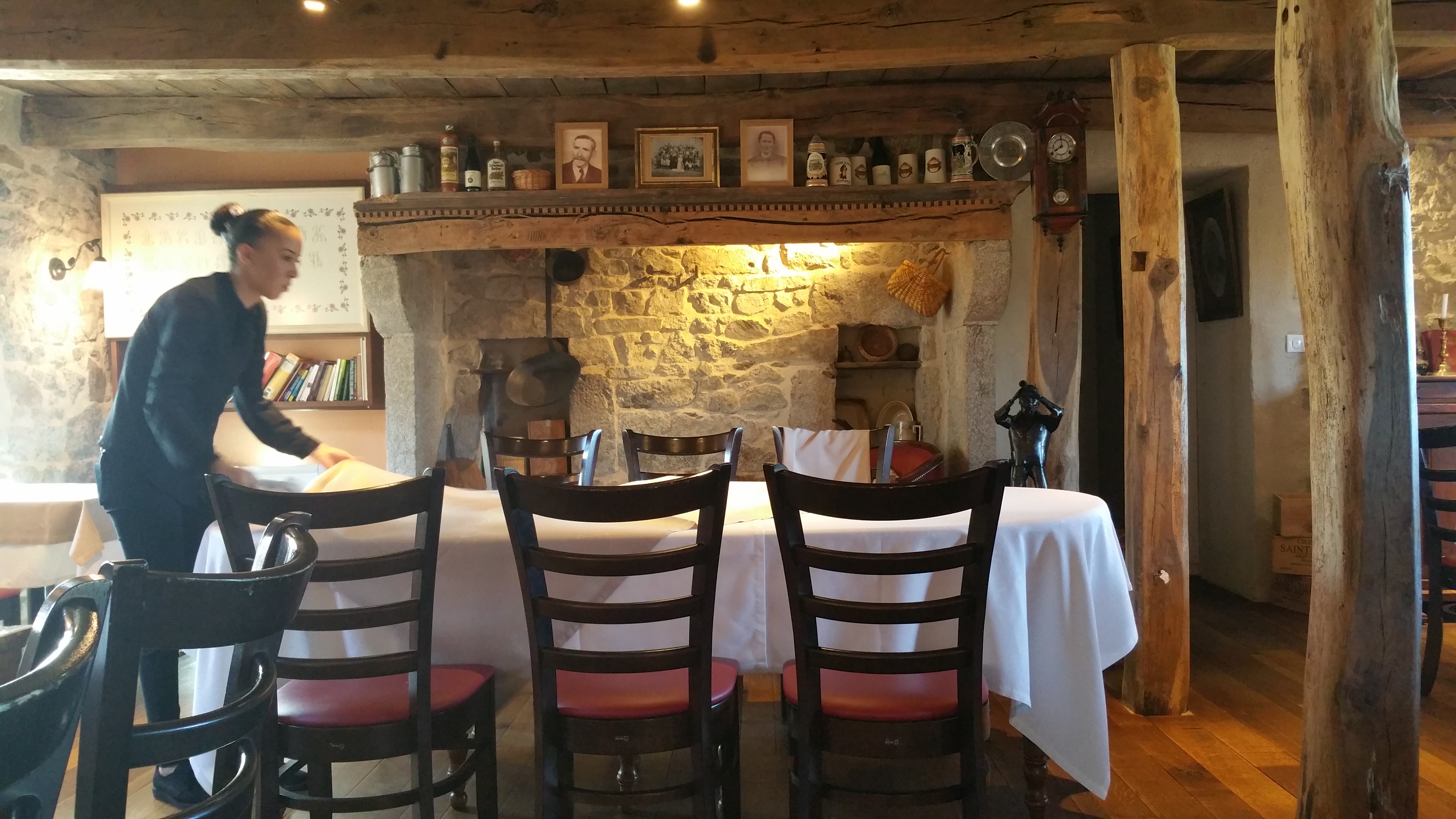 Bonjour, Très joli lieu, rénové avec goût, les salles sont justes magnifiques. Le Monsieur présent etait très gentil, plein d'humour, à l'écoute du client. Très très dommage que la serveuse soit si peu professionnelle (aucuns sourires, elle ne fait aucuns efforts pour être agréable .On a l'impression qu'on l'embête). J'espère que c'était juste un mauvais jour. Autre point faible, il ne faisait pas chaud, chauffage inexistant ?? Ou très bas et l les gens sont indisciplinés (je rentre et je sors sans arrêt. Stop les fumeurs, pensez aux autres!!!!) Nous y retournez car le cuisinier fait de la bonne cuisine. Merci pour le menu végétarien. Bonne continuation.