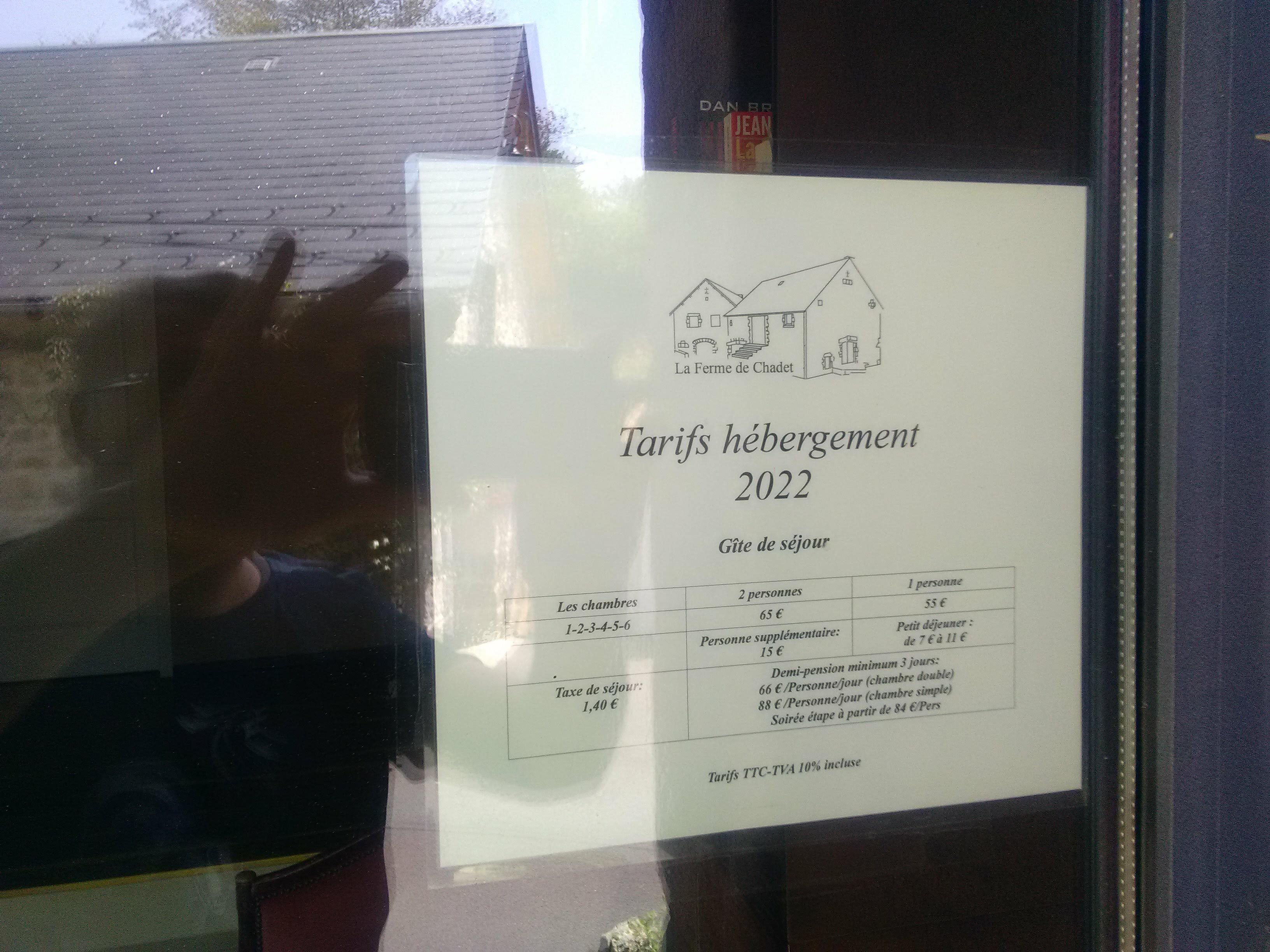 Un séjour parfait à la ferme de Chadet. Accueil professionnel, discret et souriant. Apéritif servi sur la terrasse à notre arrivée. La chambre est confortable avec une belle vue sur la campagne alentour, tout est neuf et très propre. Repas excellent avec un bon choix de plats, entrées et desserts. Petit déjeuner généreux. Je recommande à 100% !!