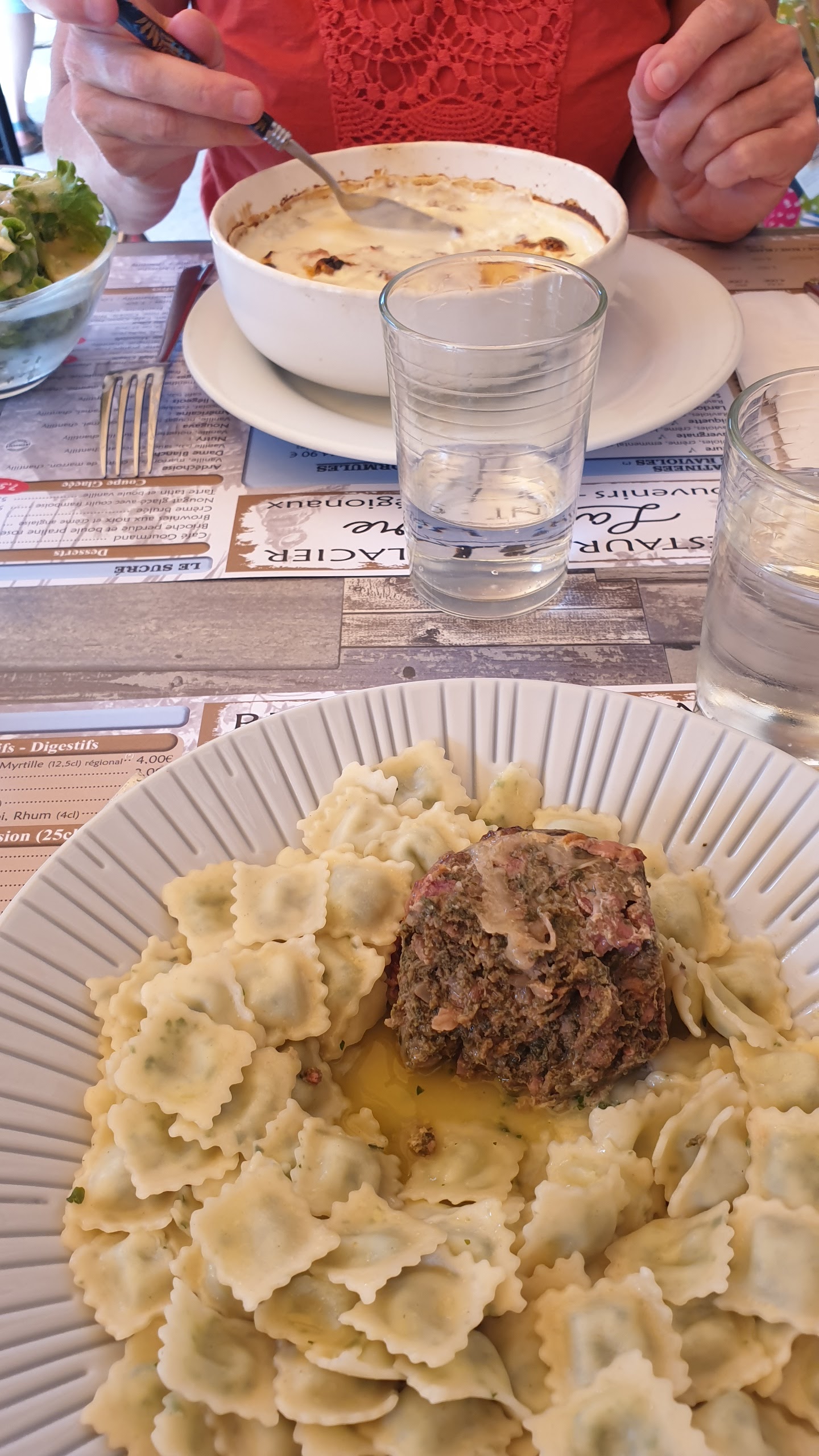 Une découverte d'un plat local la caillette, servit avec les raviolis, un plat délicieux et abordable. Merci pour ce moment