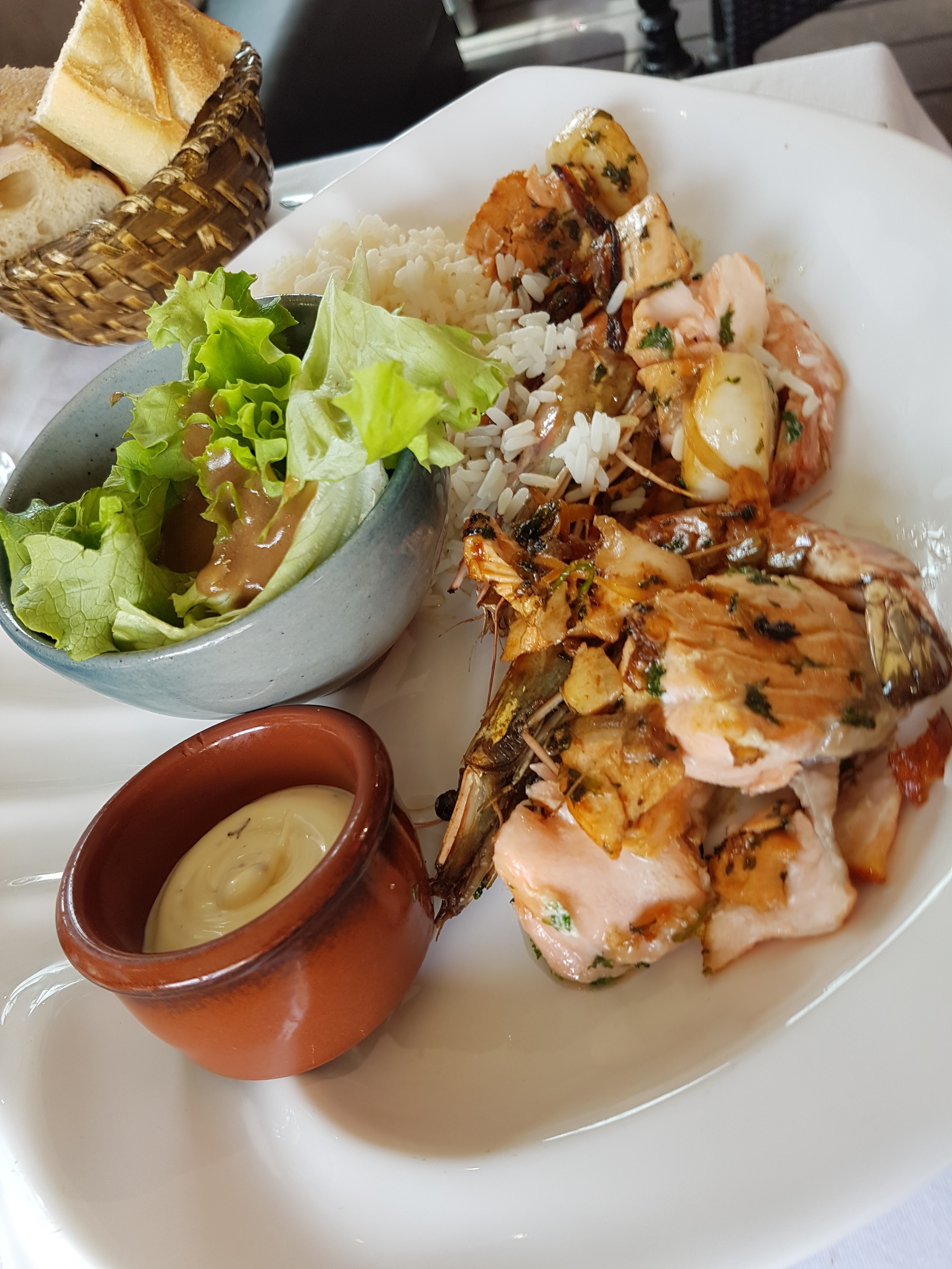 la classe!!!!! une terrasse au top bien au chaud par ce temps une bonne ambiance un repas du fait maison comme on aime j'ai mange une brochette de gambas très très bien reçu