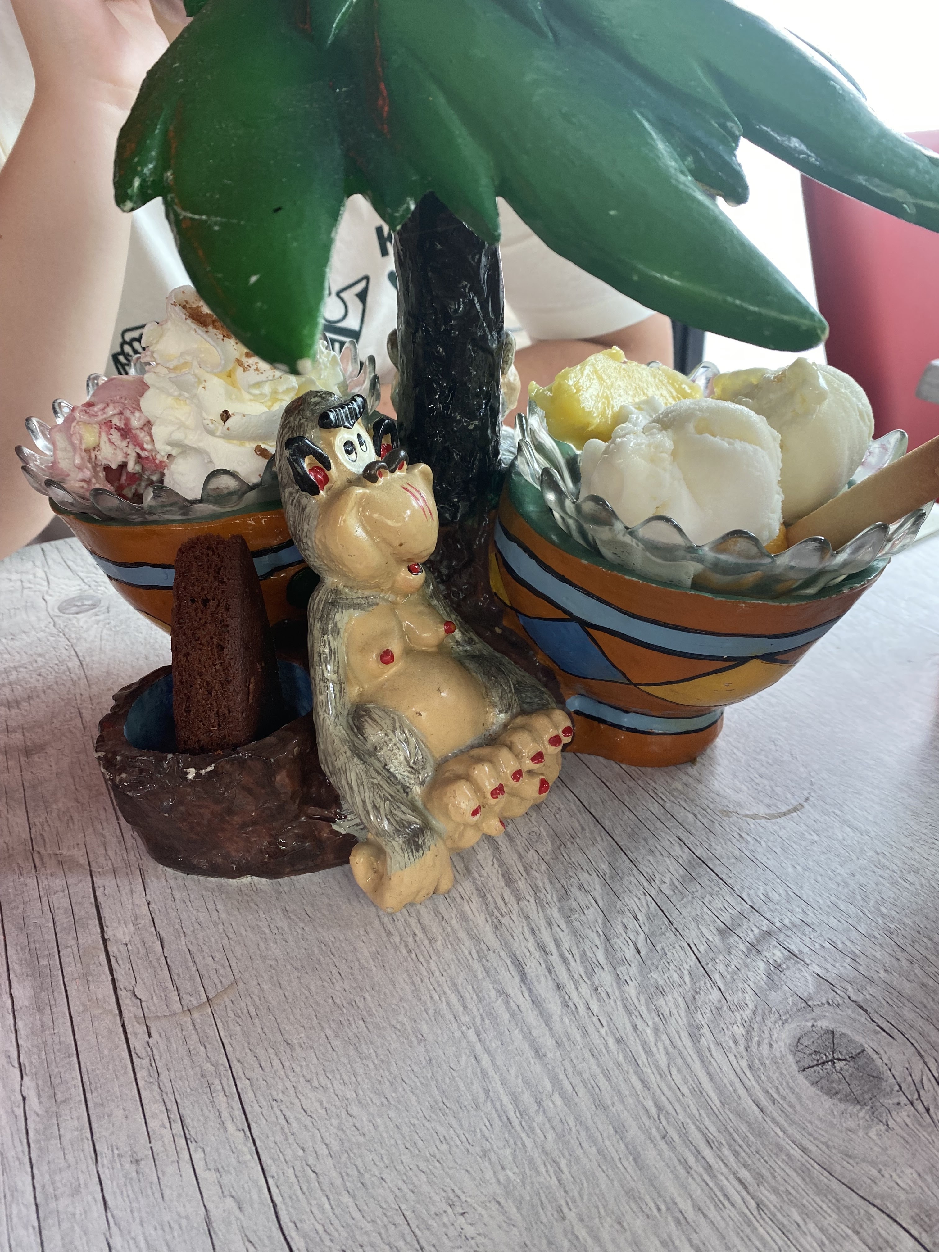 Posté le 18/08/2022 à 15:23" Je viens d'appeler pour un verre et une glace pour les enfants. Bel endroit avec une hôtesse très gentille et patiente qui supporte notre terrible franglais. Notre coupe glacée était présentée dans le plat de service le plus étonnant que nous ayons jamais vu, avec un gâteau et des fruits frais. Bonne bière aussi. "