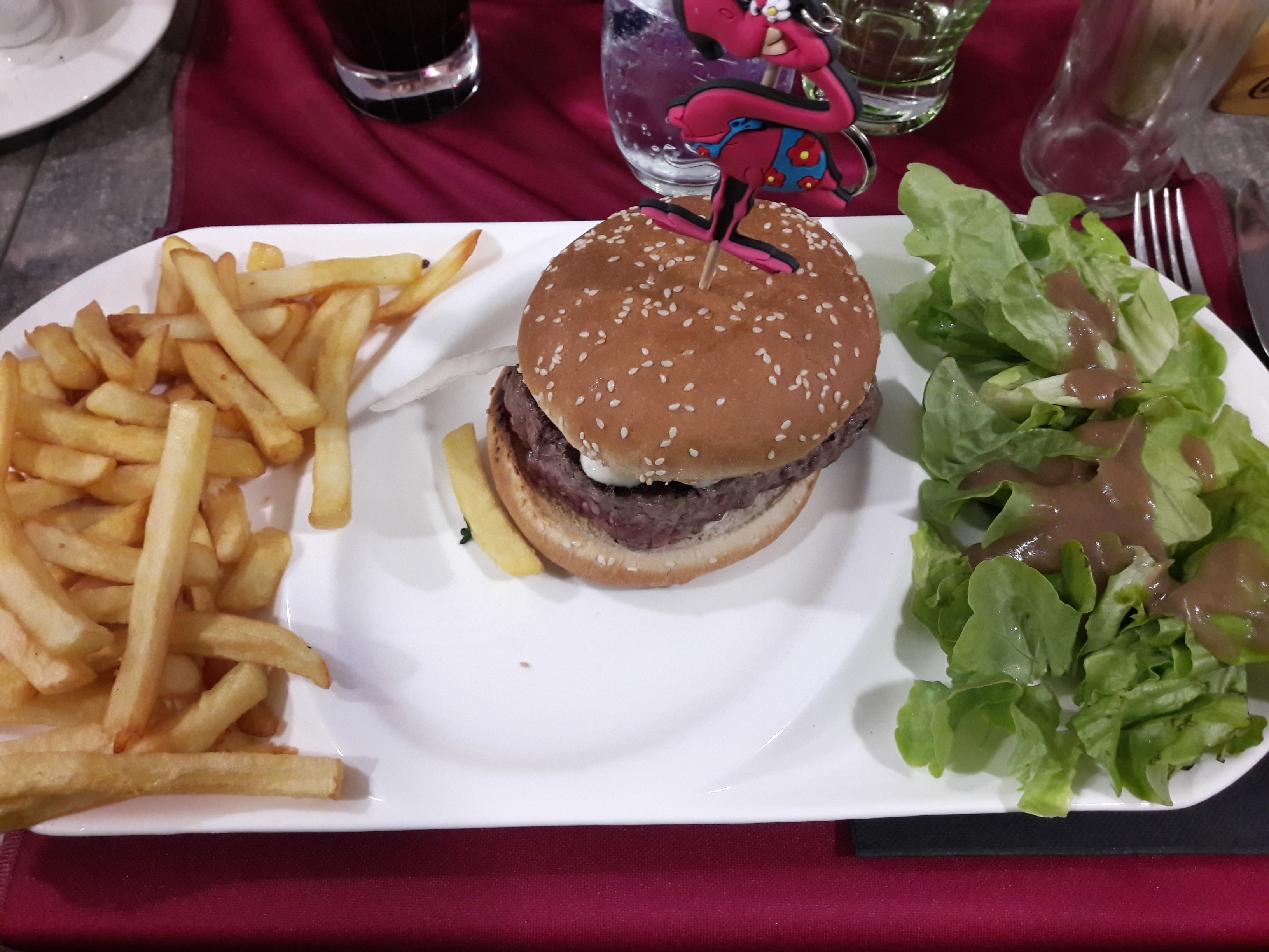 Posté le 19/07/2024 à 16:26" Après dix heures de route nous avons décidé d'aller dans ce restaurant. Les critiques étaient plutôt positives. J'ai commandé le magret de canard, mes enfants ont pris un menu enfant. Il nous a fallu un certain temps avant de recevoir notre nourriture. Mais à notre grande surprise, les enfants ici ne reçoivent pas un hamburger entier mais un morceau cassé d'un hamburger entier, frit à sec puis avec une feuille de laitue déchirée, une trace rouge de ce qui, je pense, devrait représenter la sauce, puis sur un très grand petit pain sec. Bien sûr, nous avons demandé où les 2/3 de la viande étaient coincés. Mais c’est ce qu’on nous a dit que les enfants recevaient. Apparemment, les enfants reçoivent également des frites différentes, plus épaisses, ce qui ne devrait pas poser de problème. Mais alors il faut bien les cuire au lieu de les moitié cuits. Vient ensuite mon magret de canard : un énorme morceau avec des oignons mi-cuits et quand on le met de côté pour chercher son magret de canard, on a l'impression d'avoir un morceau de bois dur dans son assiette. Et ça avait aussi ce goût : frit très sec, dur et sans goût. Très décevant, je viens d'entrer en France et j'espère que c'est le seul restaurant de toute la France où ils ne peuvent pas préparer du magret de canard. Dommage que je n'ai pas pu prendre de photo du menu enfant. Au moins, ils auraient pu viser le milieu lorsqu’ils ont essayé de casser le hamburger en deux. "