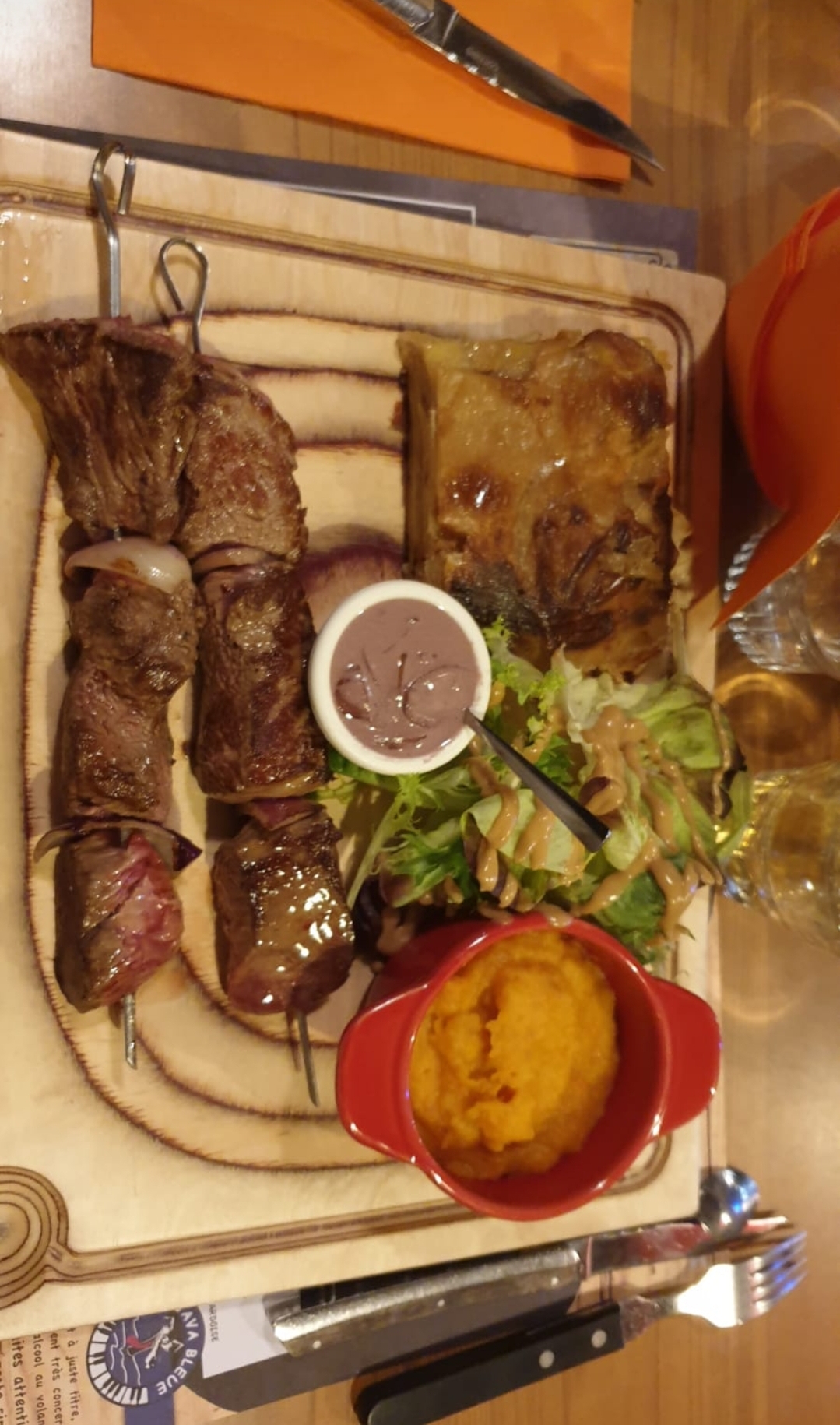 Posté le 31/03/2024 à 21:40"Endroit parfait pour passer une bonne soirée entre amis. L'ambiance est très sympa, terrasse aussi, la cuisine très bien, brochettes de magret une tuerie 😋 Je recommande !"